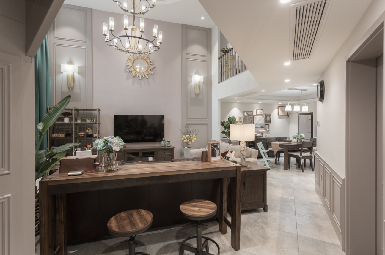 【实景照片】抢座率最高的吧台区域,大家庭的幸福的时光,很多时候都在这个开放包容的空间中度过。三代同堂,包容度是最难拿捏的一点。从空间规划设计的时候就需要考虑到,将引导一直什么家庭氛围。