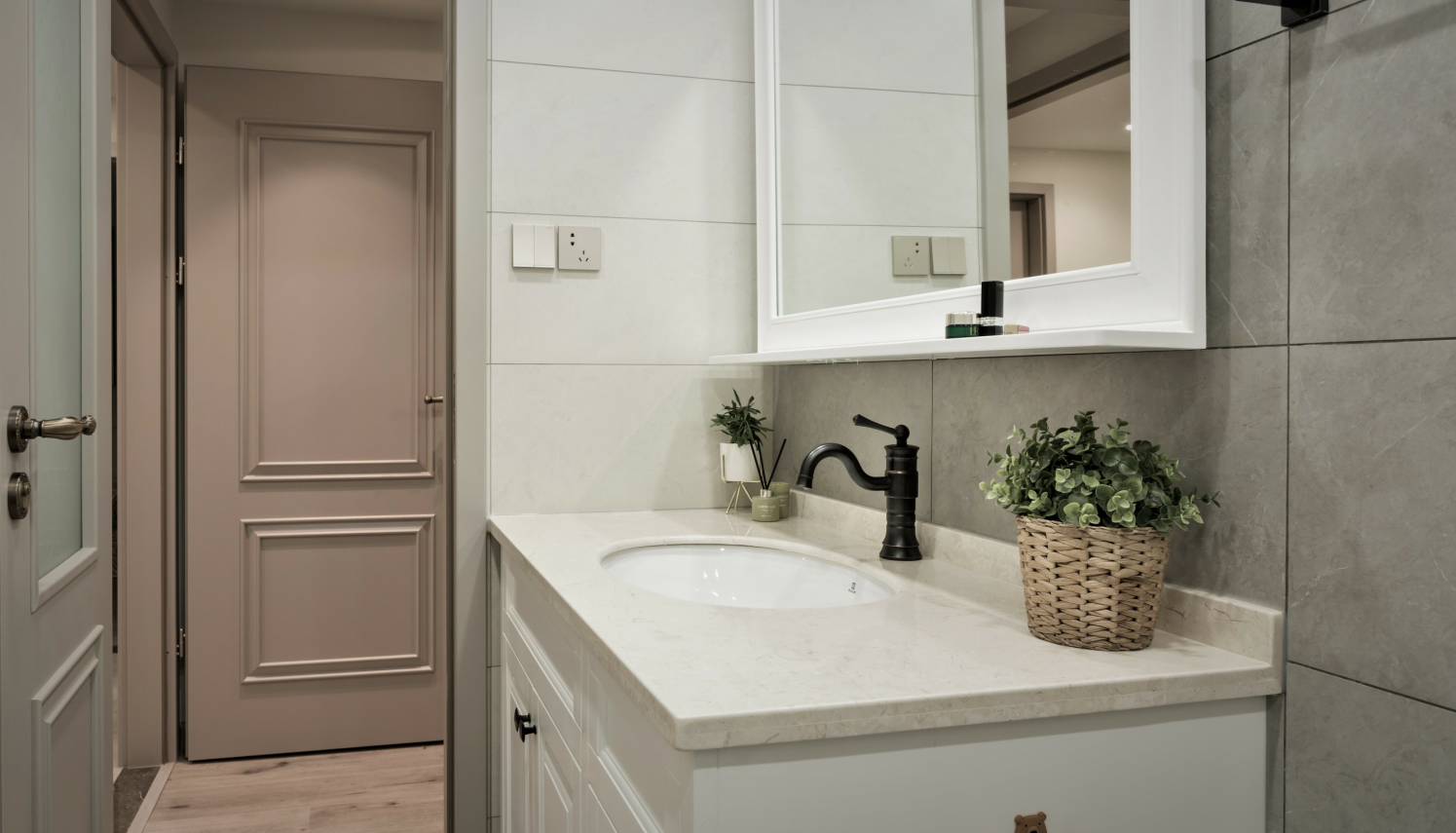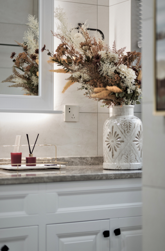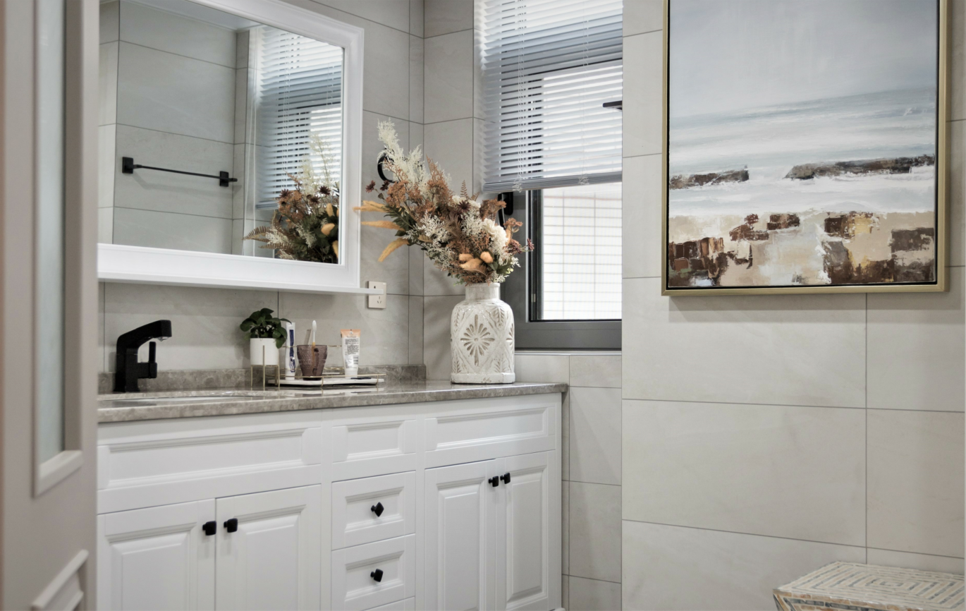 【实景拍摄】卫生间实景照片。营造轻松,自然沙滩海浪的冲刷感。让身心都可以有个洗礼。