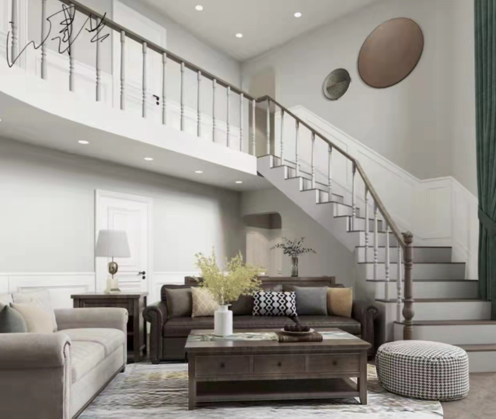 【实景】客厅楼梯的设计,从形式上也是沙发背景的一部分装饰构成元素,作为背景他的线条感,它的色彩及质感的搭配都是给整个客厅稳重有层次有品质感氛围打下了坚实基础。