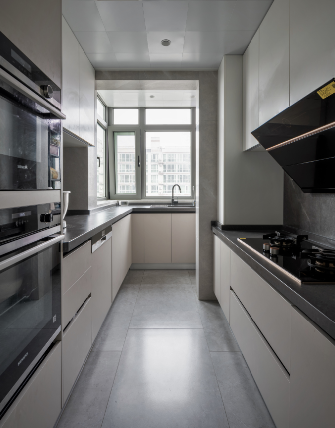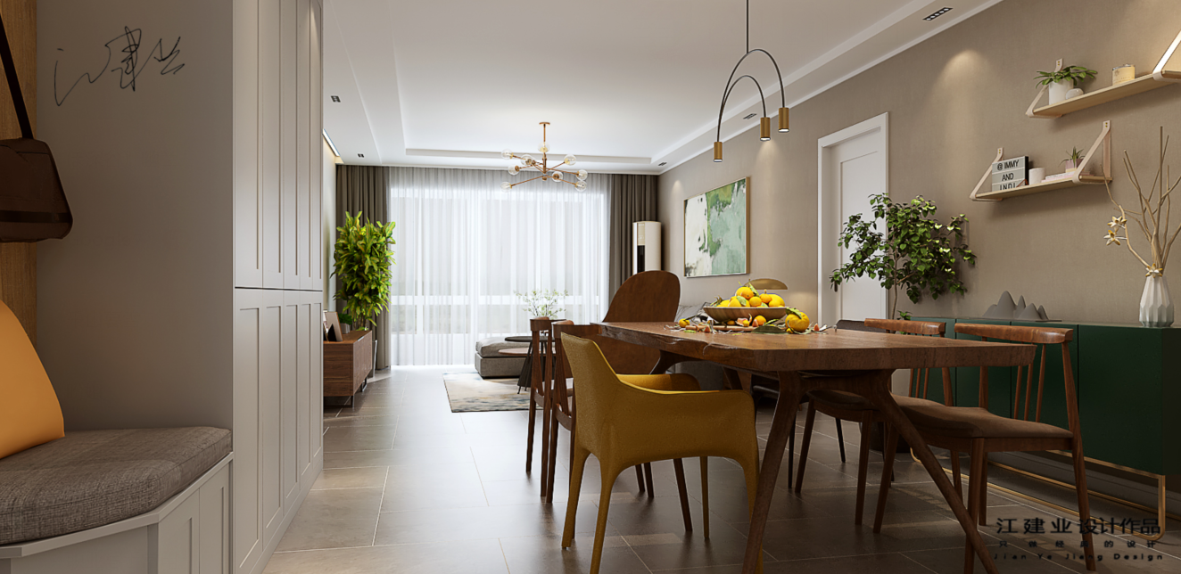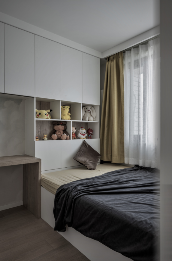 本案位于海淀区时雨园,是业主买的一套四居室的二手房,当时买这套房子也是看好了这里的地理位置,一方面方便接送孩子上学,孩子可以就读一个相对比较好的学校,另一方面,周围的配套设施齐全,老人出门散步,购物,就医等都非常方便。 虽然原房东把房子维护的很不错,但业主一直有个装修自己相对理想家的梦想,最终还是决定重新装修一下。家里有老人,孩子,业主在装修方面的总体要求就是环保,同时还要在考虑实用性的基础上做到美观大气。 为此,在本案设计中,充分考虑到每一个人的生活需求,既要选择环保材质,又要在设计手法上尝试“让一让”“退一步”来获得海阔天空。一方面要做好动静区分,保证公共区域的互动性与亲密性的同时保障独立空间的隐私性;另一方面,要把握所有材质的颜色与质感,以及光线与层次感,使得整个空间氛围和谐、舒适。在功能上,各类定制柜设计也极大的满足了业主收纳的需求。 改造前空间 户型图 原始户型图,一个以承重墙为主的结构。 在空间上,客厅保留了原有的通透感、空间感。在不影响空间感的前提下,客厅,门厅,餐厅增加功能储物空间,将一侧墙面做了整体简约大气的收纳,尽最大程度提高空间利用率,功能也齐全,特别适合三代同住。空间调整最大的区域是厨房和书房空间的关系处理,冰箱体量大,借用了书房部分空间,厨房外侧的高柜空间也分担不少的收纳,切角柜的处理恰到好处,让动线更顺畅。 客厅 【客厅设计效果图】 【效果图】客厅整体空间 【实景拍摄】客厅整体搭配 高级灰的配色,营造出一种高冷而奢华的独特设计感,让整个客厅空间显得更加高级、别致;宽敞的落地窗保证了空间采光。物业管理严格,不然必把窗户做成大落地。 餐厅 【实景拍摄】餐厅部分 胡桃原木餐桌椅与高级灰墙面在色调上的协调搭配,让空间层次显得更加宽敞通透,长方形餐桌可以满足多人用餐。比岩板餐桌更柔和,不会有冷冰冰的距离感。 【实景拍摄】餐边展示柜 餐边高柜可用于收纳衣物,增加收纳功能;在柜子中间留出一侧开放式隔架,可以用来作为展示架使用。让整面柜子更有层次。 局部 胡桃木的餐边柜采用了与餐桌椅一致的配色与材质,生机盎然的绿植搭配为餐厅空间带来了清新的气息和放松的氛围 细节之处的用心往往能够彰显出主人的品味。精致的玻璃杯、花瓶的搭配,特别能彰显主人的细节品味。 厨房 【设计效果图】厨房 【实景拍摄】厨房 厨房暖灰橱柜搭配中灰瓷砖,层次干净明亮,不暗黑。强大的储物充分解决了餐具、厨具的收纳需求 【实景拍摄】厨房整体空间 厨房空间看上去很宽敞,灰色调墙砖与厨具的搭配很高级,质感满满。 书房 【设计效果图】书房兼客卧 【实景拍摄】书房兼客卧 在客卧定制了整面的柜子,可直接成为客卧背景,又能用于书籍收纳。地台超强的收纳设计,实现了卧室与书房的双重功能。 【实景拍摄】强大收纳地台 儿童房 【设计效果图】儿童成长空间 【实景拍摄】 儿童房的成长形空间,墙上的储物架、阳台处的储物柜都可以用于收纳孩子的玩具、书本等,显得空间更加整洁。保证理想效果。 局部特写 小巧精致的床头柜与床的颜色相呼应,地球仪台灯以及挂画设计可谓是儿童房中的一个点睛之笔。 客卫 【设计效果图】客卫 【实景拍摄】客卫空间 客卫空间必备的干湿分区,门后洗衣机干衣机。高柜换洗衣物的收纳。 长辈房 【实景拍摄】长辈卧室 长辈房的设计淡雅、简约,没有太过复杂的色彩,低饱和度的素色床品、挂画设计,营造出一个舒适的睡眠氛围。 局部特写 主卫 【设计效果图】主卫空间 【实景拍摄】主卫 暖灰白色色调的卫生间更显宽敞明亮,给人舒缓柔和之感。壁盒的设计很实用,空间允许的情况下是标配了。 浴缸是一个提升幸福感、令人身心放松的重要卫浴物件,嵌入式浴缸与墙面完美融为一体,壁龛的设计方便置放洗浴物件以外更是节省了很大的空间,和谐美观,又方便了日常打扫。 主卧 |