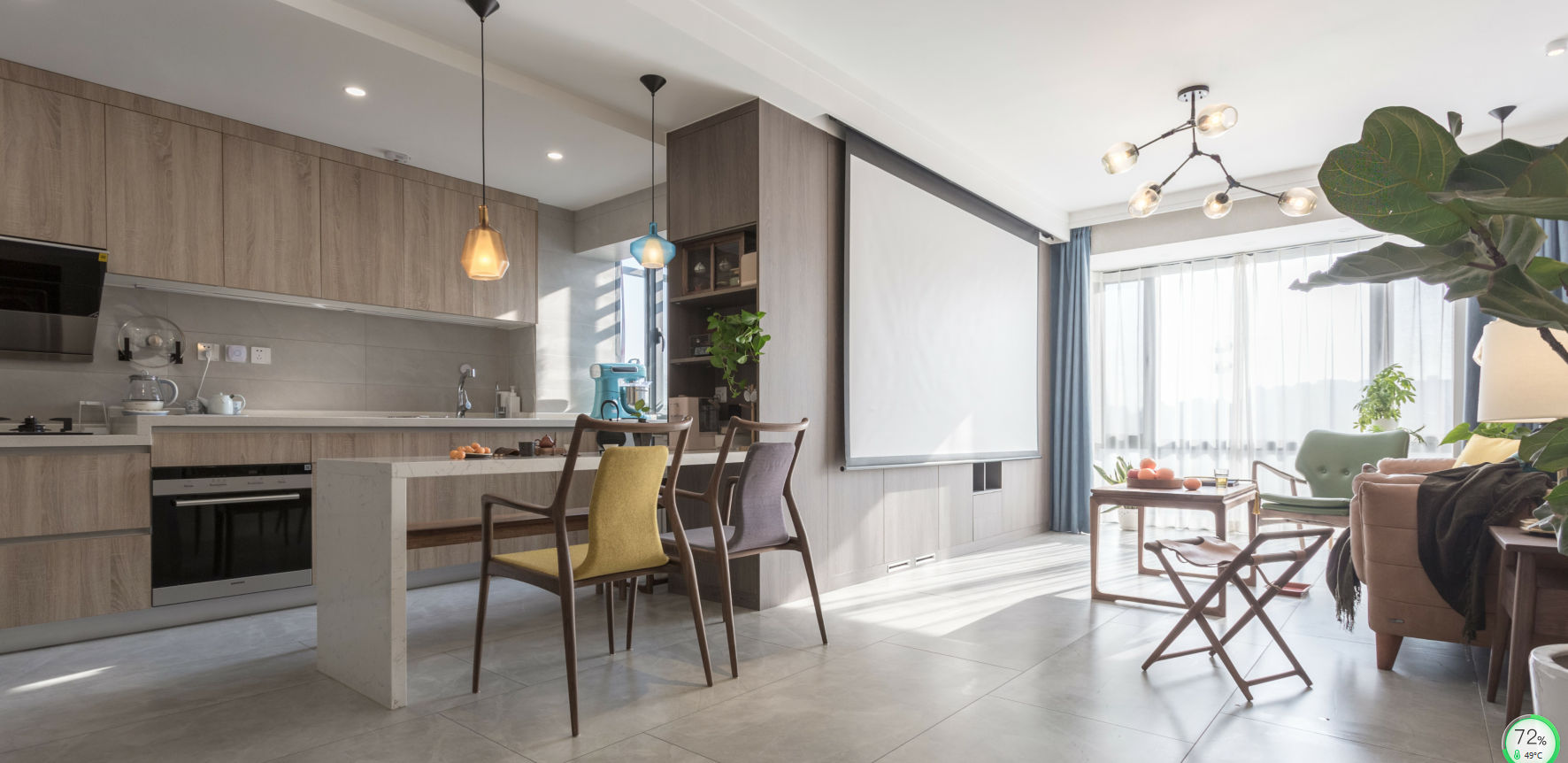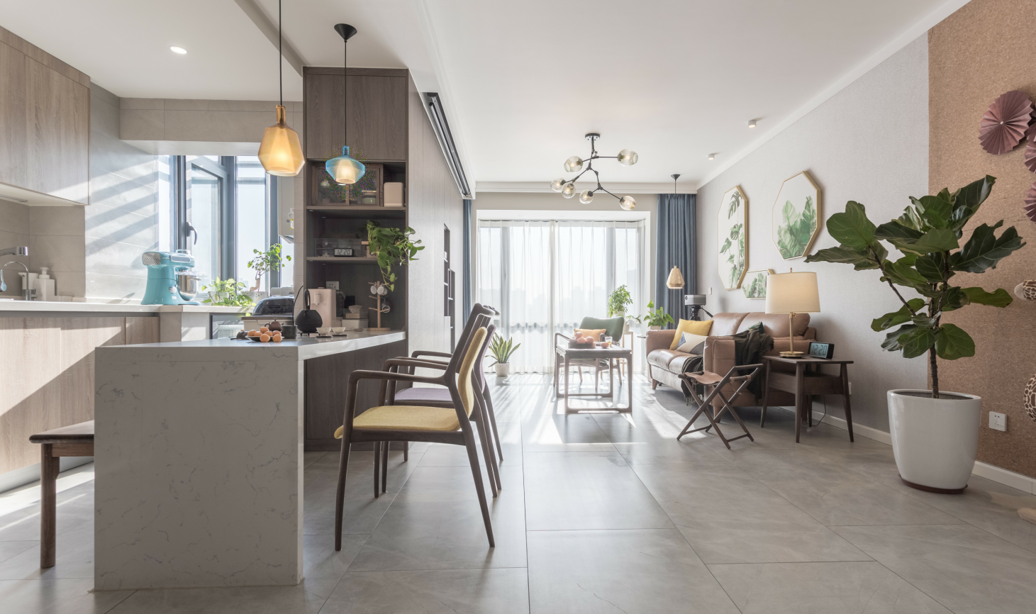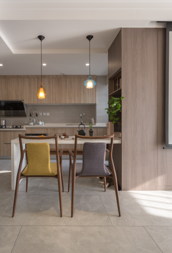 为业主做的第二套房子设计,作为“心灵”设计师,很多都不必多说,直接测量、规划、设计、施工、软装、作品落地一气呵成,设计装修的乐趣就在与这种状态。快乐装修、快乐生活是我一直追求的东西。基于的都是多年的避坑经验,也是上百套案例堆积出来的高度。 户型图 客厅 空间上,将原封闭的厨房打开,用整体的设计手法,将客厅餐厅整体规划搭配设计,是不是又要问油烟问题。这个问题已经解释过无数遍,不过你来问我依然不厌其烦哦。搭配上以黑白灰+木+橘、绿。的经典搭配组合。元素上还是融合自然主义元素。对于空间心里学感受,这种配置是更让人舒适自然,宜久居。 空间上,厨房的开放设计,让空间共享。整体电视柜和餐吧结合的整体设计,恰到好处。柜子+吧台=电视墙,要学会看整体。 站在吧台旁,看着客厅美如画。 竖向来一张,怎么都美,呲牙... 本喵也特别喜欢上镜,45度最棒。 拍局部不体现硬实力,但大家都发,咱也的发。 通透大气的餐吧,局部亮色点缀才最经久耐看。 |