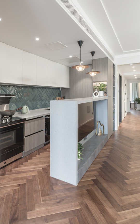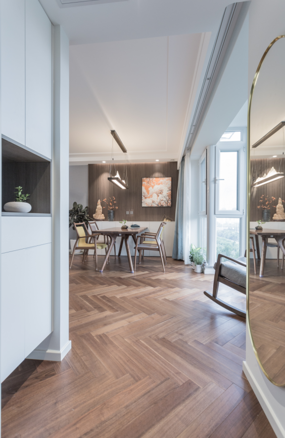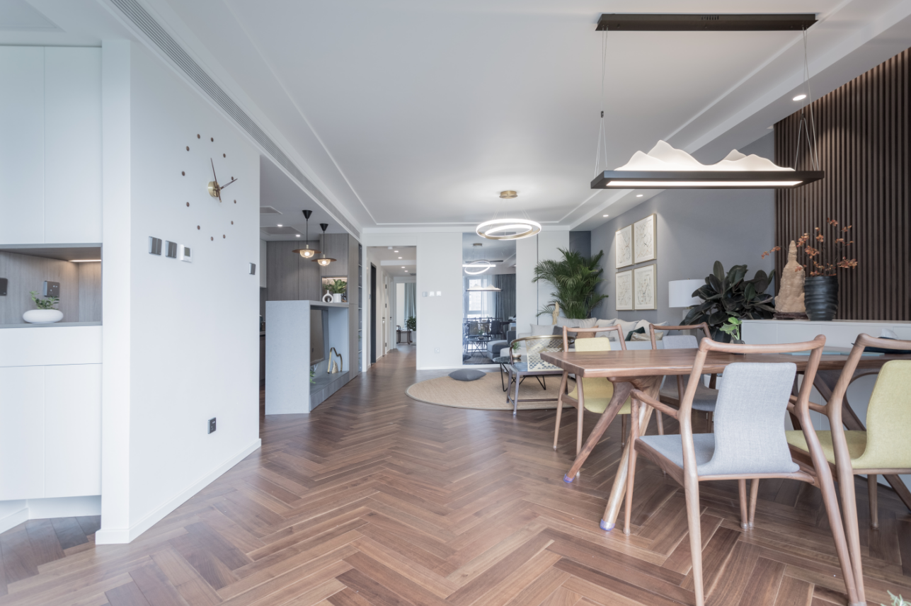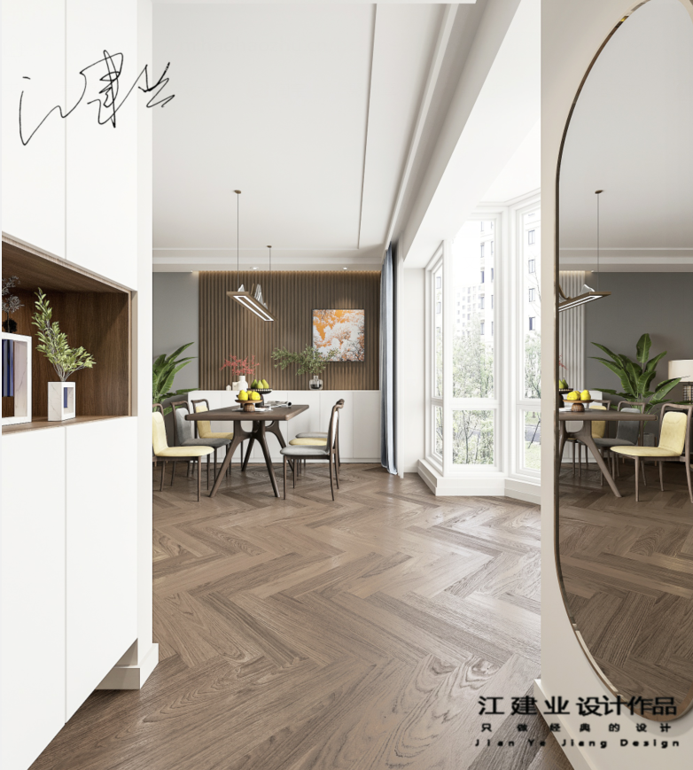 在繁杂的社交生活之余,我们都在追寻温暖,追求舒适,希望回归生活最纯粹的样子。而家就是这样一个地方,一个简约又不失格调的家,不一定很大,却总能满足你对美好的所有期待。设计师用倒叙思维+业主高度信任配合=完美落地效果。 本案原户型的局部空间比较紧凑,空间之间的流通性、联动性不足,业主希望重新调整布局,打造一个相对舒适、宽敞、大气的居家格局。简约不失品质。在与业主沟通、交流后,最终确定了本案的整体风格和设计方案。整个空间以空间最大化原则设计,没有过多繁复的修饰,在自然主义元素装点下力求简,整个空间在以胡桃木色+米灰白色为主的色调基础上,加入清新自然的装饰,凸显出家居最自然的美感,让家里的每个角落都是一处独特的风景,并且营造出纯粹、舒适、自然的居家氛围,与业主的诉求完美契合。 生活品质产品方面,、集成灶、洗碗机、处理器、倍士全套水处理设备、地暖、中央空调、新风等全都覆盖。 主材类标准,三层实木复合地板(4毫米厚表板),定制柜类 爱格板。凯撒石英石。墙面芬琳漆,局部壁布背景。调色木门及调色实木踢脚线。瓷砖部分以600X1200大砖薄贴。局部手工砖点缀。家具局部实体,主体网购。灯具网购。 户型图 【原始户型图】 【玄关效果图】 【玄关实景拍摄】 本户型不适合做固定玄关,损失空间感,所以将形式上的玄关设置在了入户的正对面墙,也做为餐厅的一部分装饰。得到了一个开阔的入户空间。充分优化储物空间设计,使其兼具美观与实用功能。嵌入式鞋柜的底部可存放鞋子,上面的开放空间可摆放小盆栽或钥匙包物件。转到阳台一侧的高柜是个超大的换衣柜。进门功能完全满足,还有个灵动的穿衣镜。出门前整理整理。 客厅 【效果图】 【实景拍摄】 客厅采用整体开放式设计,与餐厅相连接,提升空间视觉的同时,增加空间互动性,彰显大气之风范。 【实景拍摄】 客厅整个空间以原木色、高级灰和白色为底色,原木色的桌椅、地板、墨绿色石材茶几、剑麻地毯,给人清新、舒适之感。略带混搭气质的禅意现代感。 【效果图】 【实景拍摄】 墙面装饰比较简约但不失艺术感,同时利用绿植作为点缀,让低调简约的空间释放出清新的气息。看电视的时间也少,有不想完全取消这个物件,所以做了吧台嵌入电视的主体设计 【实景拍摄】绿植搭配让沙发一角的空间更有自然气息和生活气息,营造出慵懒的氛围。 厨房 【实景拍摄】 厨房及吧台电视墙的结合堪称完美,极具美感又不失实用性,节省了单独打造电视墙的空间。有保证了开放厨房的设计感。 餐厅 【实景拍摄】 胡桃木质桌椅和格栅背景墙带着几分优雅、几分自然气息,雪山造型的吊顶灯不仅为餐厅空间补充了照明,还能打造出优雅、静谧的就餐氛围。 阳台 【实景拍摄】 阳台纳入客厅,无论是采光还是视野都得以提升,整个空间的通透感极好。宽敞的落地窗可以将室外的美景(绿植景观带)一览无余。弧形大落地窗确实费了劲了,但是值! 次卧、客卧 【实景拍摄】 书房兼次卧,看似简单的搭配,却有意想不到的效果。白色提亮空间、拓展空间,木色家具散发自然气息,二者可谓是“天作之合”。 磁悬浮灯 【效果图】 【实景拍摄】 抽象艺术画、小摆件这些看似不起眼的小细节设计,让室内瞬间充满了艺术气息和灵动韵味,同时还能彰显主人生活品味。 局部装饰 【效果图】 【实景拍摄】 次卧和书房空间打通,用折叠门设计来做“间隔”,打开折叠门就是一整间大书房,衣帽间空间还能“变身”为壁床,家里来客人也能住得下。几盆绿植的点缀,给人平和、舒适之感,非常符合卧室静谧、惬意的调性 主卧 【实景拍摄】 主卧的设计以高级灰为底色,胡桃木,灰墨绿窗帘、格栅板,搭配圆形的自然气息装饰画,和谐自然又不失艺术气息,和品质感。 【实景拍摄】 【效果图】 【实景拍摄】 休闲沙发上方的柔和吊灯设计,简洁而美观,也为卧室提供了更加灵活的照明需求。 【实景拍摄】 大卧室和对开门是绝配,卫生间门与衣柜门做了同材质整体设计,外观更整体简洁。空间更显大气。 局部 主卫 【效果图】 【实景拍摄】 卫生间简洁实用,经典的白色为主黑色线条为辅的设计,带来一份不寻常的高级与精致感。整个卫浴空间做了干湿分离,白色的浴缸与整个空间协调统一,它不仅仅是洗澡的工具,更是业主提升生活幸福感、放松身心的重要空间 洗衣房 【实景拍摄】 在与开发商和物业沟通后,将过道空间充分利用,打造了一个洗衣房,洗衣机上方空间可用于储物,增加了空间的实用性,而且不显拥挤,很有层次感。 |