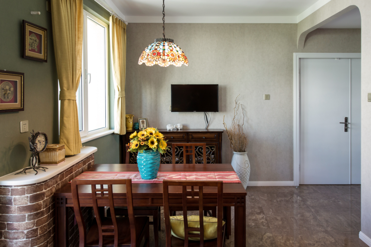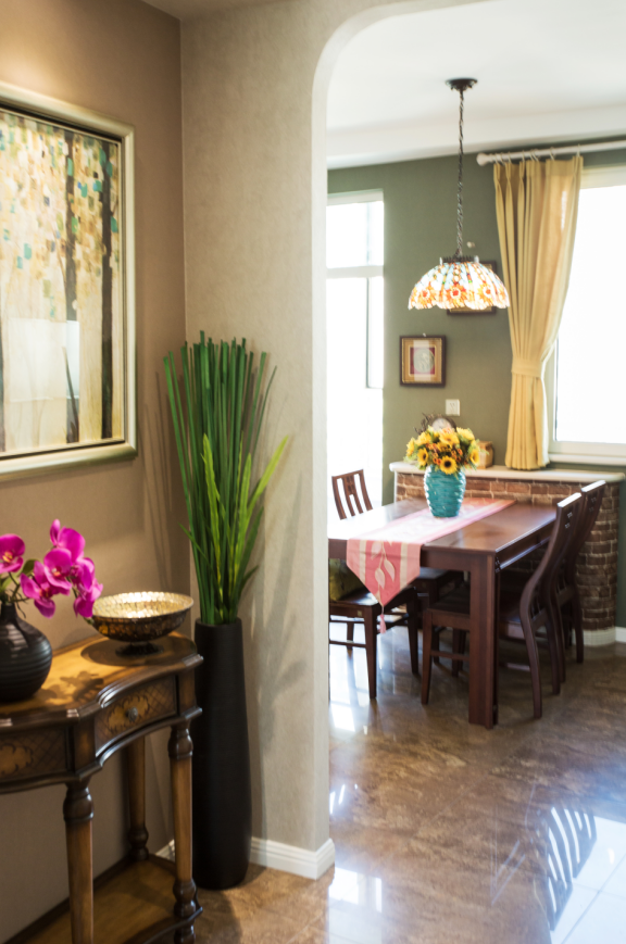 诗意的生活 是每个人都向往、憧憬的 走心的设计 温柔的线条 搭配精致的软装 让家的舒适与诗意在不经意间融合 “蜗居”的生活便如此惬意 本案业主希望主题风格设计能够表现出爽朗、清新、同时格调优雅的气质,设计师在与其充分交流后,构思出了这个自然主义之“水木清华”的主题,力求通过简单的色彩、简约的家具等元素打造一个纯粹、简约的家居,让每一处都是完美的设计,让全屋看起来优雅而不浮华,沉静而又不过于沉重。 无论是客厅、餐厅还是卧室,都要追求一个点到为止,多一份则满,少一分则淡。在本案设计中,可以看到,厨房、客厅、卧室等功能区看起来都很简约,但却十分时尚雅致、韵味十足,没有复杂繁琐的装饰设计,只有以简约的元素、柔和的几何图形、极具艺术美感的饰品勾勒出的时尚、轻松、充满诗意的家居氛围。比如,家居配饰中的小提琴灯、印象派挂画、精致半透明的地球仪、向日葵盆花等,让房间诗意丛生,折射出居住者安心、恬淡的心境。 户型图 玄关 茶褐色的门厅柜,瞬间提升了玄关的高级感,柜内、台面的收纳作用展现到极致,美观、实用两不误 门厅柜上的紫罗兰,有着兴旺发达、前程似锦的寓意,搭配质朴典雅的花瓶设计,营造出气质高贵、雅致、浪漫的空间氛围,让来访者进门就有愉悦的好心情。 客厅 沉稳舒适的皮质单人沙发与茶几的颜色十分百搭,简洁的线条、柔软的皮面,处处体现着主人的贴心。而鹅黄色中国风抱枕显然为沙发的厚重感、高冷范儿增添了一丝亮色。 与用户需求相呼应,客厅更多强调了舒适和美观。色彩沉稳的欧式布艺沙发与颜色各异的靠垫的搭配十分和谐;而自然、优美的褶皱展现出布艺纺织的魅力。背后经过精心设计的绿色沙发墙,和同样为绿的的窗帘相呼应,幽静感十足。 厨房 厨房的设计很别致,复古蒂凡尼彩色玻璃灯的太阳花图案与餐桌上的太阳花花瓶相呼应,展现出主人优雅、不凡的品味,在低调上与厨房的橱柜也实现了完美的和谐、统一。 餐厅 餐厅桌椅靠近窗户摆放,当自然光线透过玻璃窗照射进来,会让整个空间都更加明亮。向日葵花的装饰给温暖的餐厅更增添一份雅致,让人不禁开始脑补晚餐时,在此餐厅中主人会度过怎样一个温情的晚饭时光。 卧室的装饰元素虽然有点多,但因搭配合理到位却不显得拥挤。无论是地板、窗帘,还是壁纸都实现了色调上的统一,银色橱柜、复古黄色大摆件可烘托出主人的品味,与床布料、颜色相统一的床头柜简约典雅。 清新雅致的床品,似乎让睡觉、休憩都变成一件惬意的事情,与本案主题更是相得益彰。 书房风格像是客厅中安静、庄重风格的过度,深色书柜、书桌和会激发人灵感的浅绿色墙壁相映衬,让人长时间在此汲取知识也不会感觉枯燥。 质感十足的半透明地球仪、中国风鼓凳和抱枕,无不呈现出典雅的生活气息,坐在这样的空间看书、学习,倍感舒适、放松。 |