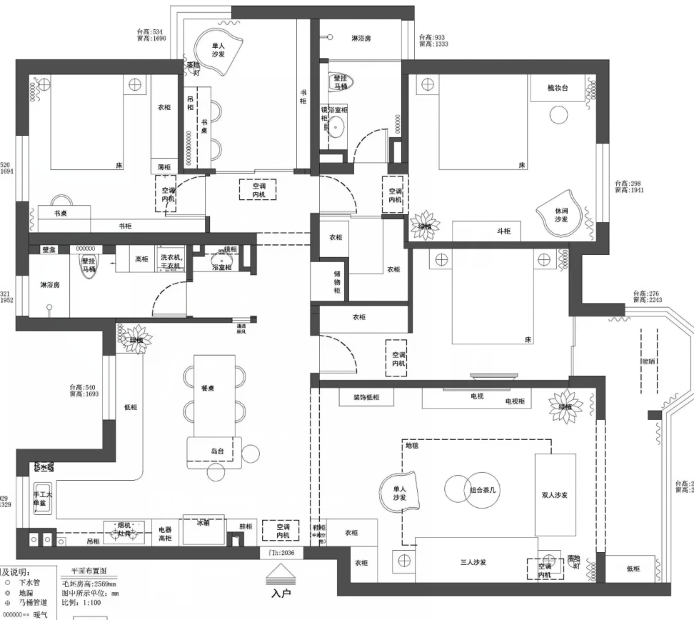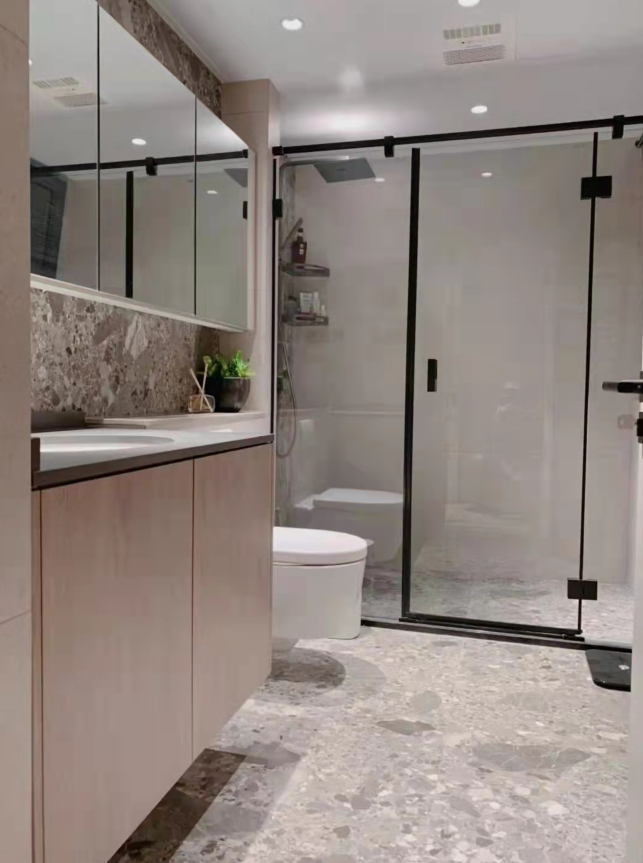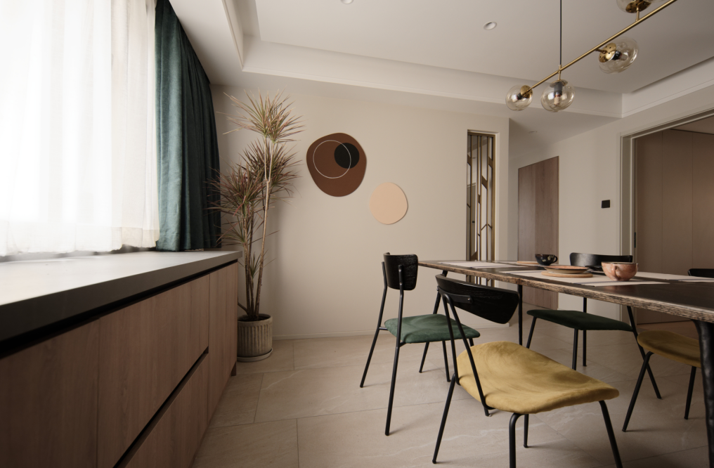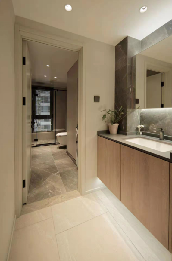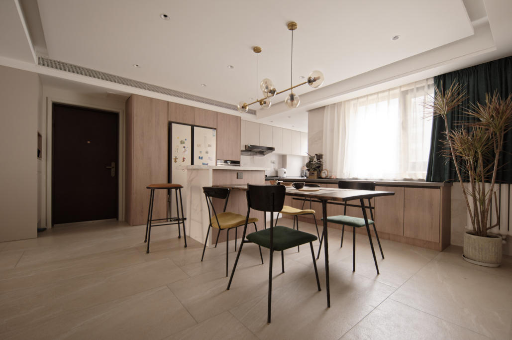 本案为入住后半年拍摄。更真实的还原,家居实用主义装饰艺术。常住3人,父母和儿子,长辈偶尔小住。中大户型在满足功能的前提下,就要体现大的一面。原本封闭的厨房,打开。相对封闭的客卫洗手区,打开。原本封闭的书房空间,打开,做联动通透推拉增加采光通透的前提下保留一定私密性。不放弃一点能增大空间感受和引入采光的点。材质上环保级别第一,质感哑光品质。色彩上整体底饱和度高级暖灰调,点缀单品特色家具装饰。营造舒适和谐有趣味品质的居住氛围。 户型图 本案原始结构,客餐厅间过道狭窄,厨房空间缺少大的收纳面,餐区在放完餐桌椅子的基础上过道已经很窄,动线不便。客卧外过道柜利用不合理,有浪费空间,主卧缺少收纳空间,主卧书房次卧三个空间之间的过道略显狭长,没有利用好这么长的动线来规划功能,或释放空间感。卫生间部分也是功能混乱,使用时互相干扰。 设计师在入户设计上,任然选择保持空间通透性,没有在正面做屏风或所谓意义上的玄关。而是随墙安排各收纳功能,让中心区域保持最大限度的开阔感,这点在小户型里其实也很管用。客卫干区没有完全拆除隔墙,而是做了局部镂空,保证开阔性的基础上,保留了私密性。洗手区正常使用中相对乱一些,这样的做法保证了主体空间效果的完整性。将书房空间对过道的墙体拆除,让空间感加大。为保证主卧的大空间,主卧衣帽间部分借用了客卧的部分空间。这样的做法充分利用了户型中心岛区域,把这个区域给到各个方向来使用。这样空间利用率非常高。让床的一侧不再是衣柜的老套规划。卫生间部分能分离就分离能独立就独立。 玄关设计前 原本入户空间层次混乱,厨房的独立让客餐厅各为独立,空间感小,互动性差。 玄关效果图 玄关实景 打开厨房,收纳功能随墙。收获大开敞空间。将玄关的意义延长到了书房背景装饰。入户空间的选择在满足收纳功能的前提下,要么独立要么开敞。这里我们选择空间为主。 客厅设计前 客厅效果图 客厅实景 餐厅设计前 餐厅效果图 打开的餐厨区肉眼可见的变化。岛台加上 大餐桌的配置是之前空间不敢想象的。收纳也大幅提升。站在厨房望向客厅。大纵深完美展现户型气质。没有将卫生间洗手区的墙体完全打通,而是掏洞,设计通透隔断。保留私密整洁性的同时,加大空间开阔尺度。 次卫设计前 次卫效果图 次卫实景 客卫保留洗手盆外置,使用方便,里外互不干扰,洗衣机干衣机能放进独立空间就放进去,干衣机的噪音和时长,尽量不影响公共区域生活体验感。瓷砖为大砖上墙,薄贴。简洁大气。镜柜保证浴室柜区域的整洁度。入住前入住后基本不会有翻车的现象。洗衣机旁的生活高柜,各种装备,脏衣篮全部收入其中。也是为保证效果而生。安全性上一直倾向哑光砖。主体素色,局部纹理或色彩点缀。窗户使用了内置百叶,虽然有比较低的故障风险,为了居住体现还是选择了。 |