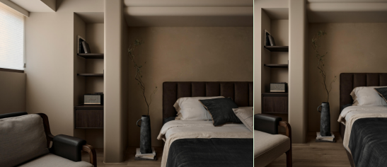 2. 说说是什么给了你灵感,打造出现在这个作品的? 本案以现代简约风格展开设计,将“精致、时尚、中性、稳重、温暖、低奢”等关键词融入每一个细节,塑造出一个独特的空间格调。不仅如此,卧室的设计更强调成熟温和的氛围,为居住者创造舒适的私密空间。