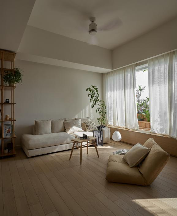 世间最暖人心的莫过于自然造物,自然赋予生活以神奇的魅力,原木色家居的古朴和自然天生就能给人带来温暖柔和的感觉。本案业主是一位独居女性,在选房初期陪同业主看了很多户型,最终选择于此,此户型各空间相对完整,在装修方面,只考虑业主的喜好,作为业主小姐姐的第一套房致力于打造一个理性与感性并存的温暖居所。整屋以简洁的硬装基础为基调,流畅的线条,温暖,慵懒惬意的质感,原木色,白色加入,复古的装饰元素和现代风格的和谐融合,在满足功能的基础上做到最大程度的简单且有品位,打造独属于屋主所追求的“温度”“风度”的理想之家。 平面布置图 1. 原始户型图较为完善,我们并没有进行大的更改,总是在少数地方进行优化处理,让空间利用更加高效合理。 2. 客餐厨一体的布局让会客区与就餐区处于同一空间,提高空间利用率的同时也提升房屋整体感,符合独居美学,优化生活动线。 3. 拆除原始衣帽间增加公区面积,打造开阔通透视野。阳台作为绿植区域优化视野增加氛围实现效益最大化。 4. 主卧作套房模式,配备独立卫生间,加入钢琴规划出临时休闲区域,一切设计贴合屋主需求,衣柜也极大程度的挖掘出充足收纳空间。 客厅 会客厅是家庭最重要的空间,不但是承载一家人的欢乐时光,更是对外社交的名片,一方敞阔的会客厅,是主人格局的象征,也更更好彰显居者气度。来到屋内,温润的色调和质感让人沉浸在一个平静,轻松氛围的世界中,素色木色,奶白墙面,灯光设计,米色布艺沙发与纱帘相互映衬,自然光的柔和光线为空间渡上清爽恬静。 #客厅#沙发#墙面#纱帘 打破常规去电视化设计,木地板通铺,空间全打开,适度作收纳,坚持“藏二露八”原则,极简柜+展示架拼接组合,破除满墙柜体刻板印象,灵动且不失功能性。地台设计连接阳台,视觉上开阔无阻,自由轻松感洋溢休闲空间,绿植点缀塑造,纱帘精准调控室内光感。去除繁杂,无踢脚线+风扇吊灯,适度留白延申视觉,放大空间感。 #客厅#储物柜#去电视化#地台#阳台 沙发靠墙摆放,多人+单人沙发组合形成开放式休息区符合不同形式,印花抱枕,不同色调设计深化兼具美观和实用性。搭配原木茶几轻盈小巧随意摆放,桌角圆钝避免尖角磕碰,绿植加入,光随影动,大量留白迸发极致自洽与放松。小景一张,书籍+落地灯往往为此而理解空间优化价值。 #客厅#茶几#沙发#书籍#落地灯 餐厅 美食是人们心灵的寄托,带来了无尽的欢愉与满足。浅色系原木,柔和窗纱,编藤主灯......保留了大自然木材原始的样子一方简洁大气餐桌搭配同套餐椅赋予餐厅一览无余的通透视觉结合编藤坐垫点缀,极简而有层次感的氛围跃然而出。 #餐厅#餐桌#餐椅#吊灯 客餐厨一体式设计,以舒展的曲线建立动态的平衡,模糊室内与室外界限,让开敞与封闭并存。轻盈便携的方形餐桌垂直厨房摆放,规划出舒适的就餐区域,原木包裹与白吊顶的清新相遇,以藏为美的设计手法,满足女屋主的审美需求。 #餐厅#客餐厨一体#原木#线条 靠窗打造飘窗台+置物架每一个装饰品都是屋主留在家中的印象,无不是一个饭后消食好去处,伴随百叶帘,在灯光的配合下,用有限的物质引导无限的精神展开想象。当然,原木的延申设计很好的串联空间,绿植的点缀,居于同一空间下的餐桌与休憩区在原木元素+白色下和谐共生。 #餐厅#飘窗台#置物架#百叶帘 原木方形餐桌承载一家人的温馨时刻,极简原木+满墙柜,不饰他物,用木饰面点缀,储物量超标,搭配禅意吊灯,温和内敛与慵懒舒展碰撞,衬托空间低调却气质分明的原木质感,摆放上书籍绿植,更为清晰地刻画品质居家氛围。向里望去,卧室绿植与餐桌形成视角呼应,空间元素丰富而不杂乱。 #餐厅#吊灯#储物柜#原木 厨房 厨房相比原户型,并没有太多更改,一字型布局,洗菜区,备菜区,烹饪区动线流畅,空间划分明确,既满足使用空间需求又减少物品拿取往复时间。原木色打底再搭配棕色,沉稳而高级!天然木材自带原木芳香,修饰空间纯粹。油烟机隐藏于吊柜内部收纳有藏有露,视觉高度统 #厨房#橱柜#吊柜#一字型 餐厨一体化+吊柜地柜一体式设计,提升空间美观度,恰到好处的深浅配色,营造舒心通透的氛围空间,厨房区域依靠筒灯+自然光照明,清新自然。大理石台面精心安排没有多余冗杂,顶部吊柜无把手设计满足收纳需求,长条格砖作为背景墙装饰干净又复古。 #厨房#橱柜#地柜#墙面#大理石 主卧 一间梦寐以求的卧室,带来幸福美好的日日夜夜,对于很多人来说,拥有一个轻松惬意的卧室是生活中必不可少的一部分,美观与舒适兼得。主卧充满艺术感,丝毫没有受到不规则的影响摒弃多余装饰,以白+原木营造纯净空间,简洁的线条设计与不同材质交汇融合在宁静与别致之间依靠绿植取得平静。 #主卧#线条#原木#墙面 简洁舒适的原木色透露着温暖氛围感,奶白色纱帘搭配杏色窗帘,钢琴.....刻画出空间层次美。卧室全实木地板,窗明几净与好一侧绿植相得益彰。沿着窗台摆放钢琴,无主灯+筒灯,扑进柔软的双人床,感受窗台的微风佛来~打造自然通透睡眠空间,构筑慵懒惬意的空间印象。 #主卧#钢琴#窗台#窗帘#地板#双人床 床尾贴墙放置整面衣柜,完美补充了室内收纳空间,满足女主人对衣物收纳带来干净整洁。双人床居于中央摆放,浅灰床上用品舒适且干净,随意的外观中和了平直线条的凌厉与硬朗之感,大面积自然光撒