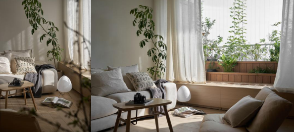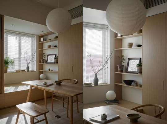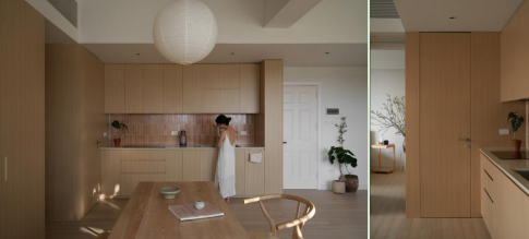 3. 你对这套作品最满意的地方在哪里,为什么? 我们以开放式为构架重新设计空间,在解放出来的空间中重新构建了一条“洄游动线”,通过这条动线来串联起整个空间的功能格局。我们将整个家定调为松弛,自然又略带拙朴的居家氛围,在空间里我们置入明亮的百叶帘纱帘,让空间显得柔软;温润的木皮,让人有归属感;生机勃勃的绿植,让人感受生活的真实和回归,在空间中就可以与自然“肌肤相亲”。