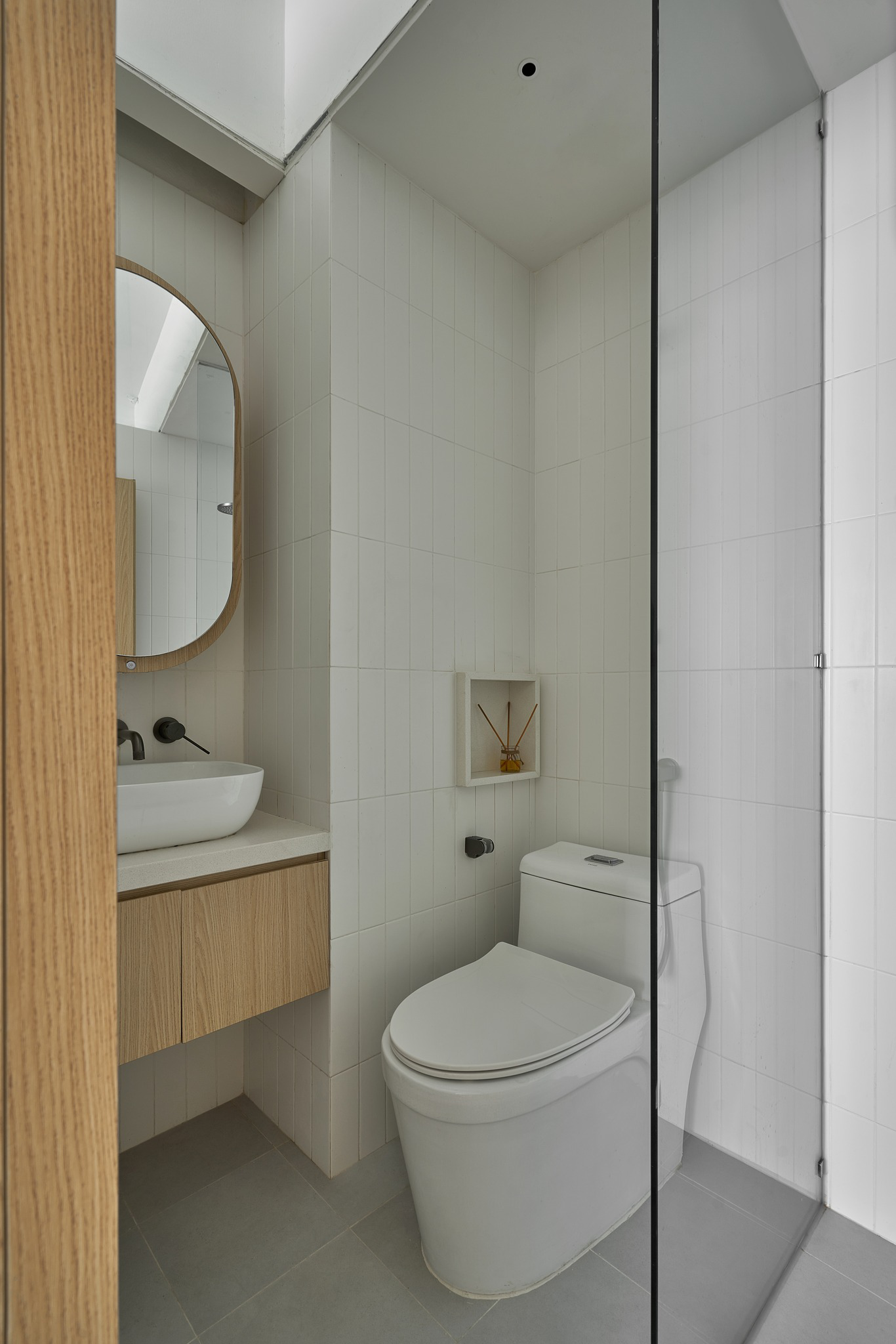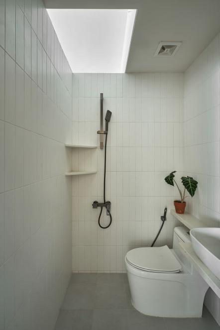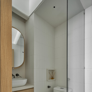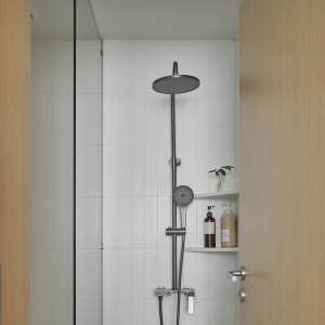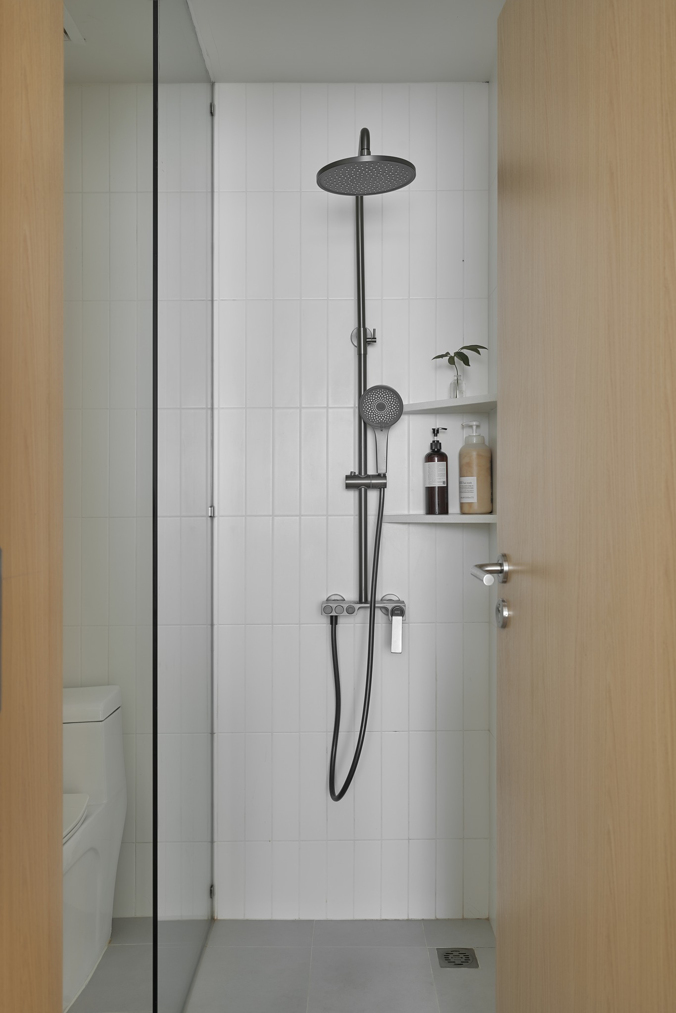 卫生间布局井然有序依此划分各功能区,转角设计互不干扰提高生活便利性,大理石墙砖+地砖通铺干净易清洁,配套镜柜+浴室柜带来隐藏收纳空间,智能马桶于一侧井然有序,搭配壁龛式设计布局合理分工协作,小设计尽显空间的和谐与巧思。 #卫生间#壁龛#智能马桶#镜柜#浴室柜 考虑到日常问题卫生间以玻璃门作为隔断,半隔不隔,提升安全性的同时使得更加统一平整。墙面吊顶统一采用白色,简单清爽,淋浴区域大小花洒组合套装+转角置物架设计,充分诠释了颜值与实用兼具,空间虽小,功能划分却很明确。 #卫生间#花洒#置物架#墙面#玻璃门 卫生间2 卫生间未作干湿分离,地面铺设灰色哑光地砖,与墙面通铺奶油色调整体协调,以极简奶油呈现。如厕淋浴同一空间打造,以黑色花洒作为点缀,跟其余空间相呼应,绿植的加入,小清新的色彩打造年轻且时尚的品质空间。悬浮洗漱台减少卫生死角,清晰明了的线条勾勒出极致的简约。 #卫生间#洗漱台#花洒#墙面#地面 问答