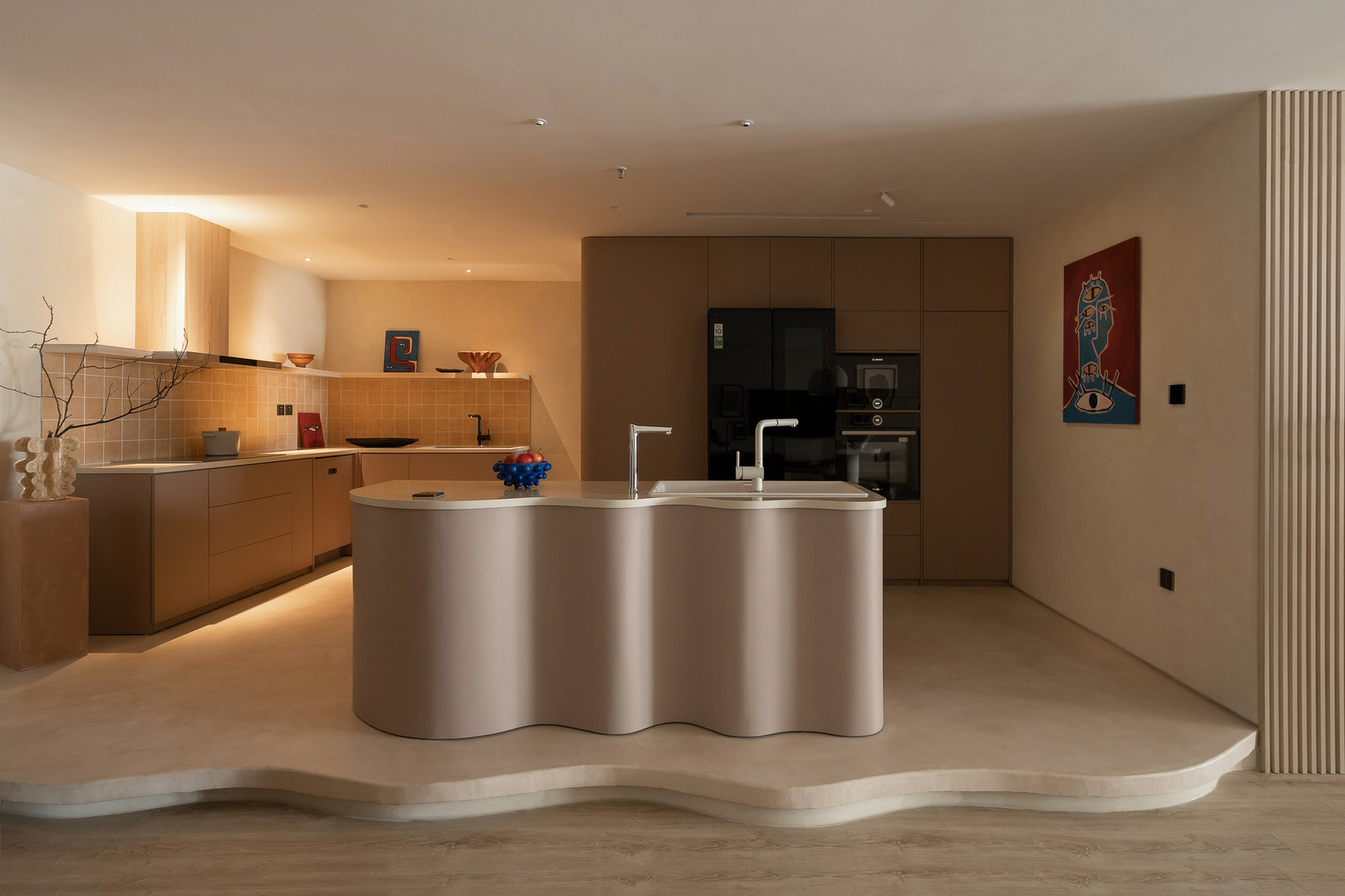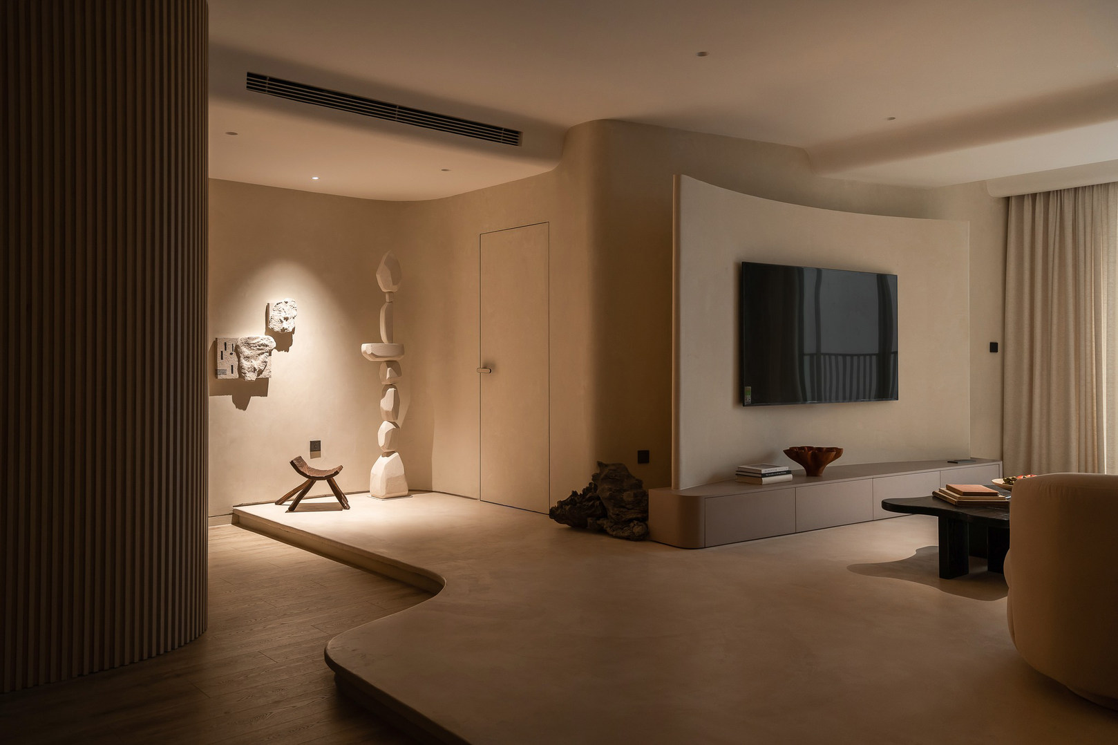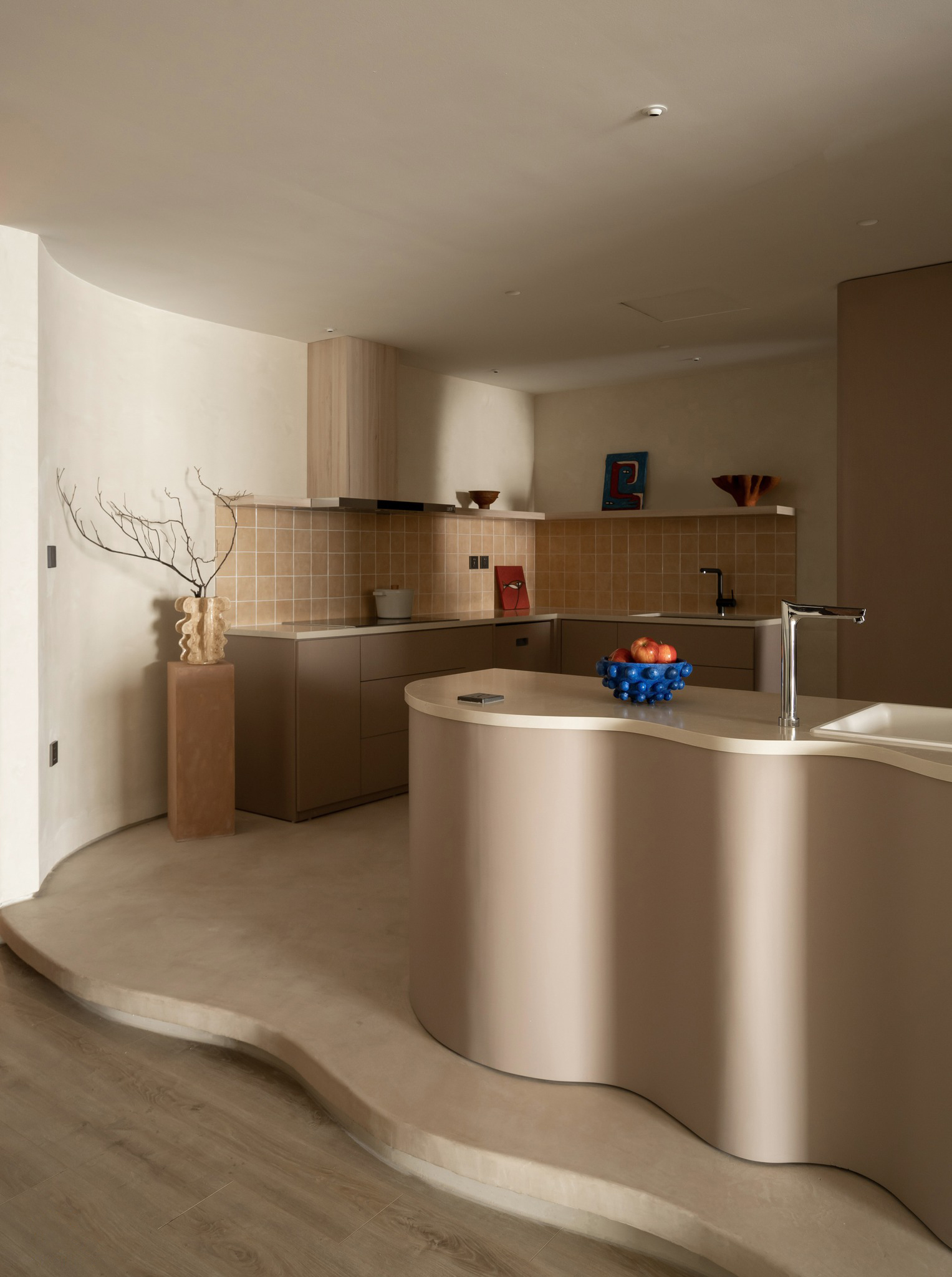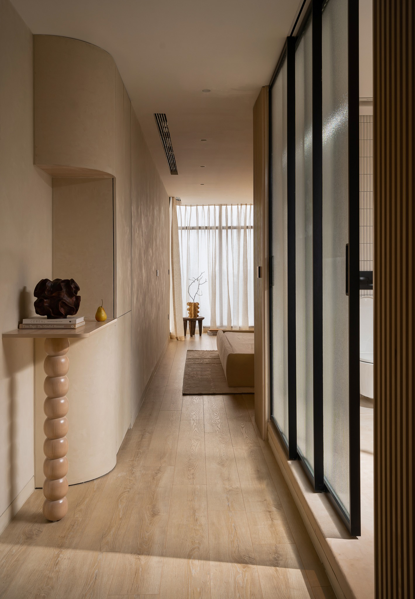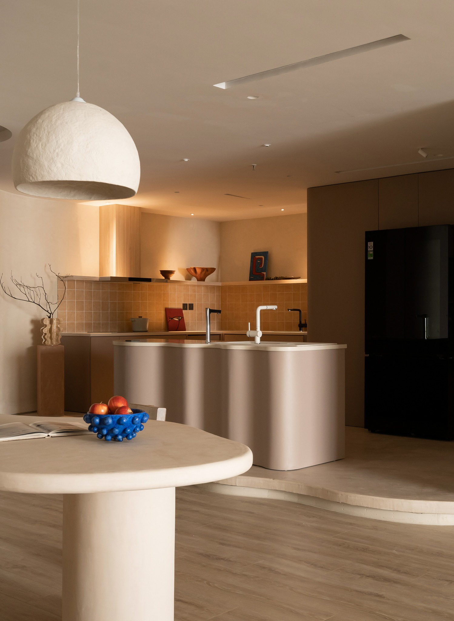 家的简介 家是需要慢慢规划的,从空间布局、功能到风格特质,一切以生活为原点而展开。目前的生活以男女两位业主和两个可爱的小狗构成,生动而活泼。未来的生活依然也在规划之中,小宝宝的到来将为这个家带来全新的感受。设计因此留下了动态可调整的空间,让家完全适应对未来美好生活的憧憬和规划。本案融合奶油色调和轻法元素,以"简约、温馨、实用”为核心,不仅满足了对美学的追求,更兼顾了功能性和舒适性。从玄关的精致设计到客厅的光影艺术,从餐厨一体的便捷布局到卫生间、卧室的个性化打造,每一个细节都经过深思熟虑,为家注入更多的生活气息和功能性。 户型图 1.独立厨房,扩充操作面积,将内部设备区域调整位置。 2.融合为拥有衣帽区,睡眠区,卫生间一体的舒适套房 玄关 通过光的引导,推动进入者往客厅区域行走。鞋柜储物基于墙面延展,通过门廊的矩形限定原木柜体呈现。删繁就简的几何设计语言主导空间的设计理念,从入户的换鞋凳选品开始,异性原木靠背椅,生动真实的纹理还原自然状态,让使用者开放自在。与公区原木地板强调出独立的功能区域性,增强弥漫开来的空间过渡层次。 #玄关 客厅 客厅空间以大面积艺术漆、自然木材、低饱和色相构图来传达主题故事线,克制与舒适的空间美学得以展现。柔软的弧线沙发将不同的功能区域整合为一体,以此为点,呈现出一条自由流动的洄游动线。孩子尽情撒欢,父母开心微笑,独属于空间的“生活方式化"应运而生。 #客厅#沙发 根据夫妻品位爱好,选择去装饰化,还原空间最纯粹的体验感。电视区域以留白加弧形设计 局部优化细节,干净利落的线条框架让深邃感得到进一步延长。利用叠构设计手法,获取立面之间的层次关系,应和为不同部分,但却统一和谐的整体。墙角柔和暖光轻洒,温润质感蔓延。原石艺术摆件静立,放慢脚步,于这静谧角落,邂逅生活本真的宁静与美好。 #客厅#电视背景墙 与次卧门口打造专属屋主的地台小区域,加上一张舒适单人椅,既成为最温暖的休闲阅读角落,上方的筒灯随需求灵活调节光线,让空间晕染上一层柔影,营造平心静气的冥想氛围。同时,基于空间高效利用,沿墙定制装饰画,给单调的空间带来一抹独特,于无形之中巧填一丝温情。 #客厅 餐厅 对形式进行重构,将圆润餐桌的设计融入空间,以新的视角转换内外关系。作为曲形,柔化了空间中方正的矩形元素,吟游感巧妙蕴藏其中,带来行走间的感受变化。餐厅一角规划出方寸绿植区,视觉与自然产生联结,当优渥的光线洒入室内,摇曳的绿植释放出绝佳的舒适度,全然模糊了自然与空间之间的边界。 #餐厅#绿植 餐厅空间整体运用米色调,以极简的设计手法,椭圆餐桌混搭餐椅赋予家居三餐四季。留空设计减轻传统餐桌厚重感更显轻盈,有序的空间便于通行形成自由通达整体格局。吊灯置于上方,半圆外形增加空间功能性同时提高视觉美感。餐厅区域点缀设计感壁画,墙面悬挂电视,用餐、观影两不误。 #餐厅#餐桌 圆润的弧线餐桌四面可以灵活围坐,使用功能得以延伸。不再只局限于单一的用餐属性,阅读、办公都可以满足。以此为点,与客厅、饮水吧台、厨房区域形成有趣、流动的自由洄游动线。 #餐厅 厨房 地台隔离出烹饪区,开放通透的布局,形成以中岛为核心的动线,屋主烹调料理时,能与在客餐厅的家人互动。大理石纹理与咖调岩板注入朴雅质感,让烹饪成为一种疗愈的享受。而顶部通过散点照明设计烘托舒适,静谧,温暖的互动氛围,任时光流转,一刻即是永恒。 #厨房#开放式厨房 厨房去掉多余隔墙,改为开放式布局,经由紧贴墙面的L型橱柜延伸暗示,自然过渡到中岛餐厅空间,用减法设计优化公区的动线和采光。同时为解决烟道移位的问题,精心挑选强力吸油烟机,并细化烟管排布,油烟不倒灌的同时演绎简洁利落的设计美感。 #厨房#开放式厨房 厨房延续外部,以素雅简爽的浅咖色为空间色调,厨台,水槽,电器,收纳于一体,充分满足日常使用需求。长方形的岛台采用大理石的台面,利于日常的清洁工作。增添洗手台,加以分担橱柜的使用压力。靠墙一侧是一个嵌入式的收纳区,深色调的选色与橱柜形成对比,可放置家电。实用的储物空间和操作台,让屋主在烹饪时更加得心应手。 #厨房#开放式厨房 卧室 主卧的位置尤为独特,它处于公区搭建部分。在这里,构建了一个多功能套间形式,包含寝居,卫浴以及衣帽区。整体的设计上,将一切材质与元素都回归最简状态。天然原木地板通铺,质感细腻,给人以充分的安全感,能让睡眠更加安稳。温馨且中性的色调,使人放松心情,回归身体与内心的私密之处。家,在这里真正承托人的一切。 #卧室 忙碌了一天后,卧室便成为了身心放松的港湾。可靠的色调拥有绝对安定的舒缓力,米白色为简约空间提升温暖质感,并与灰色,木色搭配形成优雅沉稳的层次视觉。一张舒适的双人床靠墙放置在邻窗的位置。床头的墙面选择米白色的暖色调加以粉刷,增添温馨感。同时,搭配上舒适的床品,营造出一种安逸温馨的氛围。 #卧室 卫生间 卫生间采用干湿分离的布局,浴缸,洗漱台和马桶区分别位于不同的区域,且各自独立。其中,洗漱台借鉴酒店的风格,大理石的质地,白色台面干净易清洁,上方安装一盏浴室镜方便日常使用也能反射光线扩大卫生间内部视野。 #卫生间 |