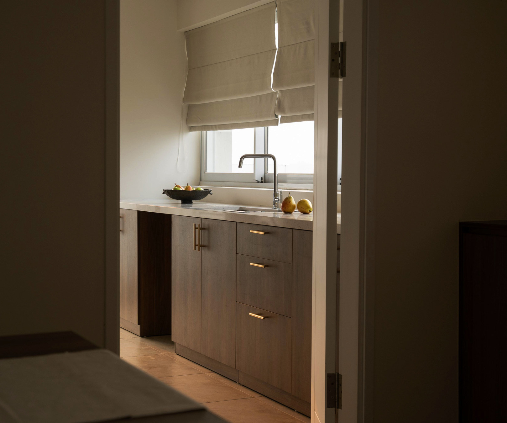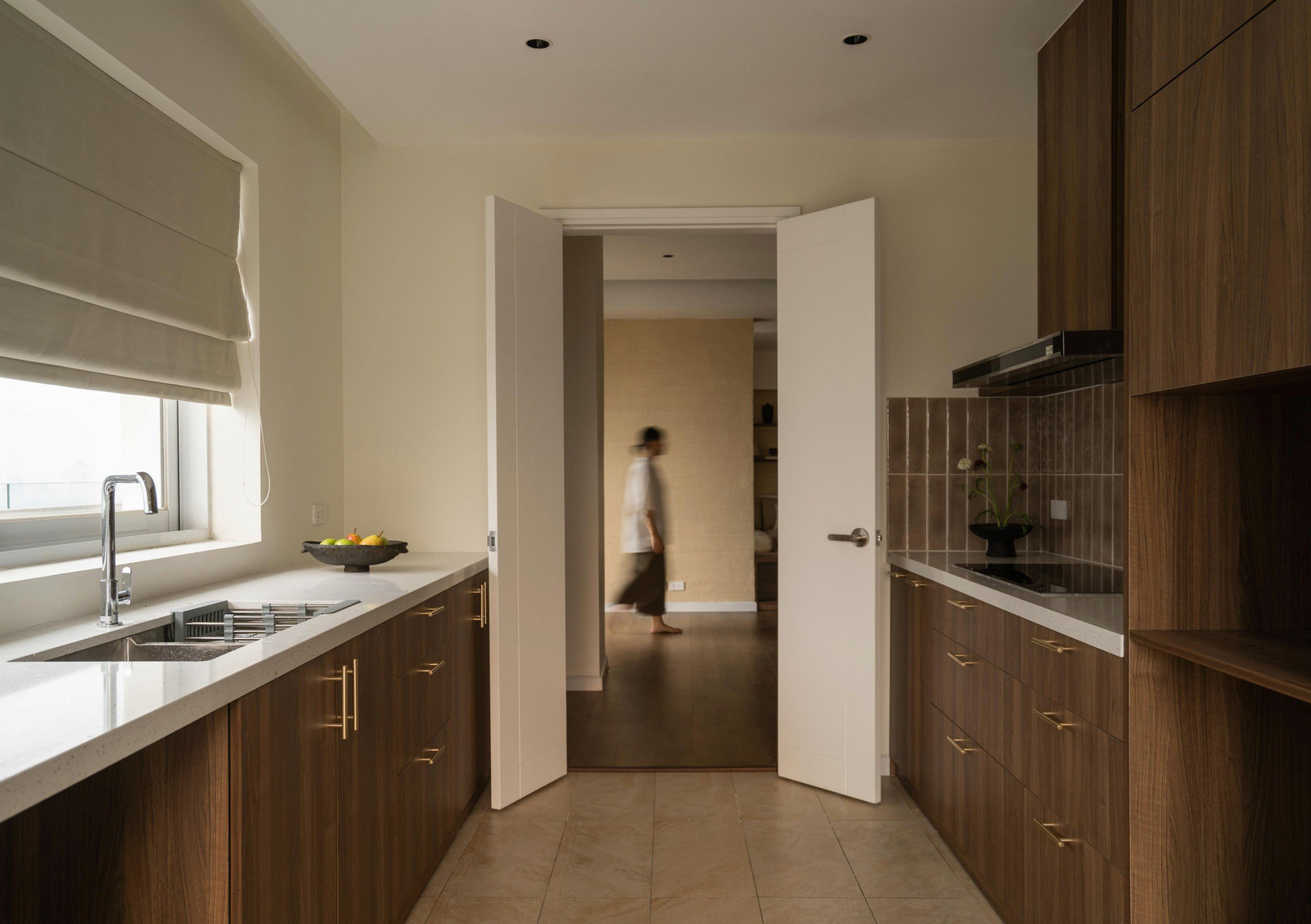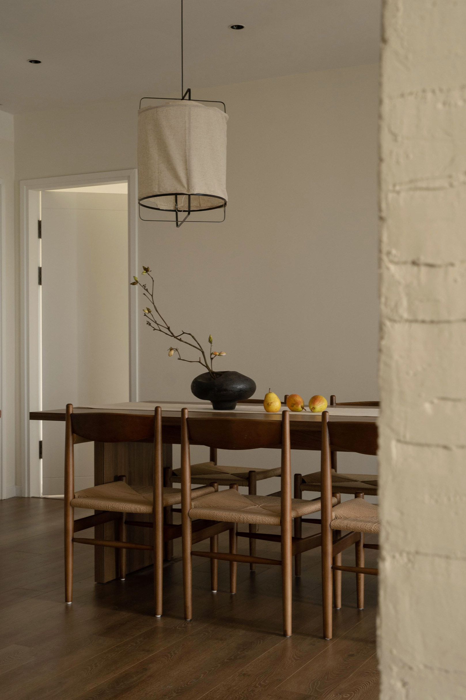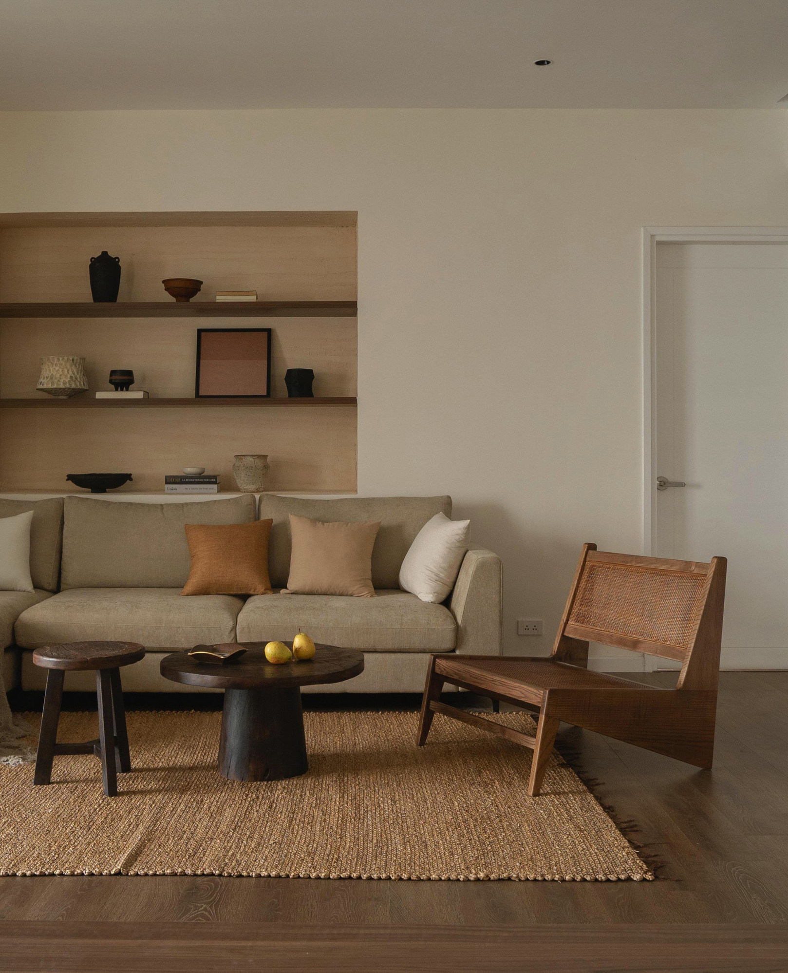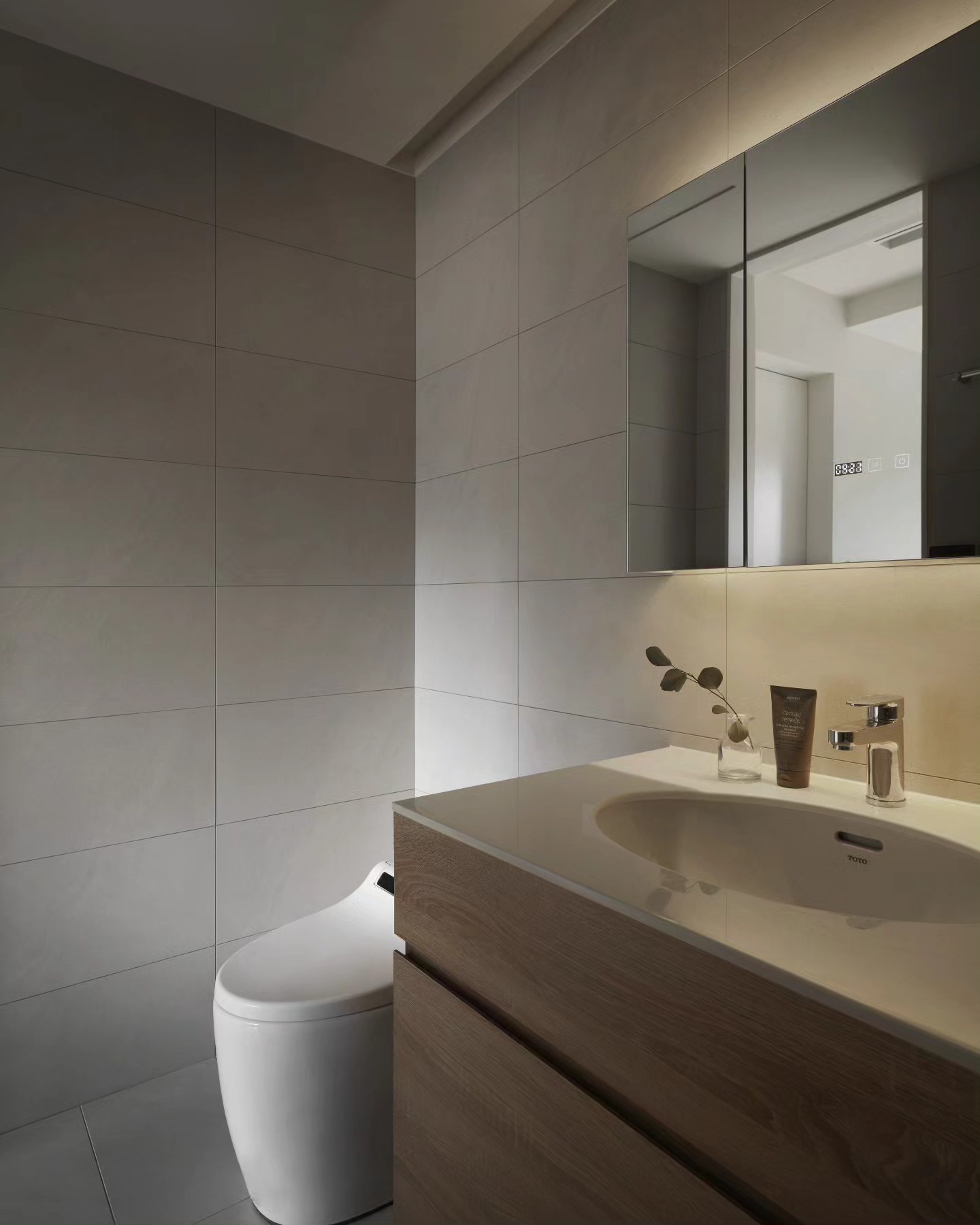 以“大自然”为灵感超越了室内色调的原木色调,展现大自然上宁静与动感、混乱与秩序、情感与理性的和谐共存。本期案例的主人是一家三口,女主人作为新时代女性,有着独特的见解,对一家三口在偌大城市中为他们搭建的独属之地有着明确的喜好与想法。在初次见面时就明确表示喜欢原木风格的宁静与温暖,对于新家的氛围温馨的同时加入一丝禅意的气韵来丰富整个居住空间。这一丝禅意也与居者追求内心丰盈的愿景不谋而合。在设计上屋主希望拥有高度开阔开放的空间,所以我们将公区功能高度整合客餐一体+封闭式中厨构筑洄游式动线。我们希望让家拥有更多的随性与洒脱。 户型图 1.整合主卧布局,拆除衣帽间,释放空间面积。改变原始动线,将卫生间安置于最里侧更加便捷。 2.于餐厅邻窗处新建地柜,提高空间使用率。 3.卫生间未做传统干湿分离,一体式的设计方便多人使用。 4.独立厨房,扩充操作台面,将原始内部设备区域更换位置。 客厅 客厅原木地板顺延贯穿,统一协调公区视觉关系。根据屋主爱好,选择去繁就简,还原空间最纯粹的体验感。简单吊顶搭配无主灯设计,干净利落的线条框架进一步延申空间深邃感。公区选用叠构设计手法,丰富立面层次感。 #客厅#原木地板#无主灯 柔软舒适的布艺沙发贴墙而放,搭配原木单人椅围合布局,简单的造型勾勒出自然惬意的休闲空间。亚麻编织地毯聚焦会客中心,黑色圆形茶几设计感满满,矮样式有效的纵向拉高层高,冷暖色系有序地交织。客厅区域更显雅致。 #客厅#沙发#茶几 考虑到家中需要更多储物空间才能保证日常空间的整洁、美观度。利用沙发后方原始空白墙体定制开放展示区,可放置屋主喜爱的不同类别的,大小件收藏品。沙发左侧因地制宜摆放原木柜,定制飘窗打破空间封闭感,将室内外光景衔接。 #客厅#收纳 局部优化细节,将原木置物板悬挂于墙面进行简化,干净利落的线条框架让艺术感得到进一步延申。利用原始石块及其树枝,获取大自然的元素,应和为不同装饰部分,但却统一和谐的整体。装饰画得到地方安置的同时也成为空间中独一无二的趣味装饰。 #客厅#置物板 餐厅 餐厅位于电视后方,除了采用开放式结构以营造流动的空间感,我们还巧妙地在空间疏密之间找到了平衡电视区域背景墙拆除,打破隔断,整个公区完全开放,采用了双动线,极大地延长了家庭成员在此区域的停留时间。 #餐厅 柔和浅淡的原木色为空间基调,展现出温馨优雅的氛围气质。简洁的硬装线条,给予软装陈设最大化的包容力度。考虑到屋主偶尔办公、亲子需求,选择多人位长方形餐桌,比石材触感更温润的橡木材质,保留住硬木的天然形态,为空间提升自然、细腻的日常之美。 #餐厅#餐桌#原木 以空间便携动线和多元使用功能为设计要点,将餐厅放置在中央,餐椅环绕式布局,串联起前后客厅,左右厨房,营造流动,自由,交互的全新秩序。餐桌顶部悬挂着两盏日式样式的吊灯,暖黄色的灯光增添温馨色彩。前方沿着墙面打造了一排原木色的地柜,增加收纳的空间。 #餐厅#餐桌#吊灯 厨房 中厨空间采用双一字型布局,搭配原木地柜与肤感白大理石台面,既彰显自然韵味,又不失现代简约格调。内置高品质五金件与实用电器,确保了厨房功能的全面与高效。充足的储物空间,加上符合操作者身高的高低台设计,共同营造出一个既舒适又便捷的烹饪环境,完美融合了美观与实用性。 #厨房 厨房留有原始透光窗户,避免视觉碎片化,用材质延续的手法将其包裹,呈现更聚焦,统一的界面感受。橱柜选择深色系更显稳重大方,清洗区与燃气灶相对而置,台面上可以放置小家电,使用的储物空间和操作台,动线上兼顾屋主的使用习惯。 #厨房#橱柜 卧室 方形飘窗保障卧室采光与通风,空间大面积延续外部色调,局部白色艺术漆与原木进行分色呈现。考虑到房间需要一种更舒适、纯粹的入睡氛围,在挑选床品时放弃了成品的样式,选择与空间更匹配、素净的色调进行定制,表达出更温暖、更柔和的美好日常。 #卧室#原木 卫生间 卫生间通铺肌理丰富的大理石瓷砖,搭配结构精致的一体盆,见光不见影的灯带点缀氛围感,自然流动的光影,将其转变为美好事物的载体,烘托出相对私密高级感的同时,营造出丰盈、优雅的空间美学。通过细节的比例、材质的搭配关系,让屋主在日常使用时,获得惬意放松的空间情绪。 #卫生间 |