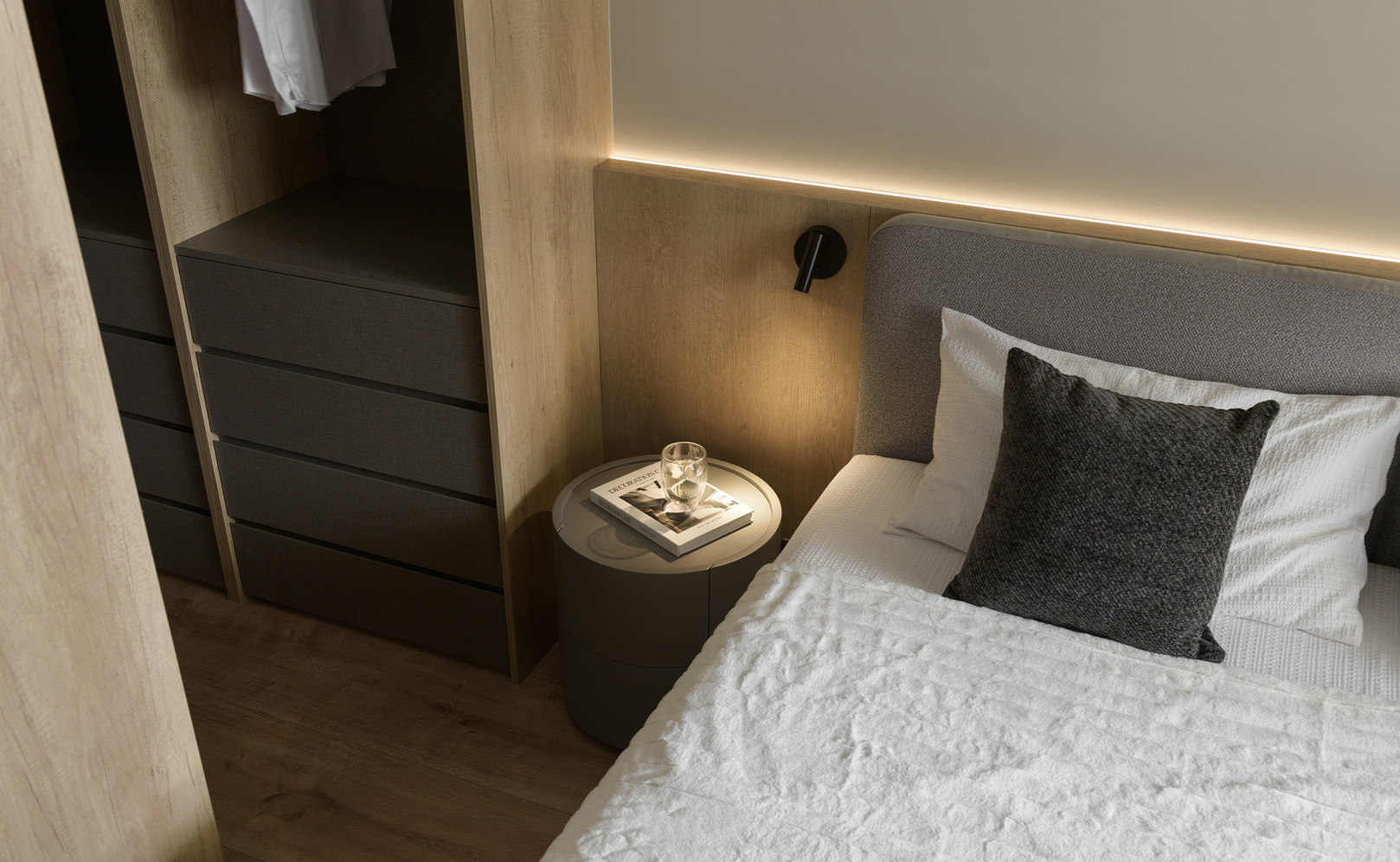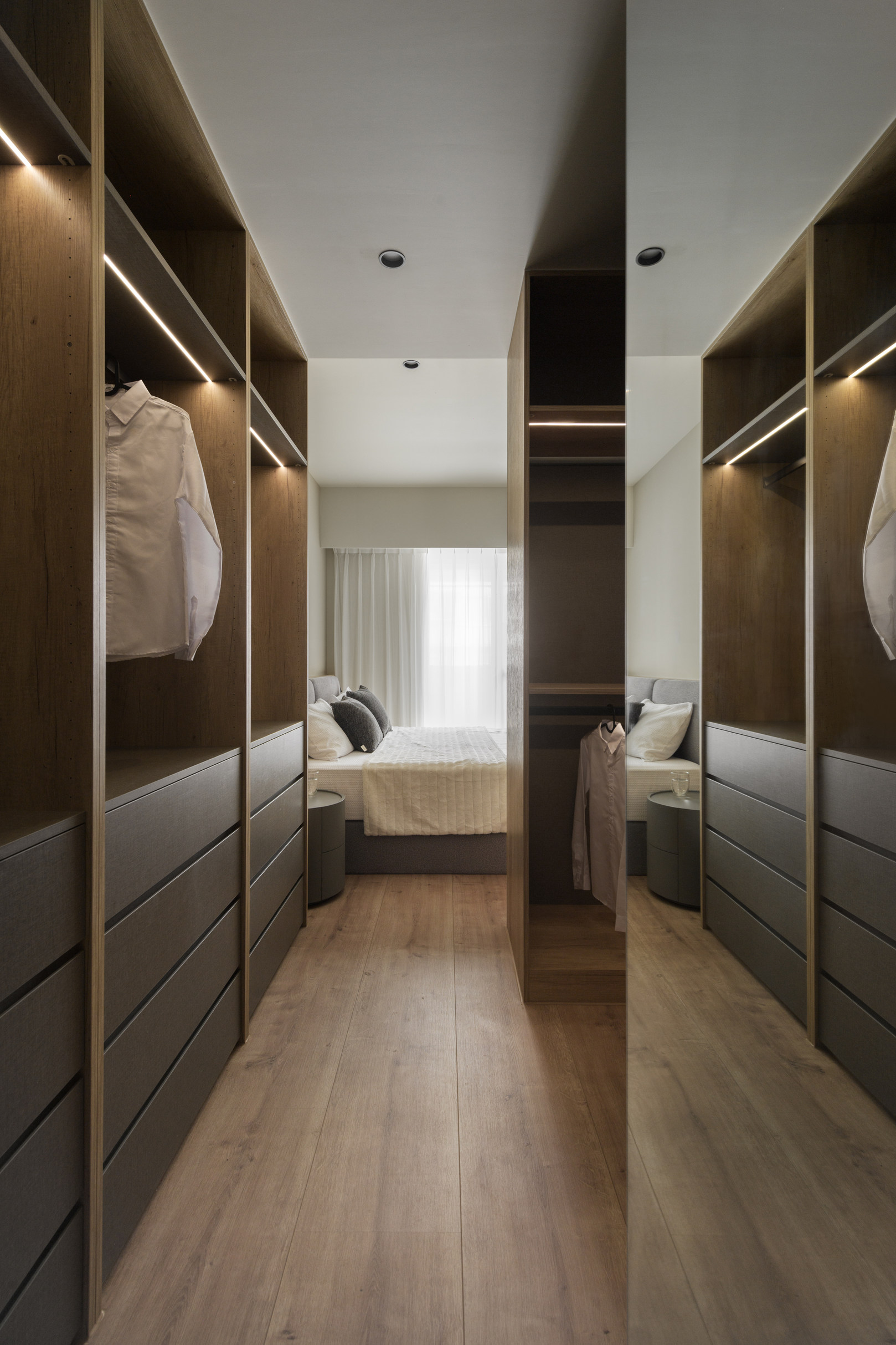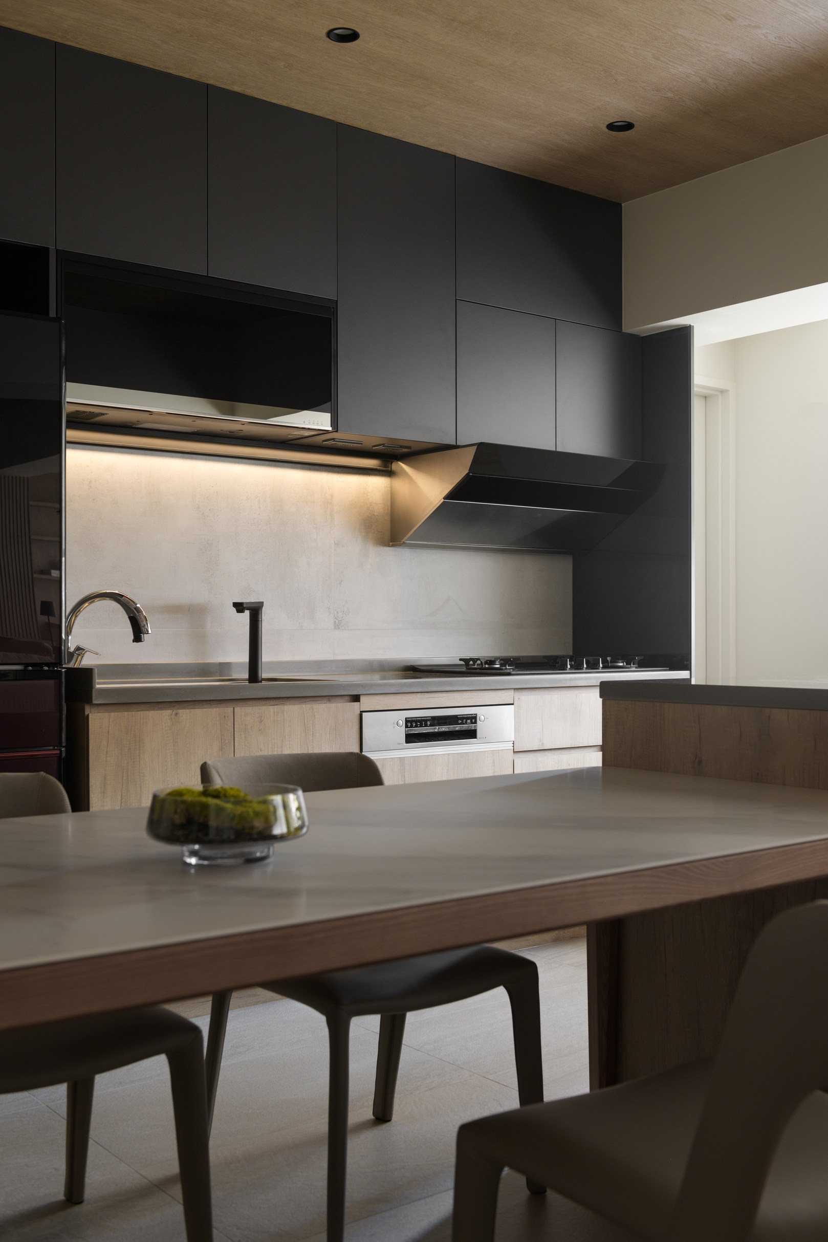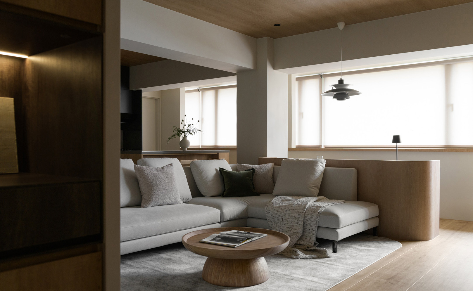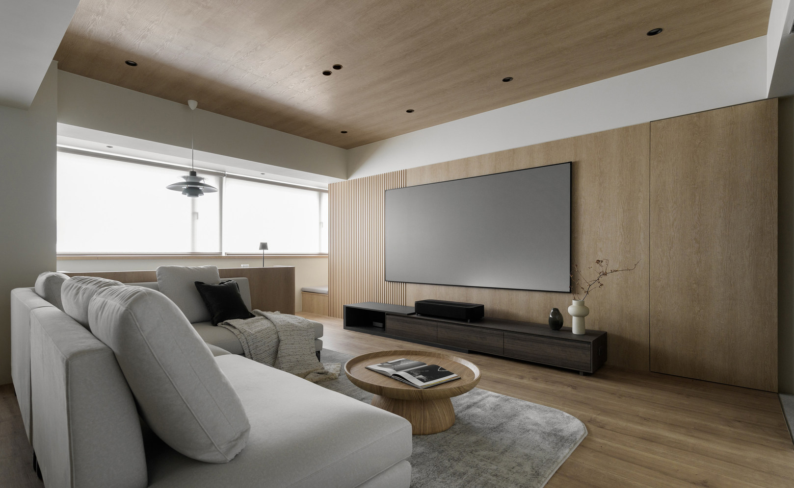 屋主为幸福的三口之家,在生活功能的需求上更多倾向于家庭内部的日常交互和学习需求,在风格和设计上喜欢简约朴素的现代风格,希望摒弃多余的装饰,保留一切生活的本真质朴。 屋主诉求: 对于房子原本的户型,屋主要求不变动,户型周正、采光优质,公共区域开放互通,最大的问题是屋主比较在意极简的设计感,原始承重墙保留,没有大拆大改的空间。对收纳容量也有一定的要求,希望最大化的利用空间,让储物柜自然融入其中,打造统一的平面。 根据屋主的需求和爱好我们最终确定了以简约原木为主基调并且成功落地。用最少的设计打造最有张力的空间,赋予家居生活无限的想象,简约与实用并重,讲究空间的干净素雅,没有复杂的元素和装饰,但是却能立马给人高级且精致的氛围感受,少而精,干净整洁的特点,由此带给人舒适、放松的空间心理感受,打造出屋主一直以来向往的理想家园。 户型图 1.客、餐、厨一体打造互联共通格局组合公区功能,开放厨房+岛台外置满足不同使用需求,补充厨房操作空间进一步完善洄游动线促进空间的连贯性,相序展开,打造高开阔+强互动的空间。 2.入户增加玄关柜扩充储物空间保证进出空间的仪式感。 3.卧室、客厅巧添书桌,区别与传统书房的学习办公功能,更具休闲性。 4.主卧配备独立衣帽间满足屋主日常所需,提升屋主幸福感。 玄关 玄关采用柔光砖与客厅原木地板,形成区分,自然过渡。做悬浮玄关柜预留换鞋区的同时增加空间呼吸感,底部、中部灯带内嵌,巧添温馨,柜体中部开放收纳随手之物,奠定整屋的极简格调。进门便可一览客厅,引人入胜,点亮归家的仪式感。 #玄关#地砖#玄关柜 客厅 客厅是体现极简原木风的空间之一,整体采用了浅木色地板,营造出温暖而自然的基调。整个客厅通过大面积的飘窗引入自然光线,使得整个空间明亮而通透,同时也让居住者在家中每个角落都能感受到自然与舒适的融合。 #客厅#原木风#客厅设计 对于软装搭配上删繁就简,采用浅色系的主沙发为主。方正的线条围和布局,一席同色地毯聚焦会客中心,原木边几敦厚可爱,各种材质,色彩,肌理,结构和谐相处,层次与秩序并存,将空间的功能性与审美性结合得恰到好处,让空间多了几分艺术气息。 #客厅#沙发#边几#原木风 公共区域沙发不靠墙设计强调视觉通透给予屋主创造空间,靠沙发设置原木书桌,迎窗打造沉浸式学习空间,丰富客厅功能。飞碟吊灯增添设计感,同时与客餐厅建立起联系,形式上随生活行为流动转化,加强家人间的沟通互动,家庭氛围自在随性。电视左侧沿飘窗打造小休憩区,上方做原木置物区,伴随着慵懒的温暖气息,更加精致有爱。 #客厅#书桌#吊灯 由墙及顶以原木覆盖,适当留白,温馨且舒适,无主灯设计,场域通透显大。电视背景墙没有做复杂的造型,原木格栅加原木护墙板上墙,线条横纵流动,悬浮电视加灯带内嵌,氛围感十足,下方做深色原木电视柜,收纳、展示功能兼具。 #客厅#客厅设计#电视背景墙 餐厅 客、餐、厨共处一场域,餐厅与开放式厨房+岛台一起牢牢连结,使餐厨一体化。岛台延伸了操作台面,以此形成洄游动线,增强了各个空间的互动性,也兼容会客的休闲娱乐,让空间具备社交共享属性。绿植洋溢,无论是用餐还是阅读都是一个最佳场所。 #餐厅#餐厅设计#岛台 从客厅延伸至餐厅做隐形柜收纳,餐厅区以开放加封闭柜形式展开,柜面与墙体一色,自成一景,中部镂空加原木饰面打造了开放展示区,打破统一带来的单调乏味感,摆放艺术摆件,灯带内嵌,温暖明媚,于细微处体现不凡品味。 #餐厅#餐边柜#收纳 隐藏式收纳是社交型餐、厨的关键,当餐厨功能向社交场合转变时,可快速隐藏收纳厨余电器,岛台与餐厅高低错落发挥不同功能,以原木饰面打底呼应全屋基调,下方做不同形式收纳,大面积桌面为无论是备餐还是学习提供良好条件,软垫靠背椅更是舒适感的来源。 #餐厅#岛台#插花 厨房 兼具功能性和美观的厨房是屋主的需求。我们选择打造一个社交型厨房,运用敞开式设计,结合岛台、餐厅让备餐区与储物区全面打开,将烹饪制作食物与用餐这两者功能结合,餐厨区域的空间充分利用起来,实现餐厨一体化。柜体选用浅色木纹木饰面搭配质感黑色,及免拉手设计,极简造型的设计在不破坏厨房整体性的同时减少磕碰,整体看起来干净又治愈。 #厨房#开放式厨房#橱柜 卧室 主卧设计以舒适度为主,双人床则居于卧室中央,原木护墙板一字延伸,灯带内嵌,辅以灰色靠背设计,朴素柔软的床品给予屋主好的睡眠体验。右侧放置极简床头柜便于收纳随手之物品,强调睡眠空间纯粹的同时,增设艺术壁灯做装饰,精致生活气息弥漫开来。木与白的配色舒适恬静,晕染柔和自然光线,给人岁月静好的感受。 #主卧#壁灯#卧室 衣帽间与卧室相邻,便捷的生活动线全方位提升居者的生活满意度,同时也能共享卧室优质采光,整体原木空间视觉感受干净纯粹独具温暖。以开放加封闭的通体衣橱设计,中部做挂衣区,横平竖直,视觉感受更为宽敞,空间更具呼吸感,内设储物区、叠放区、抽屉收纳区,应有尽有,满足屋主不同的储物需求,挂衣区以灯带烘托精致氛围,增加空间质感。 #衣帽间#原木#收纳 儿童房 为了让空间利用更加紧凑合理,满足孩童学习需求,寓教于乐,我们将床、书桌连接,打造一体式上床下桌,让房间看起来宽敞有余,五脏俱全。进门