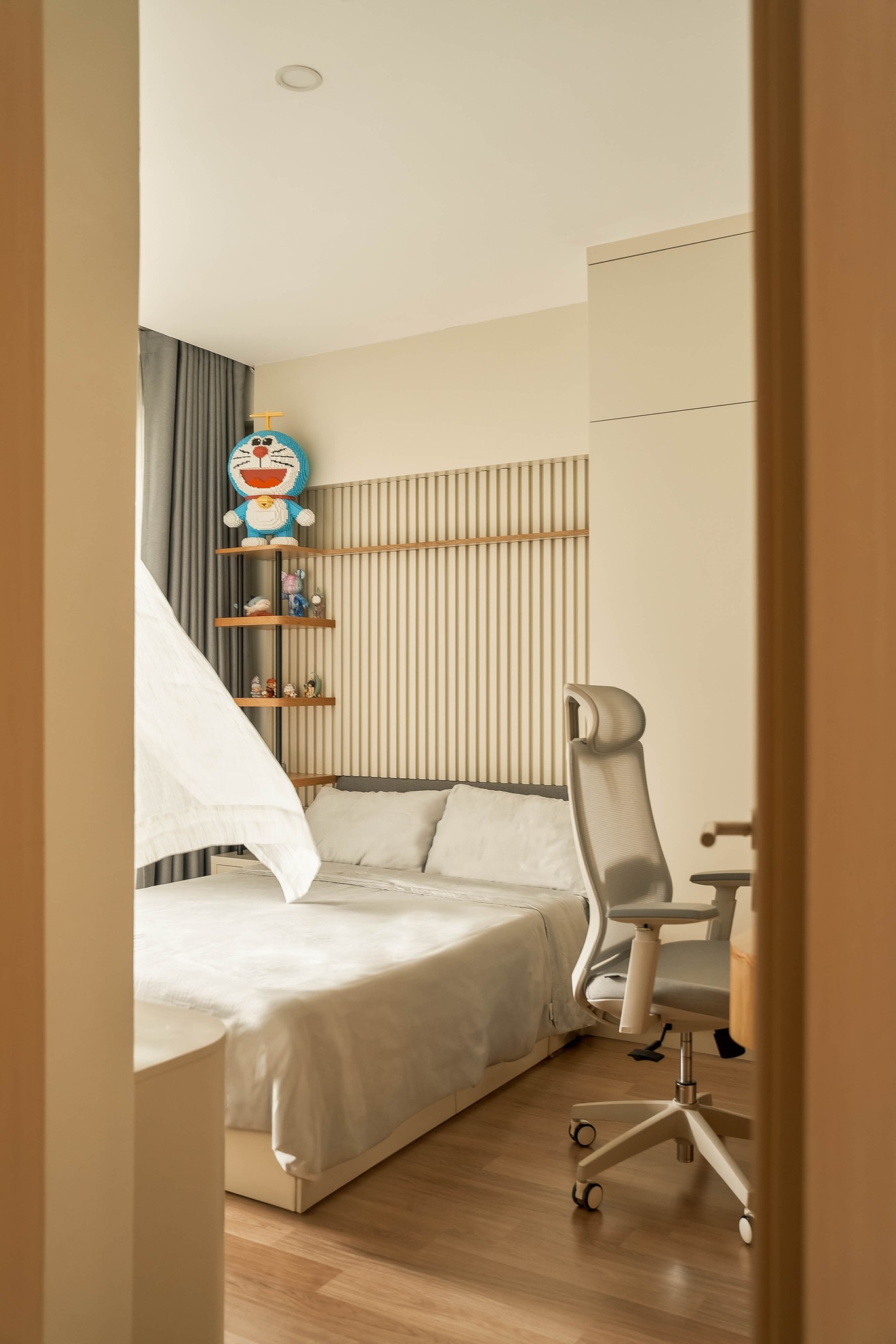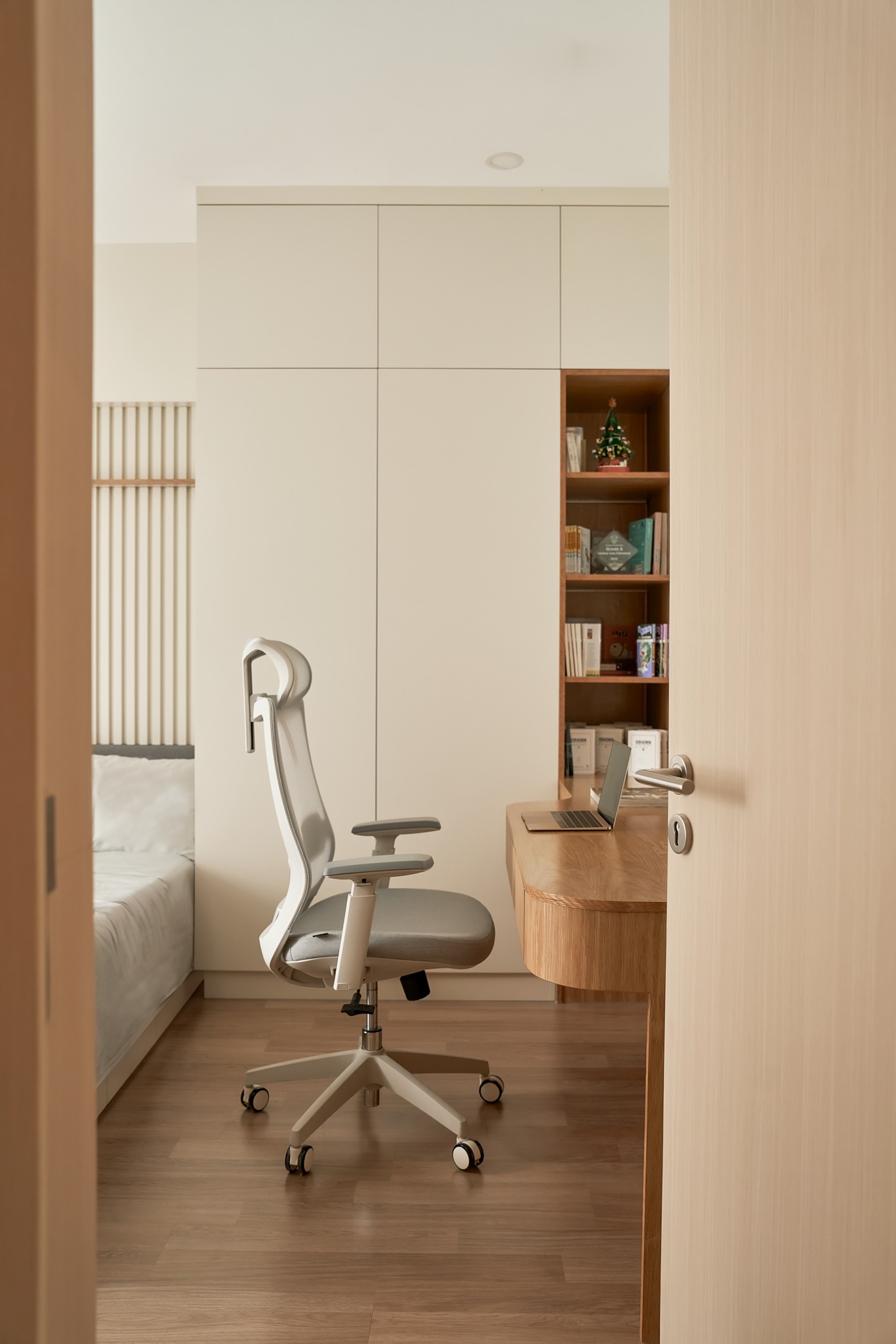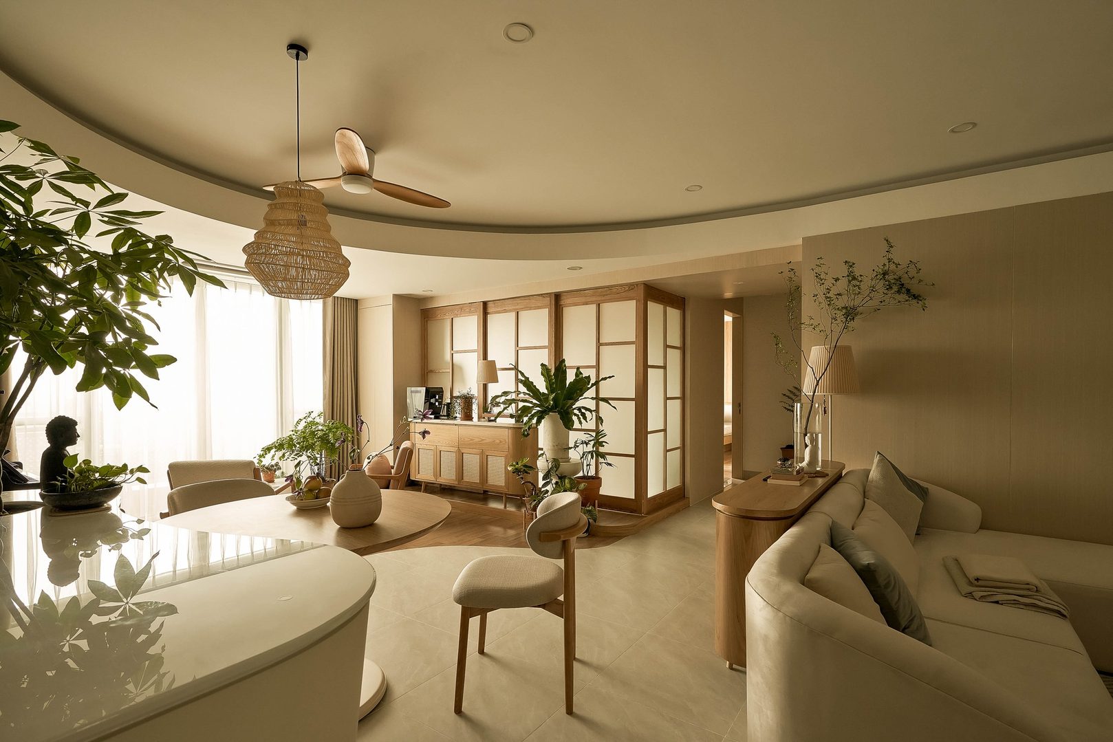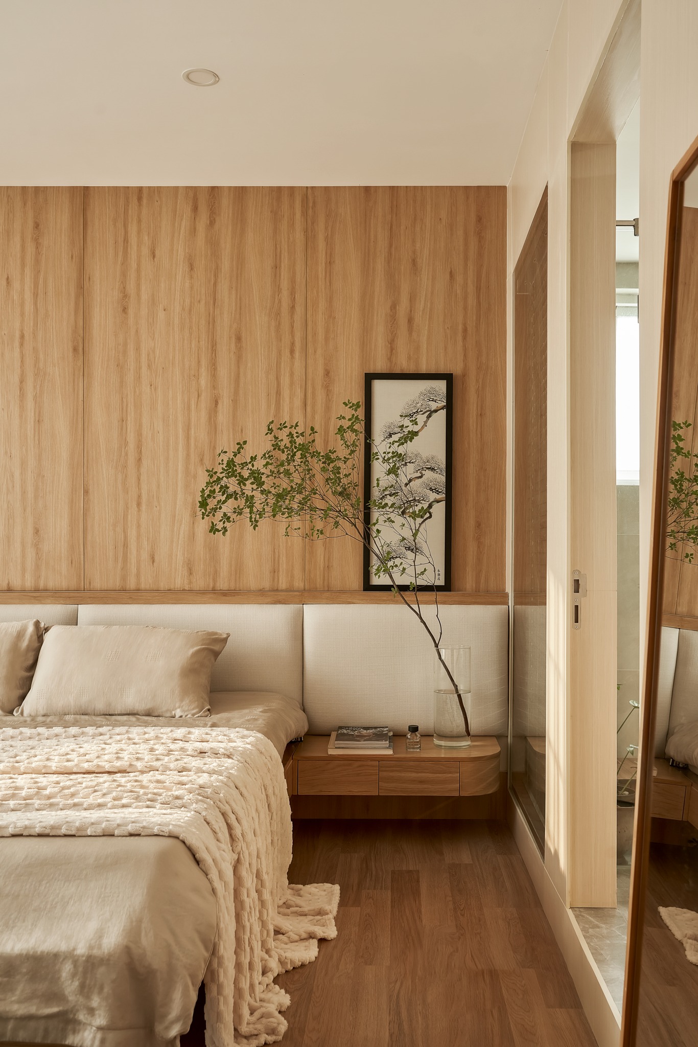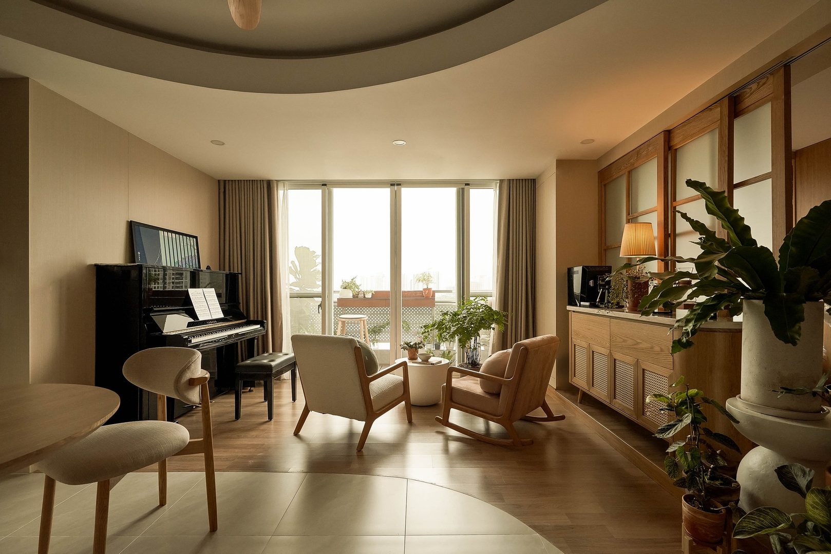 本次案例为新房装修项目,屋主是一对夫妻,房子的风格遵循女主人的想法来的,女主人的性格是一个温婉柔顺且娴静端庄的,比较注重生活仪式感,喜欢归家浪漫的感觉,通过更深一步的交流与沟通了解到屋主酷爱原木元素,更倾向于原木风格。 屋主诉求: 屋主对现代原木和简约风格有深厚的兴趣,她希望在满足空间功能的同时,也能感受到空间温暖的人文气息。能够将室内的优质采光利用起来,扩大明亮,舒适的观感范围,寻求一片宁静的空间放松自己。其次又要兼具实用性需求。在保证功能齐全的情况下,尽量开放式设计,功能区做到分而不隔。 为满足屋主的需求,我们在风格上,新家确定以现代原木为主基调,整个设计围绕屋主的生活方式与审美取向展开,创造一个完美契合需求的家居环境。通过对空间合理的布局,利用光线和色彩营造,力求简洁又不失特色。并在细节处通过抓取“大自然”特质,运用绿色调营造出一种舒适自然的氛围 户型图 1.在玄关处设置了玄关柜以及置鞋区,保证屋主进出需求,增加储物空间。 2.在卧室之间设置独立卫生间缩短生活动线,卧室内加入办公桌扩充使用功能,进一步提升居家舒适度。 3.客餐厅一体化设计,拆除客厅墙体,整个南北通透,增加舒适度和通透感。增设休闲客厅丰盈空间表现形式。 4.开放式厨房与公区空间形成完美联动,打破传统空间的界限视觉上更宽敞明亮,提升家人之间的互动性 5.设置独立书房构建沉浸式学习空间,偏向自然的设计处理让书房更具活力。 玄关 入户是玄关空间,地面上装点着花卉纹饰,形成与客餐厅的过渡空间,让出门入户,更具仪式感。米白的底色增加视觉上的明亮度。左侧的部分设计了一个小型玄关柜,可以收纳鞋具等等,十分方便。同时在墙面上粘贴了几个挂钩,满足屋主的使用需求的同时,减少空间密闭沉闷感。 #玄关#地砖#玄关柜#原木风 客厅 背景墙通刷蜜瓜橙,沙发后方做浅色原木柜收纳,细腿支撑保证充足的储物空间之余,又相对利落轻盈,勾勒造型的立体感。上方绿植与摆件的光影映射在墙面之上,调动情景氛围,家居体验时尚而独特谱写温柔的空间情绪。 #客厅#绿植#沙发#储物柜 从屋主喜好和审美出发,客厅与休闲室平行而设,整体布局合理且实用。暖色调铺陈整个空间,构筑柔和温暖的空间气质。地面选择了大理石地砖,中和暖调,软装方面尽量精简,只通过白色主体沙发,绿植,地毯来凸显客厅中心,让空间更显干净和秩序。 #客厅#地砖#沙发#地毯 夜幕降临,昏黄的灯光不动声色的为空间注入温柔与安然,营造着静谧慰藉的氛围。玻璃折叠门自由切换不同的实用需求。当光透过玻璃流露出含蓄的中式意蕴,为家增添一份源自自然的韵脚。绿植的加入平添几分艺术气息,让家的每一个角落都充满趣味与惊喜。 #客厅#玻璃门#绿植 休闲区域两张沙发椅围绕茶几摆放,柔软的同时具备足够的支撑力,茶几低矮造型减少视觉阻挡,归还屋主最开阔的空间体验。左侧墙面用来归置钢琴,打造一个开放琴房,阳光晴好的午后,携着光影和微风,安宁静谧的小屋响起袅袅琴音,交织出幸福而美好的一刻。 #客厅#沙发椅#茶几#绿植#原木风 书房旁加入斗柜缓解全屋收纳压力,划分出的多个抽屉实现多格储物与分类收纳,榆木的色调+藤编的点缀宛如置身复古的电影情节之中。置放上台灯,摆件,盆栽等物,实现美与实用的共生。旁侧则划分出绿植盆栽区,营造静谧和谐空间语境,美在角落。 #客厅#地台#斗柜#绿植 餐厅 奶油色调一如既往占据餐厅的主导地位,惬意的圆桌,围拢出一家人和谐美满的用餐画面感。在餐厅与厨房之间设计一个圆弧形的吧台隔断,使得这块区域处于半开放的状态,有序的空间便于通行形成自由通达的整体格局。顶部安置了一个手工编织创意吊灯,精准的点亮用餐仪式感。 #餐厅#餐桌#吊灯#岛台#圆桌 圆桌与吊顶上下呼应,将空间视觉变得流畅柔和。将目光聚焦于餐桌质感的来源,原木材质不单是追求视觉上的美感抗污耐油也是线上生活所需。小巧餐桌减轻传统餐桌厚重感更显轻盈,配套餐椅柔软的坐垫给予屋主舒适的就餐体验与细腻的木质纹理共同搭建低调的高级质感。 #餐厅#餐椅#绿植 客餐厅之间联通无界,吊顶边缘做弧形设计化解天花板的棱角与落差,在视觉上层面扩大空间增加延申感,让家更显明亮开阔。客餐厨等公共区域之间以木地板衔接地砖作为界限划分,不影响视野延申的同时强调分区,让家更有秩序感。 #餐厅#地砖#圆桌 厨房 开放式厨房采用双一字型布局合理规划出清晰流畅的操作动线,将每一寸空间的充分利用。整体采用原木+白色调,打造更为清新脱俗的视觉氛围,橱柜的高度遵循人体工学,让家务更轻松。外侧设置吧台扩充厨房操作台面,形成洄游动线提升便利,厨电内嵌演绎理工学美感。 #厨房#橱柜#岛台#开放式厨房 走廊 纵深的走廊加深着空间的层次,无论是立体的墙面设计还是温和的灯光模式都与整个家的主基调相呼应。摇曳的绿植也与空间一同感知着生活的美好,整个空间平和自持,舒缓雅致。 #走廊#绿植 书房 书房整体采用原木包裹,散发温存质朴韵味,偏向休闲的设计让办公学习处于放松自然之间。保留飘窗铺设软垫打造出阅读休憩的好去处,优渥的采光透过木质百叶帘进入室内,浪漫与温馨充斥全屋。靠墙作通顶储物柜,提升书房储物功能,柜内暗藏玄机,安放着