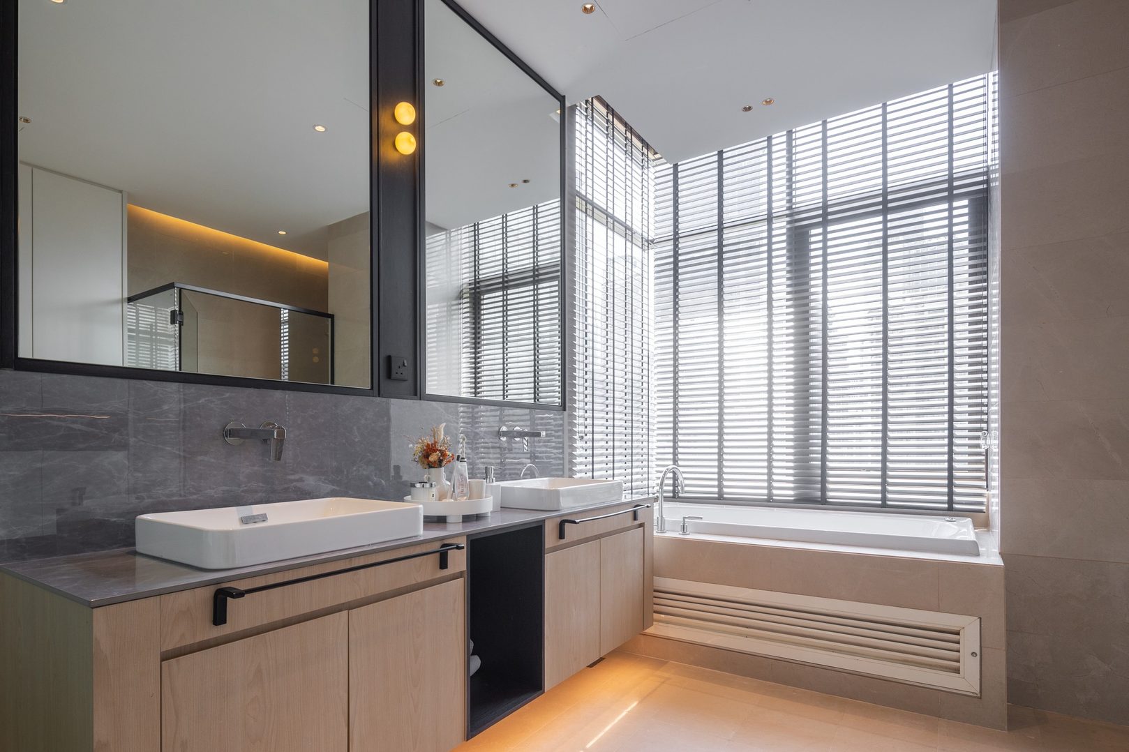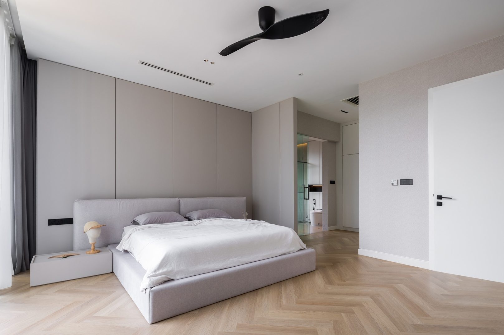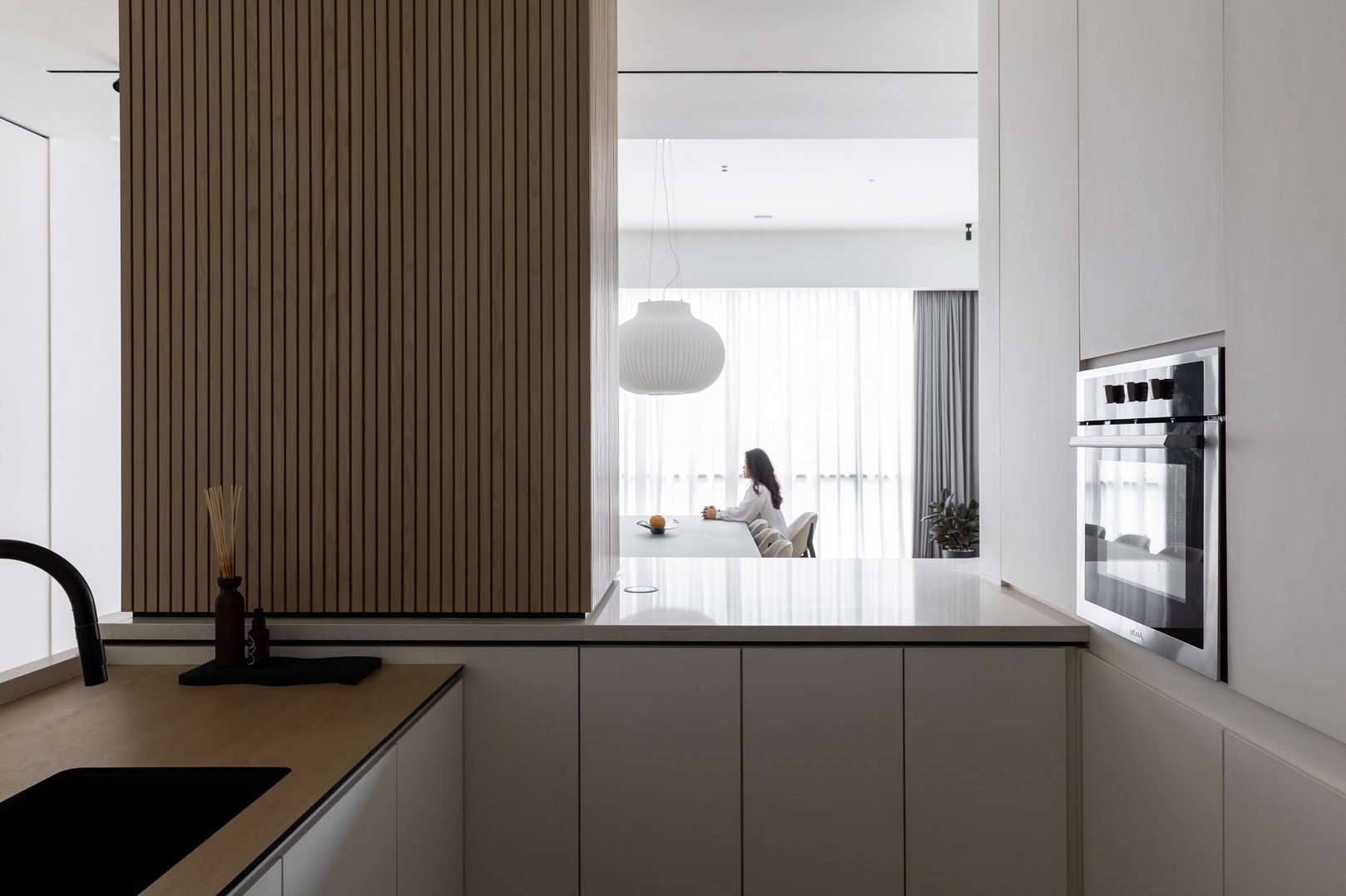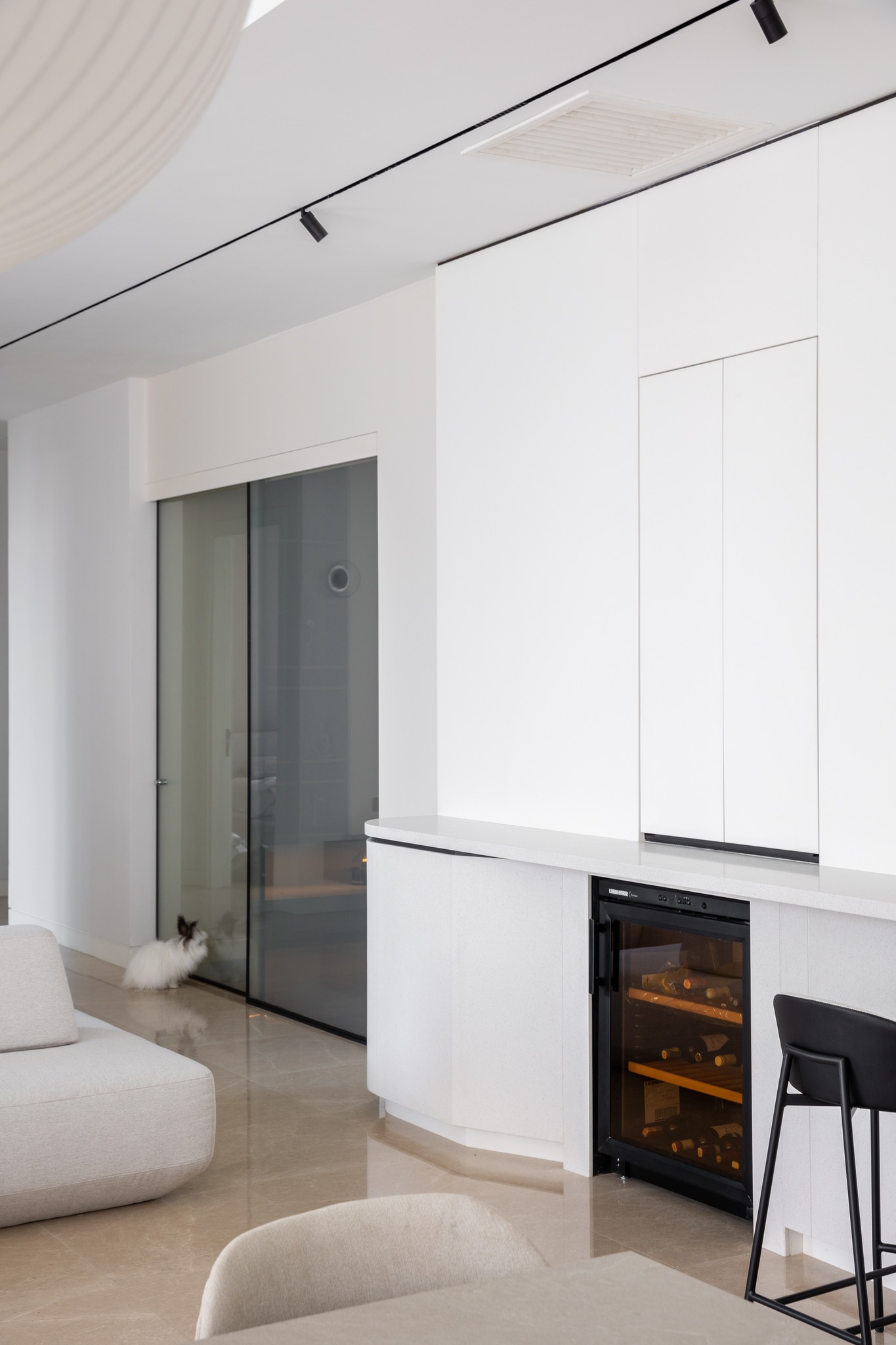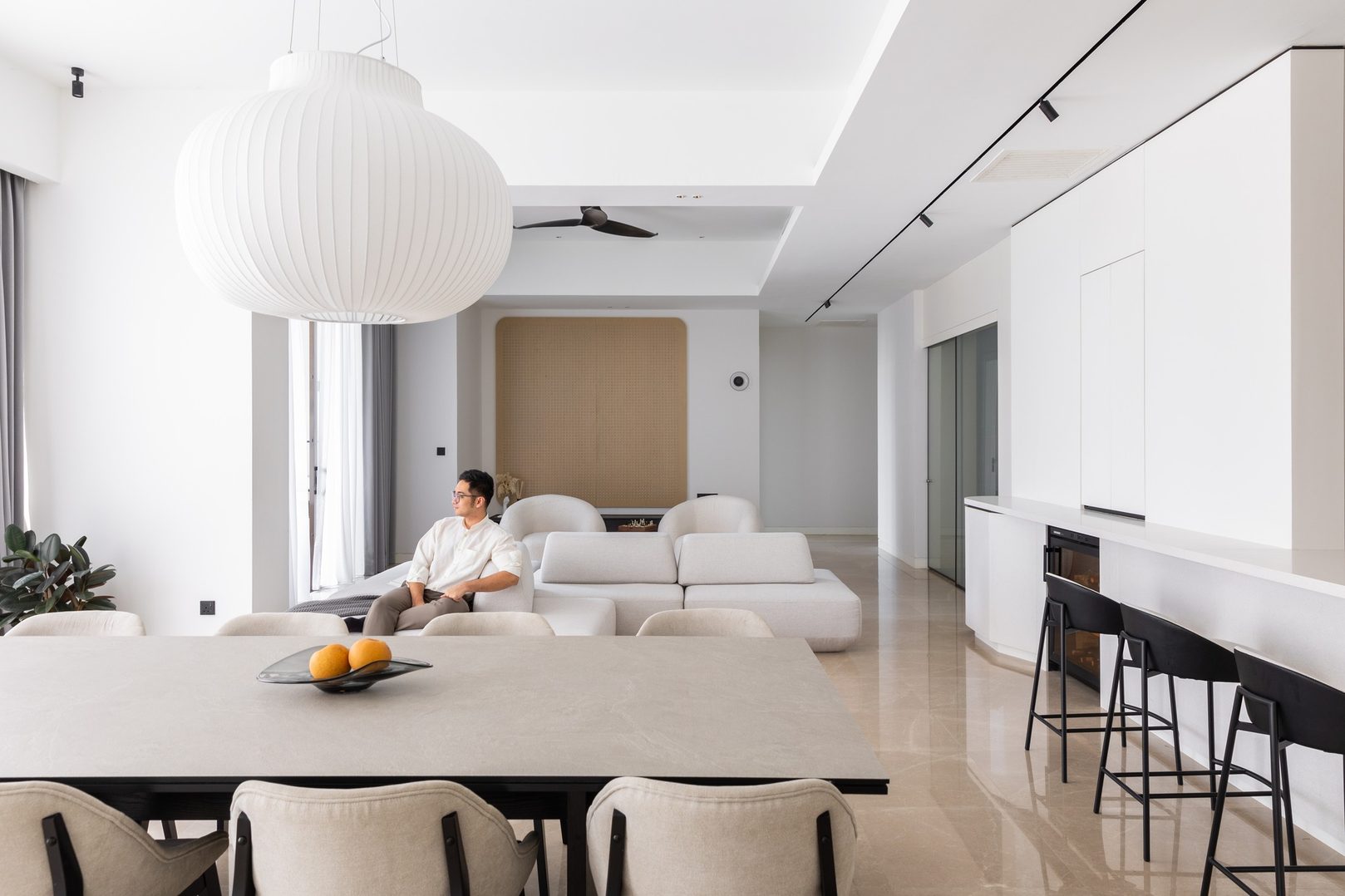 本期案例为新房装修项目,上下两层,屋主喜爱现代轻奢风格,希望能够栖息于精致雅侈的环境,享受质感的生活。 屋主诉求:屋主对于房屋的规划,整体需要有明朗开阔的感觉,颜色的选择上尽量以白色、灰色为主,并将一层的公共区域做客餐厨的一体化设计。功能使用具有便捷度与私密性。彰显他们独特的个人爱好,拥有宽敞舒适的生活空间。 综合考虑到屋主的使用需求,最终确定以现代轻奢为主线,在满足功能性需求的基础上严格把控材质与细节的运用,实现居者理想中的家。软装的搭配增加亮点消弭空间乏味,其次在客厅布局上做一定改变,餐、厨一体化设计增加屋主互动感,搭配吧台缓解厨房压力,增加整体质感。卫生间、卧室相邻,缩短动线,提升屋主幸福感。 户型图 1、功能区合理区分,打通入户格局,厨房、吧台与餐厅结合,环形动线流畅自然。 2.大面积落地窗引入自然光线让空间更开阔通透让一楼空间的整体放大。 3.一楼增设休息室为居者提供放松休息的区域。同时也增加了玄关柜,增加入户收纳空间。 1.二楼则以睡眠区为主采用动静分明的布局。 2.主卧改造成大套间,睡眠区、衣帽间、卫生间一应俱全,构筑私密且舒适的私人空间,给予更为高品质的生活享受。 3.二楼配备休闲区满足居者日常所需,根据屋主生活习惯增加卫生间,做干湿分离。 客厅 客厅空间以简洁温柔的为主基调,干净耐看的白色铺陈空间底色,低饱和纯色墙体在无主灯映射下呈现独特质感,现代软装充盈其中,大理石地板通铺增添雅奢质感,空间充满独特细腻的气息。搭配无主灯设计,在实用的基础上扩充视觉,大面积落地窗引光入室带来丰沛采光。全屋低饱和度色块点缀,恰到好处的气质彰显,将居住者内心抚慰。 #客厅#无主灯#客厅设计#现代风 视线聚焦于开放会客厅,作为整个空间的交互核心和灵魂,打破传统的沙发摆放形式,弱化客厅的存在,将客厅作为一个可成长的空间。墙面,柜体,房门颜色和谐统一,隐藏与展现,视觉效果干净清爽。整体的色调结合四周筒灯、射灯补充光源带来温馨,一切变得宁静美好。 #客厅#沙发#客厅设计#白色 客厅选用组合式白色模块沙发,营造松弛且灵活自如的场景秩序。整体设计去繁就简,去电视设计贴合当代年轻人需求,墙体大面积留白,客、餐、厨处于同一场域,在层层递进中找到空间的节奏。以布艺、木纹、艺术涂料三种材质搭配,将生活与休闲自然过渡。 #客厅#沙发#客厅设计#吊灯#无主灯 餐厅 客餐一体开放式设计增加空间流动性,餐厅展示优雅基调,餐厅采用鱼肚白的岩板餐桌,自带打光效果的岩板餐桌不仅让餐厅成为家居中的一道亮丽风景线,更是彰显出主人的品味和格调。奶白色的皮质餐椅组成,色调淡雅温柔,自然细腻的肌理让用餐场域显得娴静而优雅。长桌配置能够同时容纳多人用餐,依托落地窗通透感,空间规划大气平整。 #餐厅#餐桌#餐椅#长桌#吊灯 方形餐桌把握着人与人之间恰到好处的距离。餐桌的台面选择了加宽的设计,更符合多人用餐的需求。岩板质地诠释中式雅致气息,不同于传统的用物质堆砌而成的美感,意式轻奢更为简洁、大方,白色灯笼吊灯聚焦餐桌中央,点亮用餐仪式感。 #餐厅#餐桌#吊灯 厨房 厨房封闭设计,隔绝油烟,定制L型橱柜使在厨房内的动线布局都是在转身之间完成,橱柜白+浅绿配色清新自然,斑点地砖消弭单调,与全屋色系上保持统一性,简约耐看。清新的配色让整个空间的舒适度提升了不少,也避免小空间的沉闷感,美观又实用。 #厨房#橱柜 厨房外侧设计为环绕吧台,紧衔餐、厨,延展厨房、餐厅功能,从橱柜到岛台采用纯白色+极简造型+隐形柜门,把简约和利落贯彻到底。采用吧台相互衔接,餐厨结构一下子被拉大,方便又实用。吧台不仅包揽用餐、收纳、料理台的功能,还能增进与家人之间的沟通,提升幸福感,也为生活增添趣仪式感。底部灯带环绕,氛围感拉满。 #厨房#吧台#中岛#岛台 吧台环绕,台面、承重柱点缀暖色系木饰面,内嵌水槽扩充厨房功能,电器平整嵌入,空间最大化利用的同时演绎理工学美感,满足西厨爱好者,在纯净舒适的空间里感知温馨客餐厅一体化开放布局,空间互通超敞亮~多处隐形柜从细节上去设计收纳、让家久住如新通过简单的材质打造静谧的生活气息~ #吧台 吧台外置高椅,黑色细腿设计提升质感的同时轻巧灵动减少笨重感,底部做白色隐形柜,为全屋收纳提供有力支撑,空间层次丰富,形成动线上的视觉联动,让家有更多的可能性。开放式的布局,提高空间利用率,同时缩短家居动线。客餐厨地面选择统一的米色地砖铺贴,保证了空间的完整性,沉稳大气的同时,还方便清洁打理。 #吧台#地砖 客、餐、吧台处于同一场域,打造超实用开放空间,公共区域完美分配空间,满足休憩、会客等功能,一切融洽,既独立又统一。墙体巧做隐形柜体,虚实结合,缓解视觉单调,同时满足不同的储物需求,原木点缀增加空间层次感,隐形灯带蔓延环绕整个吧台区域,打造见光不见影的精致感。 #吧台#灯带 吧台左侧墙体镂空,内嵌储物柜,放置厨具,与白色墙面融为一体,打开之后别有洞天,家电平整嵌入隐形收纳的同时也打破通体白色带来的单调感,射灯环绕丰富室内光源。 #吧台#收纳 卧室 主卧设计以简约为主,整个空间以高级灰和现代简约为基础,低调的色彩搭配营造了舒适又有格调的享受!背景墙采用灰色搭