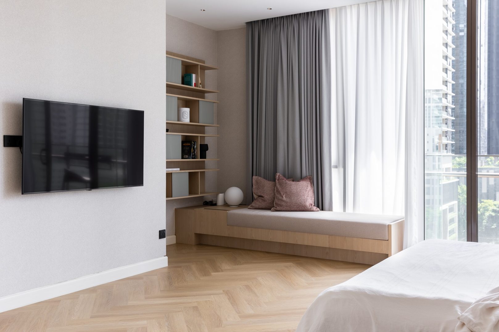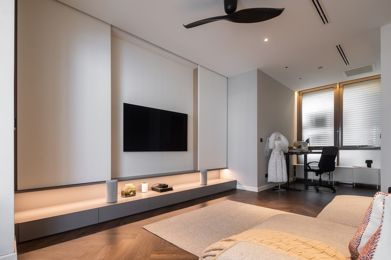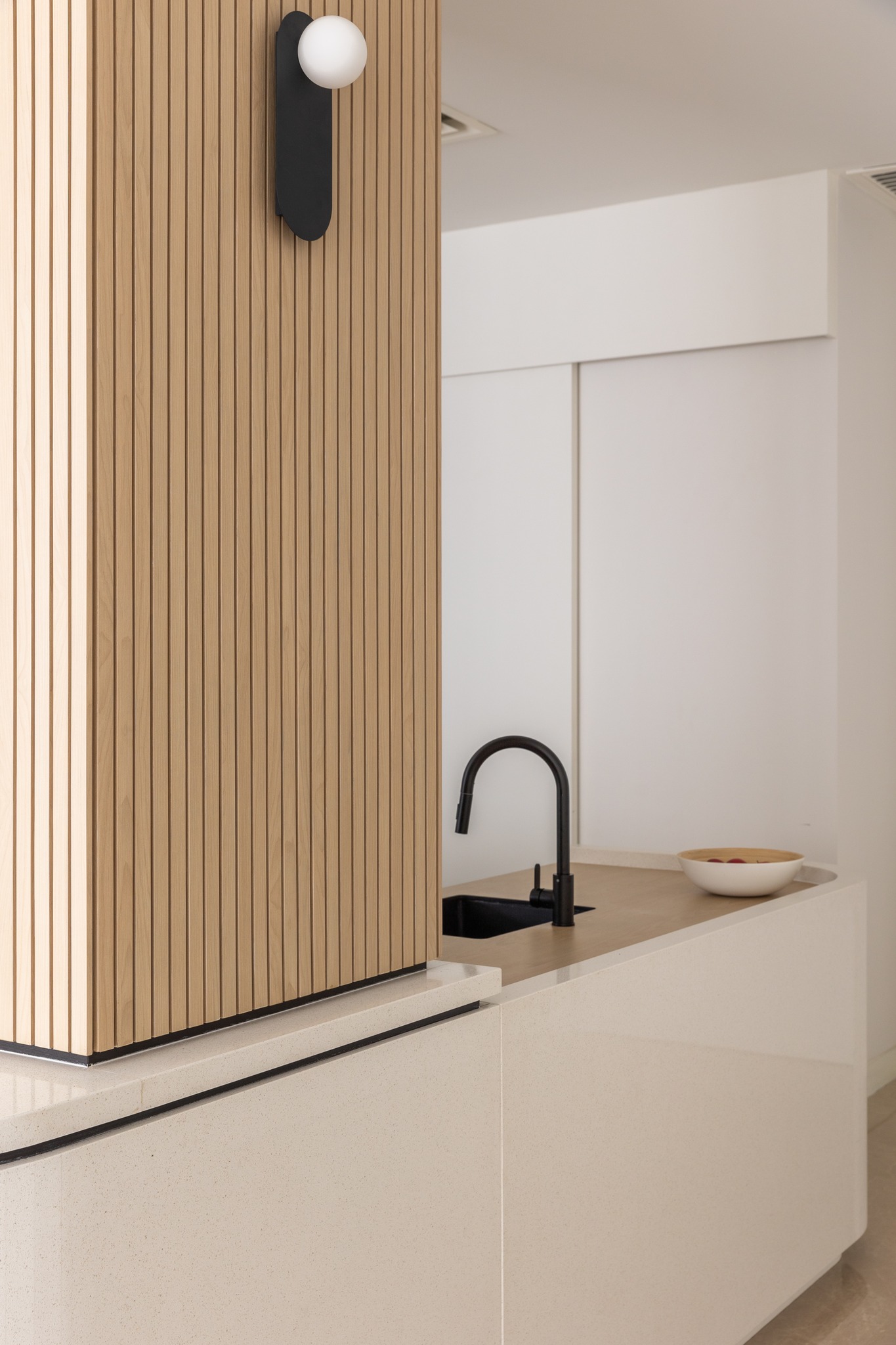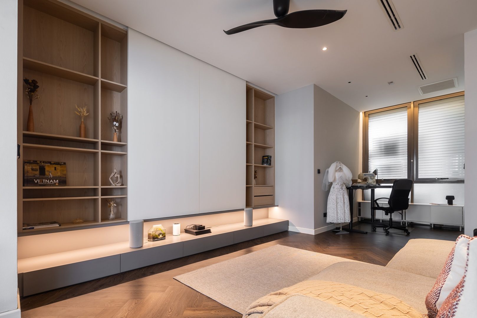 本期案例为新房装修项目,上下两层,屋主喜爱现代轻奢风格,希望能够栖息于精致雅侈的环境,享受质感的生活。 屋主诉求:屋主对于房屋的规划,整体需要有明朗开阔的感觉,颜色的选择上尽量以白色、灰色为主,并将一层的公共区域做客餐厨的一体化设计。功能使用具有便捷度与私密性。彰显他们独特的个人爱好,拥有宽敞舒适的生活空间。 综合考虑到屋主的使用需求,最终确定以现代轻奢为主线,在满足功能性需求的基础上严格把控材质与细节的运用,实现居者理想中的家。软装的搭配增加亮点消弭空间乏味,其次在客厅布局上做一定改变,餐、厨一体化设计增加屋主互动感,搭配吧台缓解厨房压力,增加整体质感。卫生间、卧室相邻,缩短动线,提升屋主幸福感。 户型图 1、功能区合理区分,打通入户格局,厨房、吧台与餐厅结合,环形动线流畅自然。 2.大面积落地窗引入自然光线让空间更开阔通透让一楼空间的整体放大。 3.一楼增设休息室为居者提供放松休息的区域。同时也增加了玄关柜,增加入户收纳空间。 1.二楼则以睡眠区为主采用动静分明的布局。 2.主卧改造成大套间,睡眠区、衣帽间、卫生间一应俱全,构筑私密且舒适的私人空间,给予更为高品质的生活享受。 3.二楼配备休闲区满足居者日常所需,根据屋主生活习惯增加卫生间,做干湿分离。 客厅 客厅空间以简洁温柔的为主基调,干净耐看的白色铺陈空间底色,低饱和纯色墙体在无主灯映射下呈现独特质感,现代软装充盈其中,大理石地板通铺增添雅奢质感,空间充满独特细腻的气息。搭配无主灯设计,在实用的基础上扩充视觉,大面积落地窗引光入室带来丰沛采光。全屋低饱和度色块点缀,恰到好处的气质彰显,将居住者内心抚慰。 #客厅#无主灯#客厅设计#现代风 视线聚焦于开放会客厅,作为整个空间的交互核心和灵魂,打破传统的沙发摆放形式,弱化客厅的存在,将客厅作为一个可成长的空间。墙面,柜体,房门颜色和谐统一,隐藏与展现,视觉效果干净清爽。整体的色调结合四周筒灯、射灯补充光源带来温馨,一切变得宁静美好。 #客厅#沙发#客厅设计#白色 客厅选用组合式白色模块沙发,营造松弛且灵活自如的场景秩序。整体设计去繁就简,去电视设计贴合当代年轻人需求,墙体大面积留白,客、餐、厨处于同一场域,在层层递进中找到空间的节奏。以布艺、木纹、艺术涂料三种材质搭配,将生活与休闲自然过渡。 #客厅#沙发#客厅设计#吊灯#无主灯 餐厅 客餐一体开放式设计增加空间流动性,餐厅展示优雅基调,餐厅采用鱼肚白的岩板餐桌,自带打光效果的岩板餐桌不仅让餐厅成为家居中的一道亮丽风景线,更是彰显出主人的品味和格调。奶白色的皮质餐椅组成,色调淡雅温柔,自然细腻的肌理让用餐场域显得娴静而优雅。长桌配置能够同时容纳多人用餐,依托落地窗通透感,空间规划大气平整。 #餐厅#餐桌#餐椅#长桌#吊灯 方形餐桌把握着人与人之间恰到好处的距离。餐桌的台面选择了加宽的设计,更符合多人用餐的需求。岩板质地诠释中式雅致气息,不同于传统的用物质堆砌而成的美感,意式轻奢更为简洁、大方,白色灯笼吊灯聚焦餐桌中央,点亮用餐仪式感。 #餐厅#餐桌#吊灯 厨房 厨房封闭设计,隔绝油烟,定制L型橱柜使在厨房内的动线布局都是在转身之间完成,橱柜白+浅绿配色清新自然,斑点地砖消弭单调,与全屋色系上保持统一性,简约耐看。清新的配色让整个空间的舒适度提升了不少,也避免小空间的沉闷感,美观又实用。 #厨房#橱柜 厨房外侧设计为环绕吧台,紧衔餐、厨,延展厨房、餐厅功能,从橱柜到岛台采用纯白色+极简造型+隐形柜门,把简约和利落贯彻到底。采用吧台相互衔接,餐厨结构一下子被拉大,方便又实用。吧台不仅包揽用餐、收纳、料理台的功能,还能增进与家人之间的沟通,提升幸福感,也为生活增添趣仪式感。底部灯带环绕,氛围感拉满。 #厨房#吧台#中岛#岛台 吧台环绕,台面、承重柱点缀暖色系木饰面,内嵌水槽扩充厨房功能,电器平整嵌入,空间最大化利用的同时演绎理工学美感,满足西厨爱好者,在纯净舒适的空间里感知温馨客餐厅一体化开放布局,空间互通超敞亮~多处隐形柜从细节上去设计收纳、让家久住如新通过简单的材质打造静谧的生活气息~ #吧台 吧台外置高椅,黑色细腿设计提升质感的同时轻巧灵动减少笨重感,底部做白色隐形柜,为全屋收纳提供有力支撑,空间层次丰富,形成动线上的视觉联动,让家有更多的可能性。开放式的布局,提高空间利用率,同时缩短家居动线。客餐厨地面选择统一的米色地砖铺贴,保证了空间的完整性,沉稳大气的同时,还方便清洁打理。 #吧台#地砖 客、餐、吧台处于同一场域,打造超实用开放空间,公共区域完美分配空间,满足休憩、会客等功能,一切融洽,既独立又统一。墙体巧做隐形柜体,虚实结合,缓解视觉单调,同时满足不同的储物需求,原木点缀增加空间层次感,隐形灯带蔓延环绕整个吧台区域,打造见光不见影的精致感。 #吧台#灯带 吧台左侧墙体镂空,内嵌储物柜,放置厨具,与白色墙面融为一体,打开之后别有洞天,家电平整嵌入隐形收纳的同时也打破通体白色带来的单调感,射灯环绕丰富室内光源。 #吧台#收纳 卧室 主卧设计以简约为主,整个空间以高级灰和现代简约为基础,低调的色彩搭配营造了舒适又有格调的享受!背景墙采用灰色搭