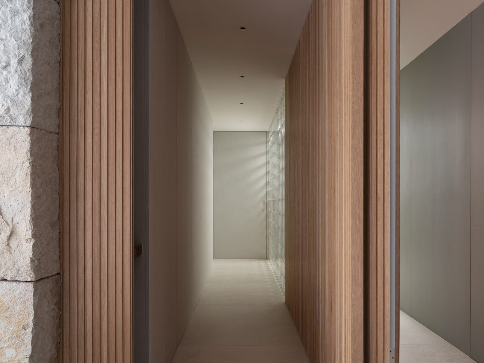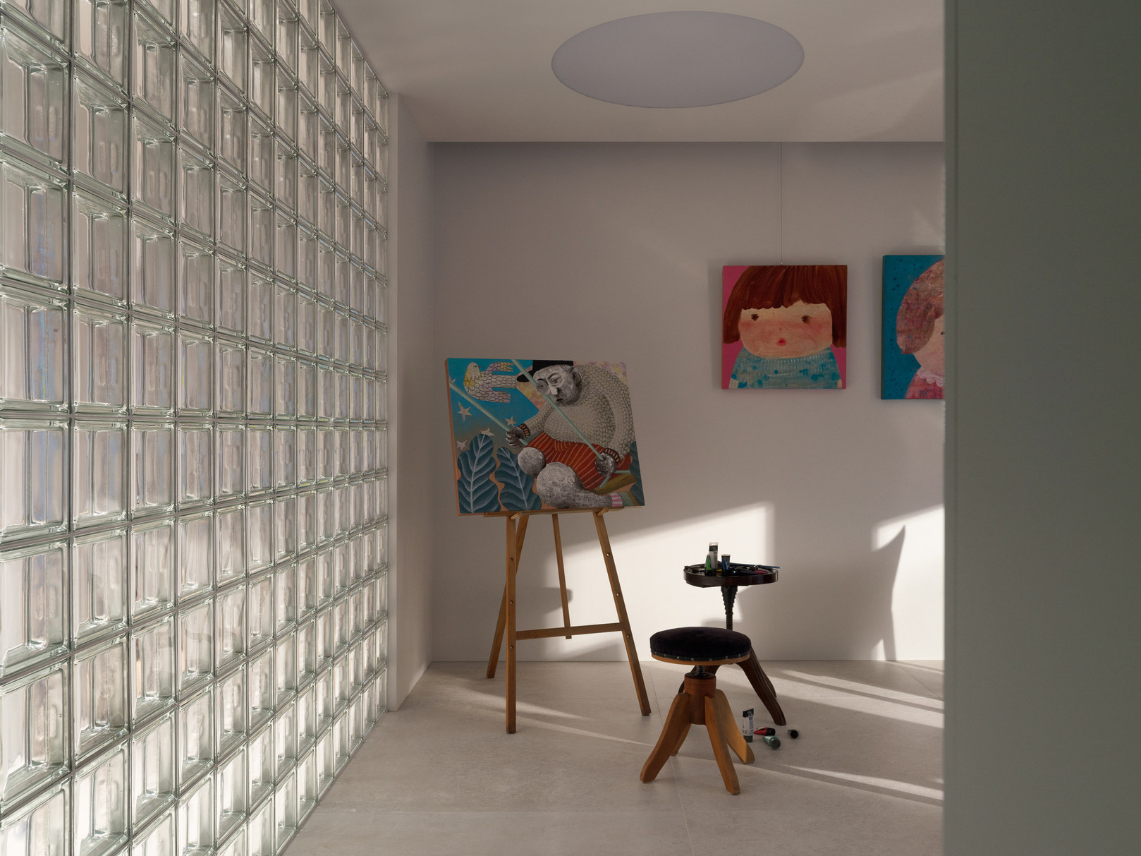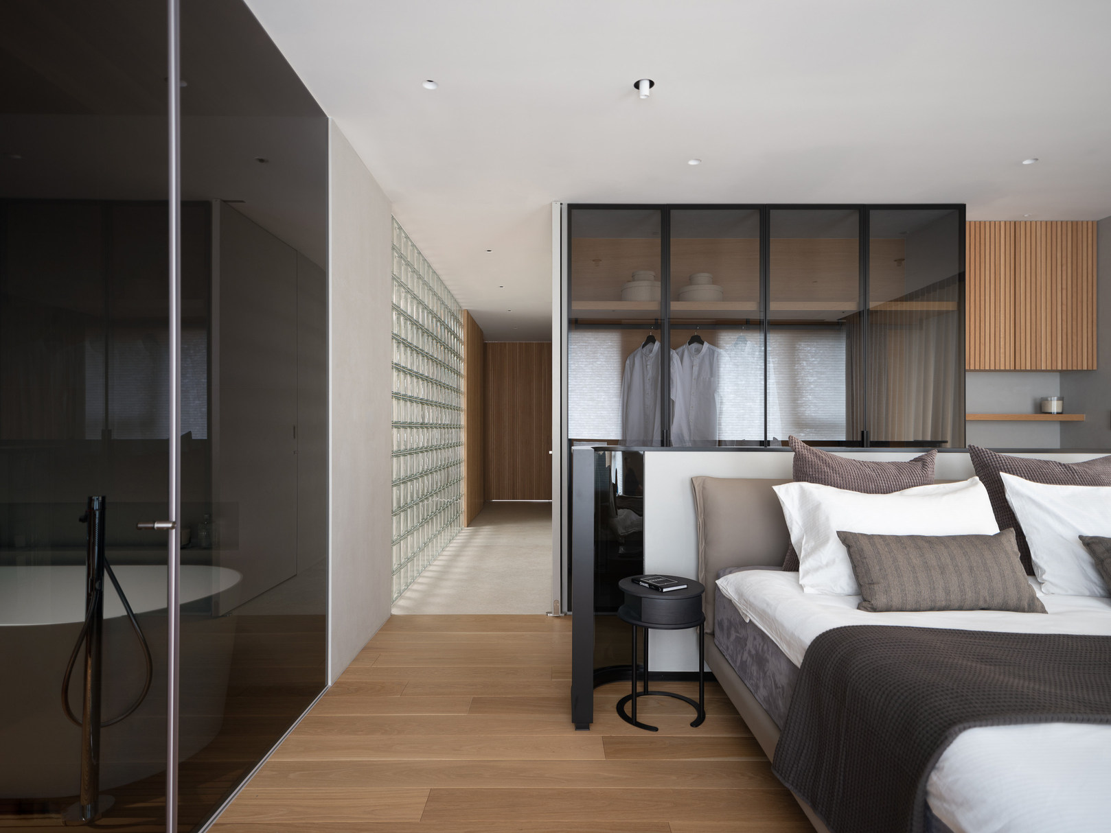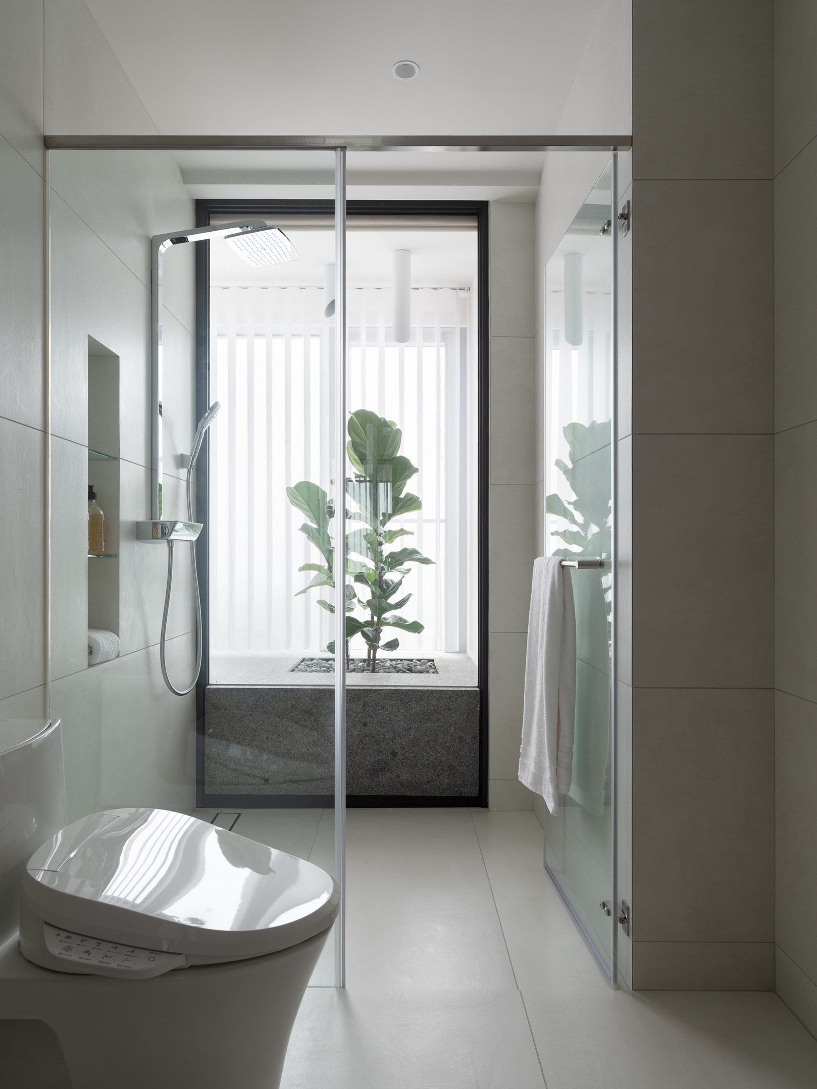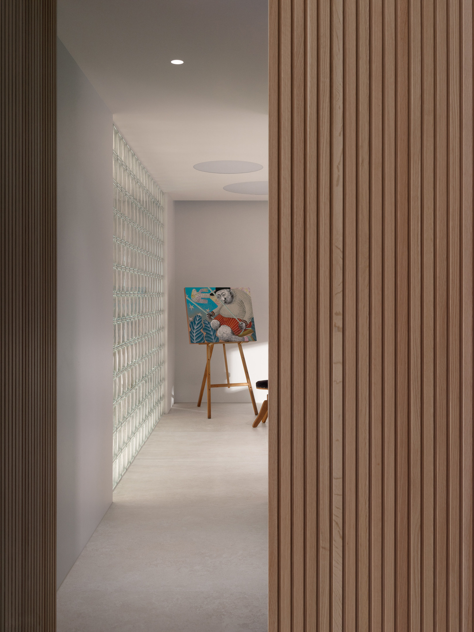 本次案例为新房装修项目。常住一家四口,在日常的生活中品质追求的比较高,喜好公共区域兼顾休闲娱乐一体化的功能。 屋主诉求: 对于家的设定,是想要一个明亮干净,且能满足居家办公需求,储物收纳合理整洁,适合自己的生活方式的环境。对于整体设计追求空间的明亮,即使有时候一个人独处时间长,也不会觉得压抑,享受温暖舒适的氛围。并且还对茶室书房有一定·的要求,希望能够充分打造艺术氛围。 针对屋主的需求,我们以时下最为流行的现代风为基础,不断加入屋主所喜爱的艺术元素与自身的绘画作品,并在软装的选择上注重质感,细节之处通过原木大理石等营造随性洒脱的氛围。而对于局部巧设地台与茶室进行有效连接,过道处通过水纹玻璃,原木格栅等配置营造出一个温暖的,时髦的,有人情味的居住空间。同时根据屋主的爱好,将书房更趋向于画室的设计,使每一寸空间都得到最大的发挥 户型图 1.阳台纳入室内,大竖厅布局,地台+落地窗的形式展现,让空间采光以及通透性得到最优化。 2.双卫生间设计,提升屋主的生活质量。 3.厨房与餐厅的部分做了一个融合的设计,能最大程度利用有限的空间以打造开阔的视野。 4.设置独立书房满足屋主日常学习绘画,增设茶室构筑多元化的家居体验。 #平面布置图#户型图 玄关 玄关入户后,是一个开放式的区域,视野直通阳台。采用哑光地砖通铺,强调出独立功能区域的同时随之弥漫开来的是空间层次感。两侧搭配嵌入式玄关柜,满足日常收纳需求,删繁就简的几何设计理念贯穿整个空间 #玄关#玄关柜#地砖 客厅 木质,艺术漆,棉麻,皮革,绿植,用细节给居住者以充盈的感官体验。独立又充满联结的空间结构,营造出更好的互动性与社交可能。考虑到屋主并不打算放置电视,于是我们放弃了安置传统机柜组合,依照屋主追求的艺术氛围,在墙上悬挂了一幅屋主最为满意的手绘画作,四周墙面也均做了留白处理,以灰作为打底色后为软装的搭配衍生出更多可能。 #客厅#挂画#绿植#客厅设计 客厅大面积的留白与层次递进,呈现恰到好处的以简驭繁。沙发选择模块沙发,柔软的坐垫,简洁流畅的线条结合深色系的地毯,两张单人椅的加入营造出围合式的氛围,为空间装饰增添丰富的层次感和视觉深度。大理石茶几居于中央,深色调营造低调内敛的空间语境。 #客厅#沙发#茶几#地毯 来到客厅,交界处抬高地台,无声的过渡着空间,突出客厅区域。顺着地台流畅的弧形,前进至另一侧墙体,完美衔接过渡,在“直曲”的碰撞中,把存储收纳与视觉延申的双重功能收入空间。灰色地砖通铺,在不同光照条件下,灰呈现出不一样的色感,哑光的肌理在不经意间释放出岁月缓缓流逝的氛围感。顶部保留原始层高,做边吊+无主灯设计,四周嵌入筒灯,为客厅空间呈现独家的光影变化。 #客厅#地砖#地台 餐厅 一张长方形的大理石餐桌放置在沙发后面,两侧搭配同色系的靠背餐椅,软糯的坐垫与弧形的构造为空间增添了一份舒适和稳重。上方装置了一盏奶油质感的吊灯,花朵的设计外观,加上双层样式的落定减轻繁重的感觉,不经意的点亮桌面。 客厅与餐厅动线空间充足灵活,所占空间位置相对舒适自由,两个区域相互借用空间,紧密沟通彼此串联,展现整体风格。餐桌依靠阳台得到全新的采光效果,各功能区域之间的互通与共融,让家的氛围在流动,共享之中,四溢的不仅仅是食物的香气,更有温情的流淌。 #餐厅#客餐一体#餐桌#吊灯 设计注重户外与自然的无缝连接,将阳台巧妙改造,打造地台。选用了冷冽的大理石,颜色与纹理与整体空间色调保持和谐。周围配置了茶具,软垫,使之成为了一处远离喧嚣,静谧惬意的品茶角落。 #餐厅#地台#茶具 厨房 厨房遵循简约至上的理念,高级的灰与凝练的黑相得益彰。减少墙体之间的隔断,采用开放式的设计在视觉上增加松弛的维度。精心挑选的橱柜,岛台,创造出既具现代简约的气质又充满烹饪趣味的厨房空间,无不体现着屋主对于餐厨空间的考究。左侧的一字型储物柜则起到了收纳的作用,嵌入墙体,灰色的肌理在视觉上清爽干净。 #厨房#橱柜#储物柜#岛台 休闲区 借助建筑语言,套景手法,令客厅和茶室发挥着枢纽过渡的属性,在方圆中映入室内空间。榻榻米茶室更加还原中式茶文化的氛围与韵味,地面抬高,强化领域感。摆设茶桌,茶具与坐垫,燃一炷香,煮一壶茶,可以获得全身心的放松。 #茶室#地台#茶桌#坐垫 茶室内部整体以高级黑为主,木饰面吊顶在空间画出一道泾渭分明的线,真实细腻的材质纹理,配以素雅的国画作品与整个空间主题相容。融入绿植小景,营造东方美学气质,气韵生动的贯穿整个空间清雅古朴,情趣盎然。 #茶室#木饰面 过道 过道是家中风格的完美体现,木与白色的交织极简的手法内嵌式筒灯构建出简约小天地耐人寻味。将过道在原有尺度的基础上面进行扩大,打造成特色的艺术走廊,与餐厨连接,共同织就了一个别具一格的十字形公共空间布局。原木格栅墙面过渡自然消弭尖角提高空间安全性,实现黄金比例优化细节,层次分明。 #过道#格栅#墙面 为实现从公区到卧室的过渡,采用过道将两者建立分割线。一条主轴线顺畅关联起各功能分区,左侧墙体打通后砌上一块块通透明亮的水纹玻璃,波光粼粼围合整体空间,弱化空间强硬感,渲染出朦胧含蓄的雅致氛围。通铺的微水泥地砖与墙面呈现出原始