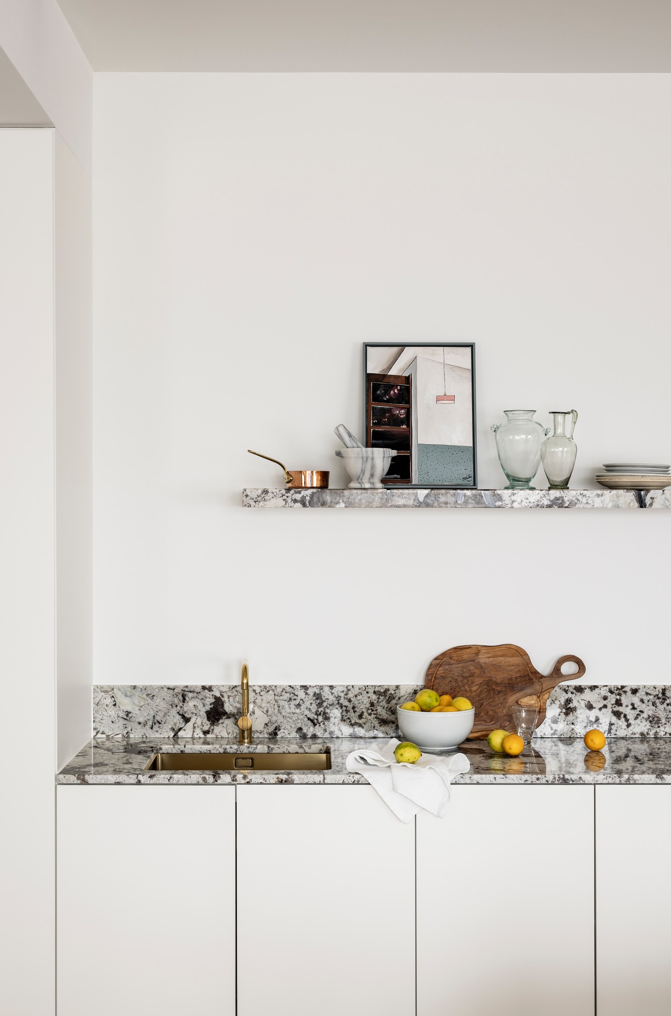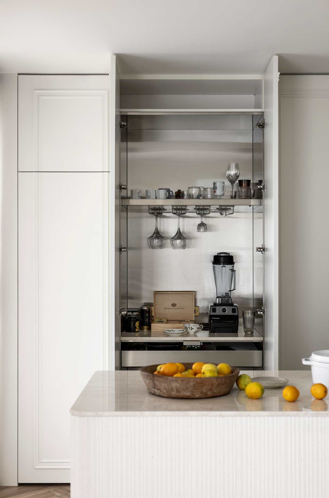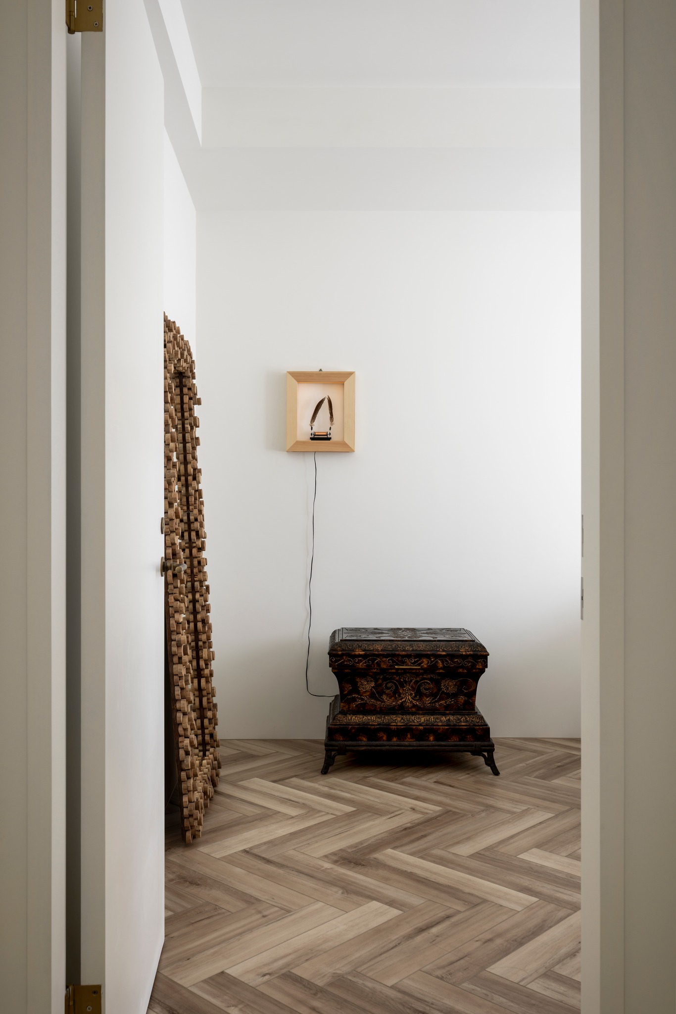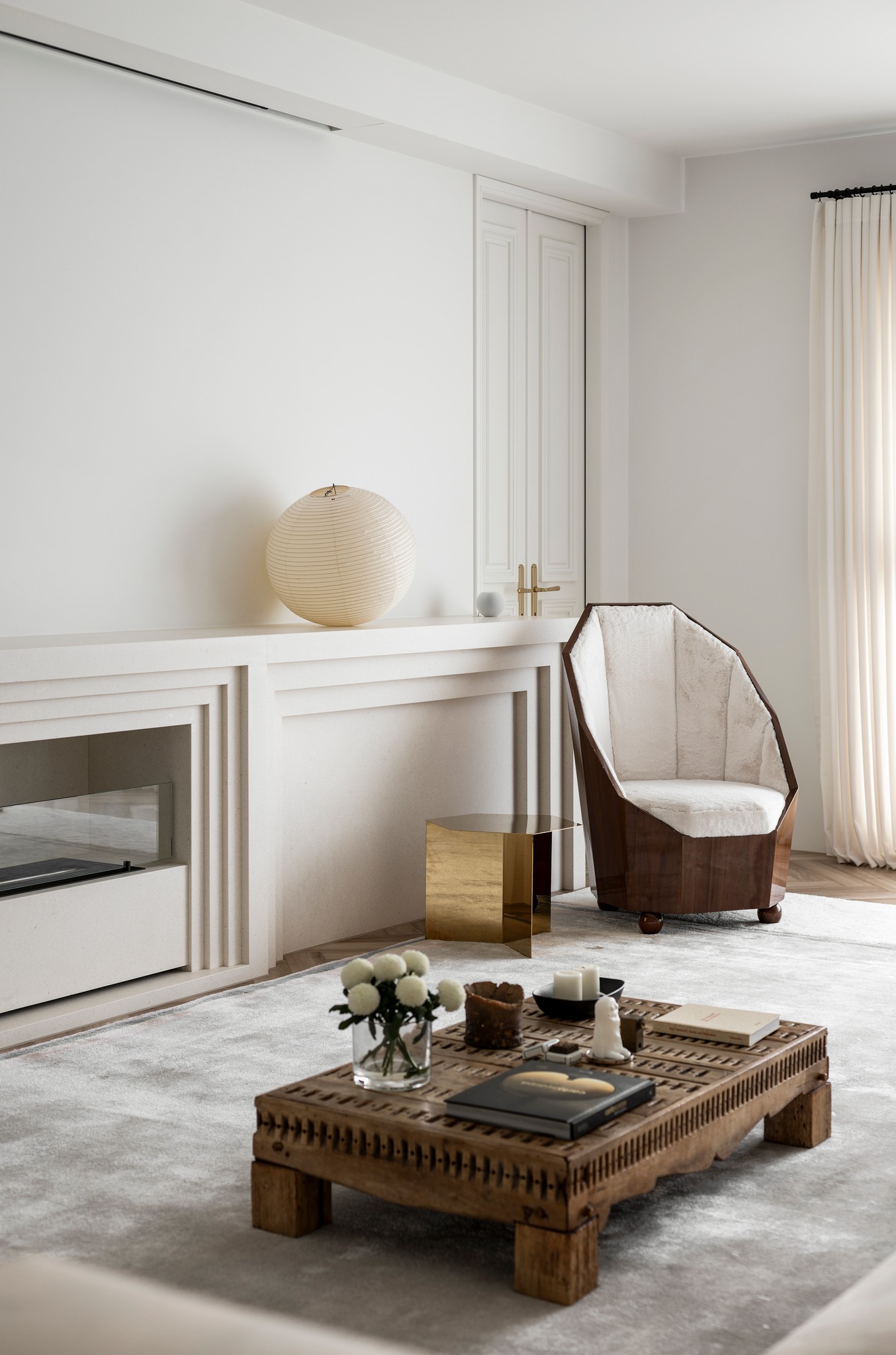 本期案例为新房装修项目,屋主是一名医生,喜爱偏法式风格,但又希望空间不拘泥于单一风格,能够在单一的本质中,享受带出多元的面貌。构建一个浪漫家园。 屋主诉求: 屋主对于房屋的规划,既要满足家居整体氛围优雅浪漫,其次又要兼具实用性需求。在与屋主深入沟通后了解到屋主喜欢法式的浪漫与温柔,原木的温润与自然,风格多变。希望在工作之余能有一个喜欢的氛围以供休憩。我们选择以混搭作为全屋设计方向,通过深浅进退的线条、充满个性的家具拣选,古典元素与现代美学之间的冲击与对比,构造满足屋主诉求的多元风格。满足风格的基础上保证储物空间。 我们以法式、原木、轻奢相搭配,根据业主的兴趣爱好和生活习惯,将空间的墙体进行拆改,通铺原木地板为业主打造出一个开放兼质感的气质之家。让屋主在忙碌一天回到家之后,可以卸下全身心的疲惫,从而与这个家融为一体,安稳宁静的世外桃源,则是心灵的栖息地。 户型图 1.客餐一体打造互联共通格局组合公区功能,封闭式厨房+吧台外置满足不同使用需求,补充厨房操作空间进一步完善洄游动线促进空间的连贯性。 2.独立书房增加电视,区别与传统书房的学习办公功能,更具休闲性。 3.大量设置通顶定制储物柜扩大家中储物功能。 4.阳台纳入客厅做整体规划,拓宽公共活动区设计面积,加之阳台的宽幅落地窗引入的大量光线,客厅更显通透宽敞; 玄关 玄关弧形门洞设计连接公区打破直线条硬朗感,增加视觉纵深丰富空间层次。柔美的拱型门洞搭配原木人字形地板,温润与柔美体现淋漓尽致。壁灯点缀点亮归家仪式感。墙面弧形镂空洞别出心裁,成为半密闭的过道空间的绝妙联动端口,突破秩序营造美感,在简单之上将空间拉回另一个时空。 #玄关#拱形门洞#地板#壁灯 客厅 客厅以白色为基调透露出松弛优雅的氛围,原木地板带来温润质感,大胆运用线条元素为客厅注入轻法式浪漫感,米色布艺沙发柔软舒适满足多人落座,以舒适的坐感诠释着对生活品质的追求,米色地毯置于原木地板之上,减少生活噪音提升舒适脚感,浅色系搭配使得整体空间在视觉上更加柔和纯粹。 #客厅#沙发#地毯#地板 一道弧形拱门引入客厅,为空间注入弧形柔美。大尺度客厅保证了视野的开阔,巨大落地窗进一步打开客厅通透的阀门,搭配纱帘调节光感。原木轻奢单人椅正对沙发,选用轻巧灵动的藤编工艺茶几,点缀朴素敦实的空间语境,高度的颜色对比制造空间焦点,让人忍不住将视线定格于此,中古风美感尽显。不同物质在空间内穿插,每一处都是居者的生活写照,空间线条不拖泥带水共同构筑出明亮有序的舒适空间。 #客厅#落地窗#单人椅#弧形#边几 去电视设计于客厅添置壁炉,墙面硬朗的石膏线搭配壁炉体现工艺与艺术比例美学的雅致。壁炉上方台面加宽做收纳、展示,不同材质与线条为空间加上法式滤镜,古典气息与现代感的环境巧妙结合,使得整个空间散发法式风格独有的慵懒氛围。 #客厅#壁炉 餐厅 基于大平层次设计,客餐一体布局摒弃传统固化风格,糅合了法式、复古、时尚元素,用现代简约的设计手法呈现法式的优雅,实木餐桌、艺术吊灯、大理石、羊羔毛等不同质感重合交叠,空间在和谐统一的基础,上更具视觉层次感,自然细腻的肌理让用餐场域显得娴静而优雅。 #餐厅#客餐一体#吊灯#餐桌 深色原木餐桌承载起一家人的温馨时刻,长形餐桌可容纳多人用餐既不显得拥挤也不至于太过疏远,无论中餐、西餐完全适配。米色餐椅在具备舒适坐垫的同时也有着坚实的支撑力。原木的经久耐用会与时光一起历久弥新。法式吊灯既能作为空间中的艺术装置又为用餐提供良好照明。 #餐厅#餐桌#餐椅#吊灯 纯白的餐边柜搭配水墨大理石台面,消弭空间单调,提升整个空间的品质感和奢华感,满足收纳的同时集展示于一体。搭配水槽设计,拥有简单备餐功能,便于餐前餐后清洁。上方做大理石置物架,增加空间层次感。 #餐厅#餐边柜#大理石#置物架 大平层设计使得公区功能连贯,视野开阔。客餐一体布局搭配吧台,满足屋主多样化需求。背景墙定制整面收纳柜,柜面极简设计去掉多余的装饰利用石膏线勾勒出满目的法式风情,让这个区域散发出优雅精致的设计,左侧将重点落于收纳设置柜体以收纳厨房用具。 #餐厅#吧台#收纳柜#客餐一体 厨房 厨房惟妙惟肖的展现了法式、原木的治愈,纯白+奶油色橱柜吊柜描摹质感。原木台面耐用易清洁。中部釉砖打破单调的同时增加空间质感。一字型布局的厨房动线充分考虑到空间狭小的问题,将厨房空间最大发挥。 #厨房#橱柜#吊柜#台面 书房 书房设计别具一格,原木为主基调,典雅古朴气质贯穿于此。整体空间简单而不失质感,增加电视设计,寓静于动,让书房不仅是简单的书房,让线条与纹理进行理性而有序的视觉交叠,于新中式中流露出写意之美,古朴而简雅。打造沉浸式阅读空间,兼具功能性、颜值、收纳,大落地窗也让整个书房更贴合自然,采光通透。 #书房#电视#落地窗 沿墙定制整面的通顶书墙,深色原木再加上满墙书香气的加持,有一种别样的高阶美,扶梯设计方便上下拿取书籍,书柜注重实用性和美观性的结合,拥有丰富的储物空间,开放格设计满足储存和展示的各种需求。书柜前设置--张宽大的胡桃木大书桌,满足办公、会客、学习,皮质座椅兼具舒适的同时增加轻奢质感。 