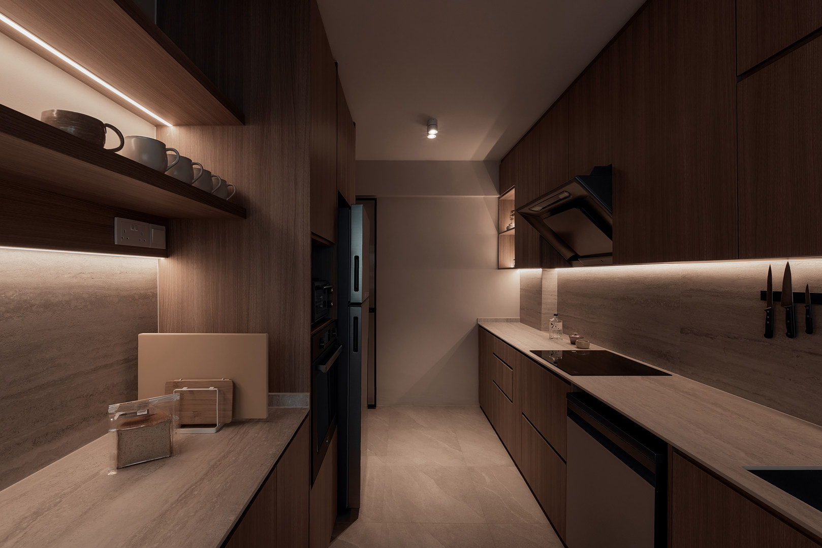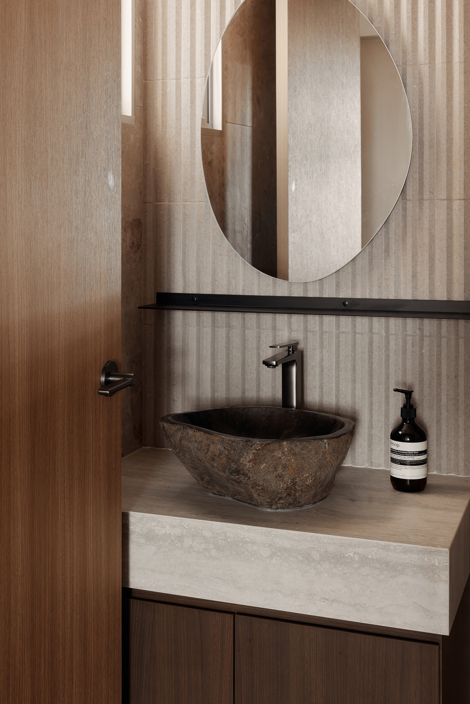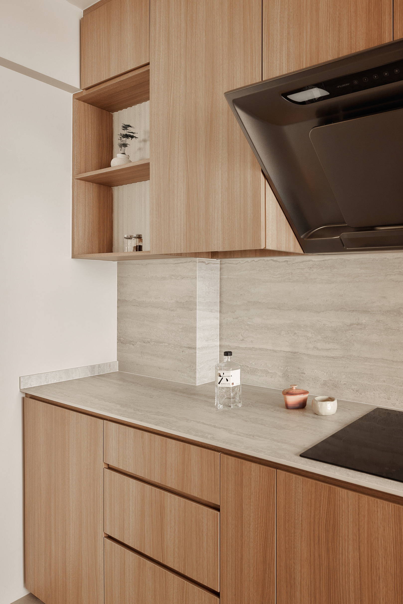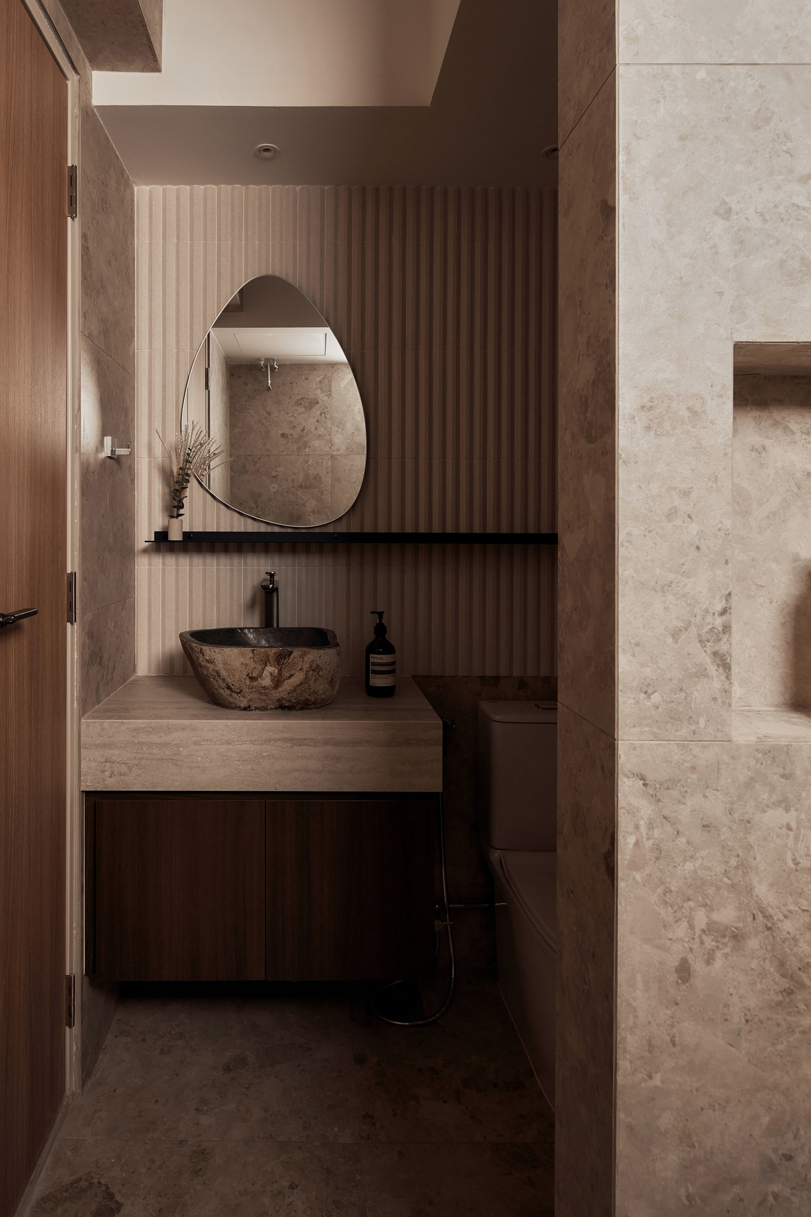 与浮躁的外界相比,现代原木散发的则是一种不骄矜的生活态度,简洁有力的线条与细腻的触感装饰温暖的烟火气息。屋主从洽谈之初就表明,他们喜欢简单、有温度,也有互动感的现代原木风格。对于这个独居之家而言,家的含义不仅仅是物质层面的栖息之地,更承载了空间中发生的各种生活形式和生活场景,本案没有采用浓烈的深色调或夸张的浮雕和图案去阐述法式风格,反而用了一种让人舒服的浅色调,添加了现代原木的元素,利用轴对称式的布局,凸出了空间的舒适自由,非常自然的体现现代原木的宁静与典雅。 我们致力于展现慵懒且富有深度的情感空间,首先在色彩上,以原木+白为主,其他辅色则根据屋主喜好和风格接洽程度挑选,其次将静动区进行划分,通过通透的空间实现松弛自由格调,建立趣味洄游动线,亦考虑房屋自身美学价值组合打造醇厚的经典空间。融入设计理念,将公区采用开放式设计,空间以现代原木展开 户型图 1.原始精装房结构没有做大量修改,而是通过软装来调控空间氛围,使得居住环境更加舒适整洁 2.设计师从独居的日常生活出发,打造出了更适合居住的现代风,在生活当中也能保持满满的格调。 3.客餐一体的布局使得整个会客区域处于同一空间,提高空间利用率的同时提升房屋整体感,优化生活动线。 4.封闭式厨房完美隔绝油烟带来通透居于餐厅后方生活动线最优,一字型设计便于操作使用率高 5.原客厅与阳台之间打通无界,结合原阳台空间打造一字型地台,打造茶室及学习区,完善空间功能; 6。入户正对面处,结合承重柱围绕打造体块,兼顾收纳功能与遮挡效果,入户视野更为私密 客厅 全屋通铺原木地板,整体以原木+白搭配大面积留白与光影交叠利用吊顶赋予空间整体感,搭配吊灯提前规划好筒灯位置相互配合,一字型大横厅布局扬长避短减少空间阻碍形成家的核心区域。墙面以艺术涂料为主丰富的肌理感避免视觉上的单调乏味给空间带来动态美丰富层次。 #客厅#地板#墙面#吊灯#筒灯 布艺沙发居中放置是舒适感的重要来源,同色系抱枕带来慵懒与闲适黑色原木茶几低矮造型不压层高将视角重心下移。室内绿植点缀既不过分柔软也不过分硬挺在柔软与坚硬中寻找一个平衡感给予居者身体最直观的感受。 #客厅#沙发#抱枕#茶几#绿植 客厅的采光朝向没有太大的优势为了保证扣紧的通透性将阳台纳入客厅扩大空间的使用面积。结合原阳台空间打造一字型地台,规划出茶室及学习区,完善空间功能。地台铺设原木地板墙面采用木饰面包裹既干净又舒适。上方安装筒灯丰盈光源模式。 #客厅#阳台#地台#地板#木饰面#筒灯 这是一个兼顾功能与美观的空间,小巧的沙发围绕茶几展开营造出温暖舒适的氛围感,白色百叶帘既能让阳光充足的洒入室内又能在需要的情况下保证整屋的私密性。墙面设置置物架补充收纳空间,绿植倚窗而生形成温馨艺术的空间感。 #客厅#沙发#茶几#百叶帘#绿植 餐厅 客餐一体的布局使得整个会客区域处于同一空间,提高空间利用率的同时提升房屋整体感,优化生活动线。客餐厅之间选择原木地板通铺而过无界限划分强调空间整体感,保证整体视野通透开阔的同时也让各个功能区互联贯通。 #餐厅#客餐一体#地板#插花 长形餐桌轻松容纳多人用餐原木材质经久耐用配套餐椅靠背处采用藤编设计,于契合坐下后的腰背尺寸定制柔软坐垫将质感于舒适相结合。顶部白色灯笼吊灯让空间更有格调点亮温馨用餐时刻 #餐厅#餐桌#餐椅#吊灯 厨房 封闭式厨房利用黑框玻璃门让空间视感更为通透开阔的同时有效隔绝油烟,厨房做双一字型结构兼顾收纳与美观,地面铺设地砖更符合厨房使用调性干净易清洁。在经典橱柜+地柜的基础上融入开放格设计满足不同收纳需求让日常使用更加便利,内部嵌入灯带更添层次感。 #厨房#地柜#吊柜#开放格#灯带 定制橱柜与灶台整体选择统一材质,浅木色搭配自然木头纹理气质温润和缓。于橱柜嵌入冰箱等大型厨电规整空间让收纳更有序。双灶台设计容纳多人同时备餐,无火灶台也更符合现代家居需求。墙面定制置物架收纳餐厨用品,操作动线清晰流畅。 #厨房#橱柜#操作动线 卧室 空间布局重整之后整体的动静划分更为明确,以玄关为界向北为公共生活区后方则为居者的卧室区域。主卧通铺原木地板减少生活噪音的同时冬暖夏凉,墙面安装壁灯配合筒灯、吊灯多种灯光模式供居者选择。 #主卧#地板#吊灯#壁灯#筒灯 主卧整体风格温柔又有质感给人满满的治愈感,带来舒适完美的放松空间高度统一的色调和谐融洽。主卧套房模式加入独立卫生间更方便居者日常使用完善生活动线,安装挂壁式空调减少不必要的空间占用让休憩空间更具舒适。 #主卧#卧室#卫生间#无主灯#原木风 双人床居于卧室中央,干净简单的床品却蕴含着舒适于方式为居者构筑沉浸式睡眠体验,床头柜于衣柜一体式设计新颖实用,加入筒灯完善细节。极简的造型让衣柜隐形如墙体,通顶设计最大程度提升储物空间,无把手设计自带轻盈视感减缓视觉上的压抑感。 #主卧#卧室#床头柜#衣柜 卫生间 卫生间多采用玻璃设计让卫生间与主卧之间隔而不断,视觉上更显通透轻盈。通铺大理石纹地砖呈现出清透简单的质感,悬浮式洗手台减少卫生死角方便日常清洁,大理石材质与整体空间更为适配,墙面设置置物架收纳洗漱用品。 #卫生