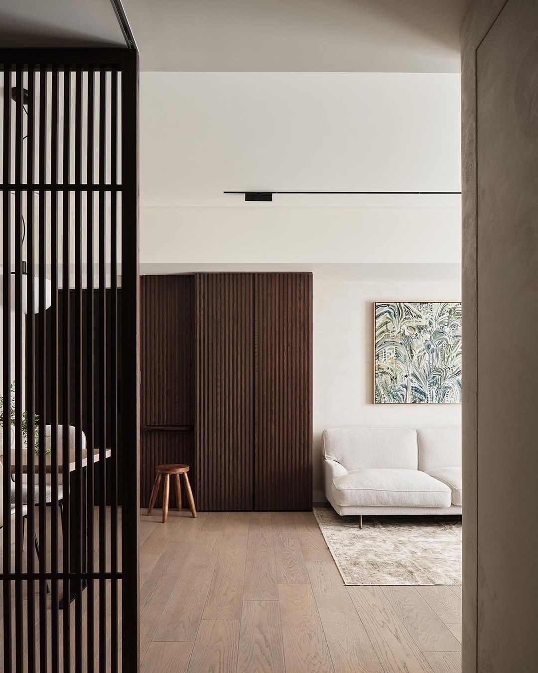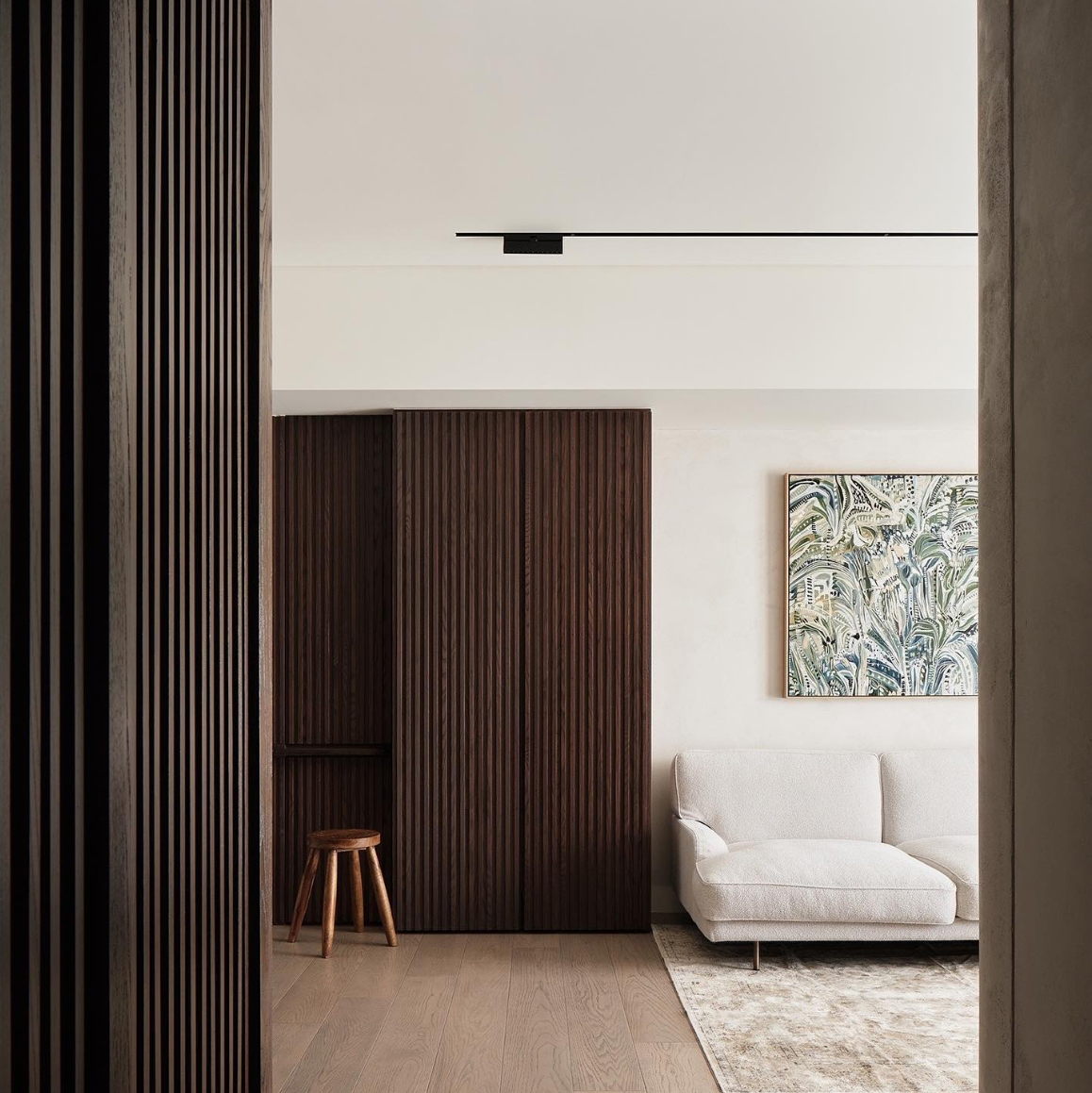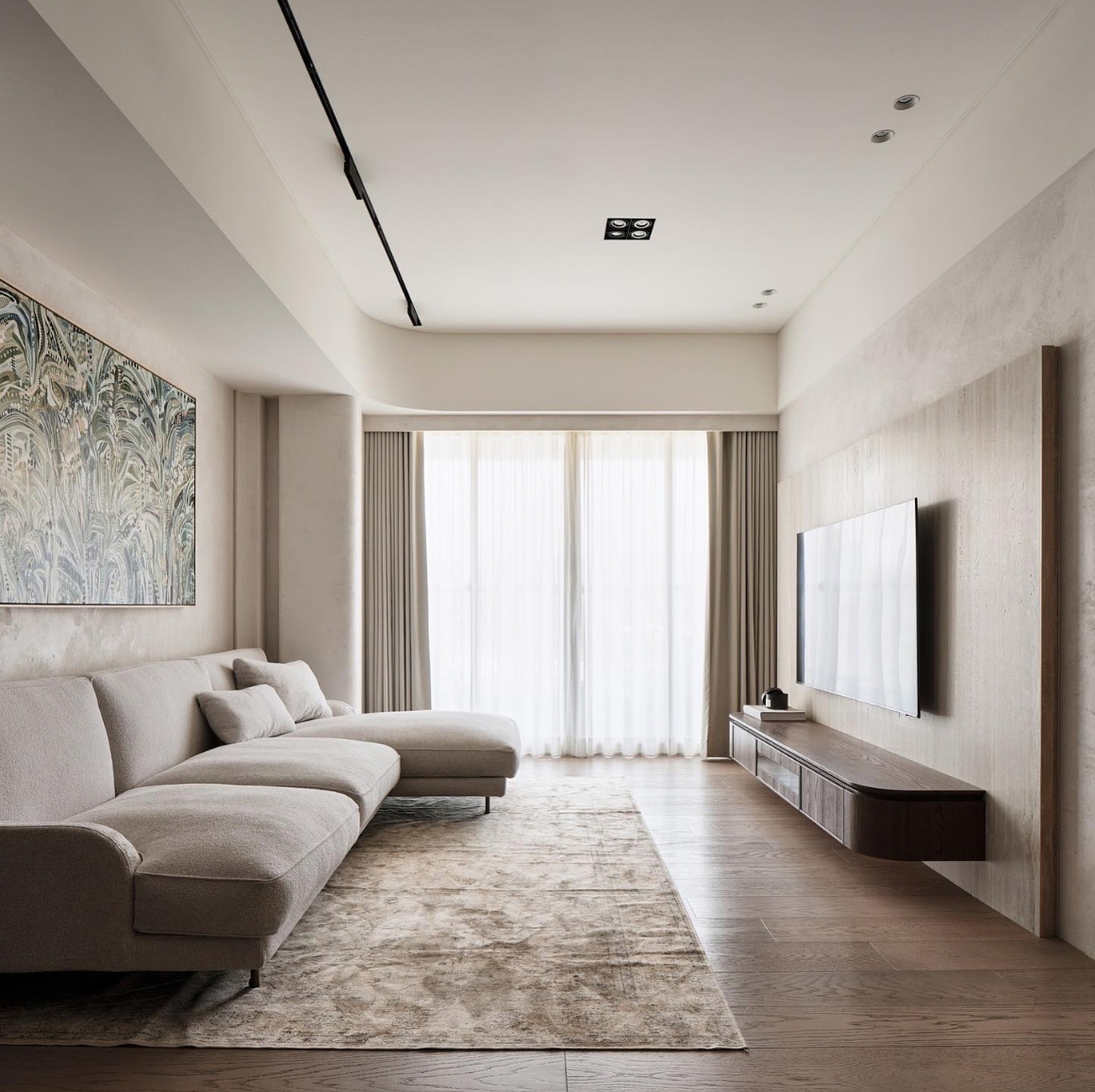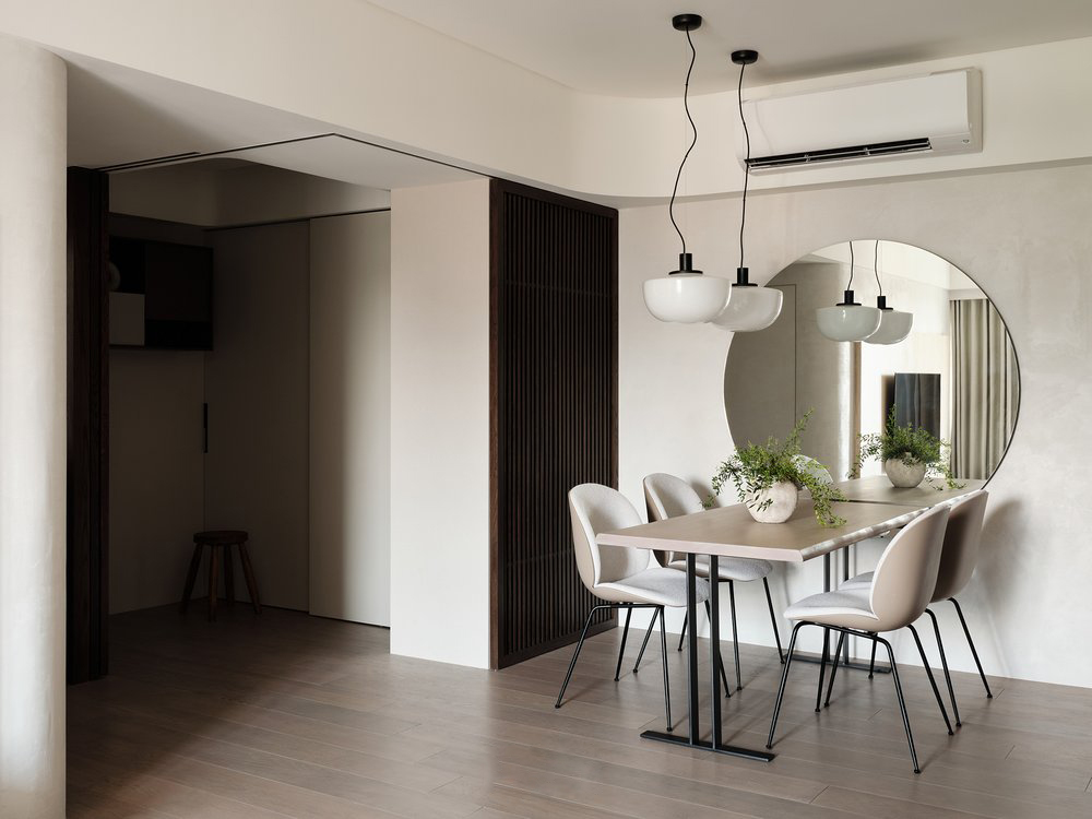 本次案例的屋主偏爱现代简约风,同时追求视觉上的质感,希望呈现一个简约不失高级感的效果。在与屋主的沟通过程中,发现屋主对于镜子的使用需求极高,在了解到其不排斥镜子作为装饰元素的情况下,我们选择在设计的过程中增添“镜”元素用以点缀,例如卧室的飘台以及餐厅的墙壁,通过镜面与自然采光的协调搭配,达成锦上添花的观感效果,时尚与清爽感兼具 户型图 ①传统两室两厅一厨一卫,南北朝向,采光条件好。 ②房型方正,动线流畅,分区有致 ③在厨房与餐厅之间的区域,通过滑轨与隔断的设计安装,打造出一个灵活转换封闭状态的储物间 玄关 客厅 顺着玄关往前走,便来到客厅的区域,是一个面积开阔的长方形空间。墙面选择纯色粉刷,加上中间区域无吊顶的设计,拉高纵向层高视野,使空间呈现清爽又开阔的美感。 #客厅#客厅设计#无主灯设计#地板 一张多人座的L型沙发靠墙放置,皮质面料搭配记忆棉软垫,尽显舒适。亚麻杏偏灰调的选色,沉稳低调有质感。再搭配地面上浅棕色系的波纹地毯,搭建视觉上的层次美。墙壁上悬挂一幅草木系绿植装饰画,增添鲜活力 #客厅#沙发#地毯#地板#装饰画 沙发对面则是电视墙的区域,在原有墙面基础上局部叠加了一块与墙面等比例缩小的长方形木纹板,增添墙面层次感。电视悬挂其上,下方设计了一个悬空式的电视柜,核桃木的纹路彰显高级质感,三个内嵌的抽屉提供物品收纳的空间 #客厅#电视背景墙#电视#电视柜#收纳 餐厅 餐厅位于玄关的右手边,靠着一侧的墙壁放置了一张长方形的餐桌,白色的大理石桌面光泽有质感,两侧各搭配了两个同色系靠背餐椅。墙壁上方设计悬挂上一个圆形的镜子,与客厅的视野相互通,增添不同功能区之间的互动性,整体视野呈现上也更加灵活 #餐厅#餐桌#餐椅#大理石#吊灯 顶上安置了两个悬挂式的吊灯,白色的亚克力灯罩充满现代时尚风味。吊顶内侧安置了一个空调,方便餐厅区域有效调温的需求 #餐厅#餐桌#吊灯#绿植 储物间 餐厅与厨房之间有一个长方形的开放式空间,我们通过设计可移动式隔断滑轨,使这块区域可以在封闭与开放的状态转换,做成一个灵活的储物间 #储物间#吊柜#地板 如图所示,呈现的是储物间将隔断滑轨进行连接后的封闭式状态。我们在隔断的选择上采用类似百叶窗的样式,使区域在封闭的同时保证视野上通透清晰,让空间不会过于密闭,影响采光。墙角处更设计了一个具有收纳储物功能的餐厨柜,很是实用 #储物间#餐厨柜 深棕色的花纹木板墙面上搭配了一盏充斥着金属元素的壁灯,在暖黄色灯光的照耀下增添房屋氛围感。 #墙壁设计#壁灯 厨房 厨房是一个长方形的空间,采光极佳。沿着两个相邻的墙面,呈现L型的橱柜设计。棕色系的木质面板选材呈现更有质感的视觉效果,油烟机、烤箱、洗碗机等家电镶嵌其中,保留干净清爽的视觉外观。洗手台选择内嵌式的台盆,方便排水与打理,避免水渍的积攒影响日常的清洁 #厨房 卧室 卧室的空间十分充裕,朝南的方向享有极佳的采光条件。一张加大版的双人床靠墙放置在中央,床头的皮垫设计为屋主提供舒适的休闲条件。在墙面粉刷上以纯白为主色,另外在局部墙面设计上选择原木条纹元素的混搭,使空间的装饰元素更加丰富多元 #卧室#床头背景墙#采光#窗帘 床的一侧搭配了象牙白木材质的床头柜,精巧玲珑有质感,上方还悬挂着一个可移动式的床头灯。靠着窗台的区域,设计了一个长方形的桌台,这张多功能桌台享有极好的采光,同时既可以放置绿植装饰空间,还能满足日常的办公、梳妆需求 #卧室#飘台设计#飘窗#床头柜#灯 卫生间 卫生间延续现代简约风格,整体色彩上偏浅色系居多。安装的镜柜提供收纳洗漱用品的空间,有助于保持台面的清爽整洁。洗手台选择独立式莲蓬型设计,搭配一个长形的水龙头,复古的款式更显经典。下方搭配一个深色系的木质橱柜,在简约的氛围中增添高级质感 #卫生间#镜柜#墙面#洗手台 |