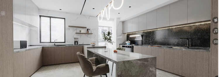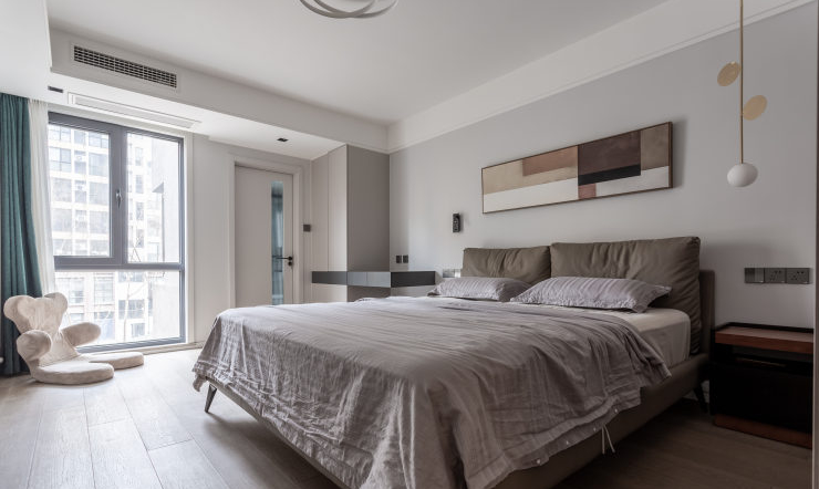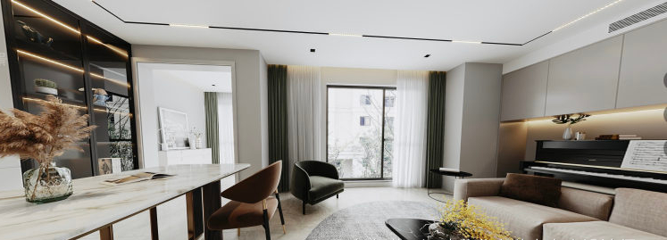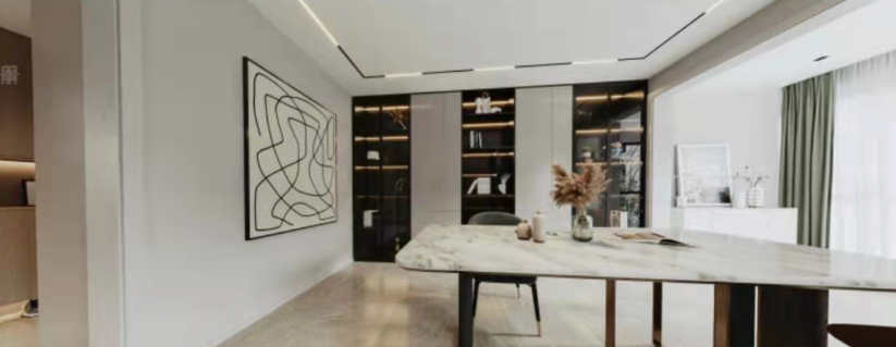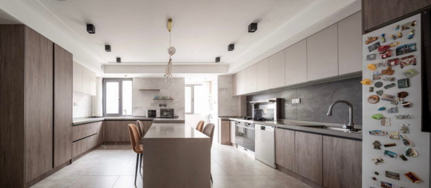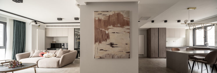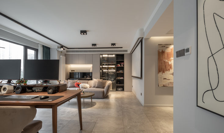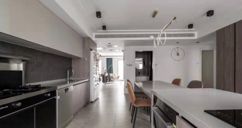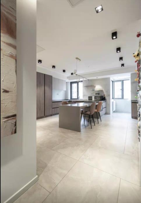 家—— 是我们的避风港, 是身心休憩、放松的舒适居所。 宽敞、包容的家, 不仅让我们的安全感和归属感爆棚, 幸福感更会不断upupup! 本次托设计为二人世界,业主对卧室独立空间的个数要求不高,将厨房和旁边原客卧的空间打开,作为餐厨开放空间。这样在生活中有更多的交互。这通常也是秒变豪宅的做法。客卫做了干湿分离,方便客人和白天内外功能的使用互补打扰。客厅原空间结构相对开敞,设计上保留和增大了开敞性设计。匹配平时在家的生活状态,厅里没有要电视,而是在侧墙安排了投影。在游戏之余,一个人可躺着观影,另一边有个舒适的单人沙发可享受观看。完全的量身定制。业主唯一的诉求就是有足够合适的乐高展示区,所以我们沙发没有靠墙,而是将客厅的两面主体墙做了展示柜,来陈列大型乐高。无主灯设计在现场实施过程中考虑尽量保留原层高,灯具基本选择了明装。效果还不错。墙面一体化设计,由木门商家调色配合完成。增加空间延伸感。固定大餐台的设计也是增加设计感整体感。岩板上墙的一体化设计也是现代感拉满。原主卧空间不规则,通过空间调整,实现了规整的主卧,已经隐形的衣帽间。材质上大板瓷砖、乳胶漆、三层实木复合大地板、 1/2 实景1 厅效果图 厨房效果图 1/3 把厨房和旁边原客卧的空间打开,合二为一,作为餐厨开放空间,交互性更强,开放式布局带来超大的视觉体验;原木色橱柜搭配的温润质感与色调给人一种自然、放松之感。 主卫实景 1/2 改造后的主卫充分发挥收纳功能的同时,也非常美观,可谓是实用性、美观性兼备。难得的大窗户采光,配合内置百叶让如厕更享受。 |